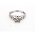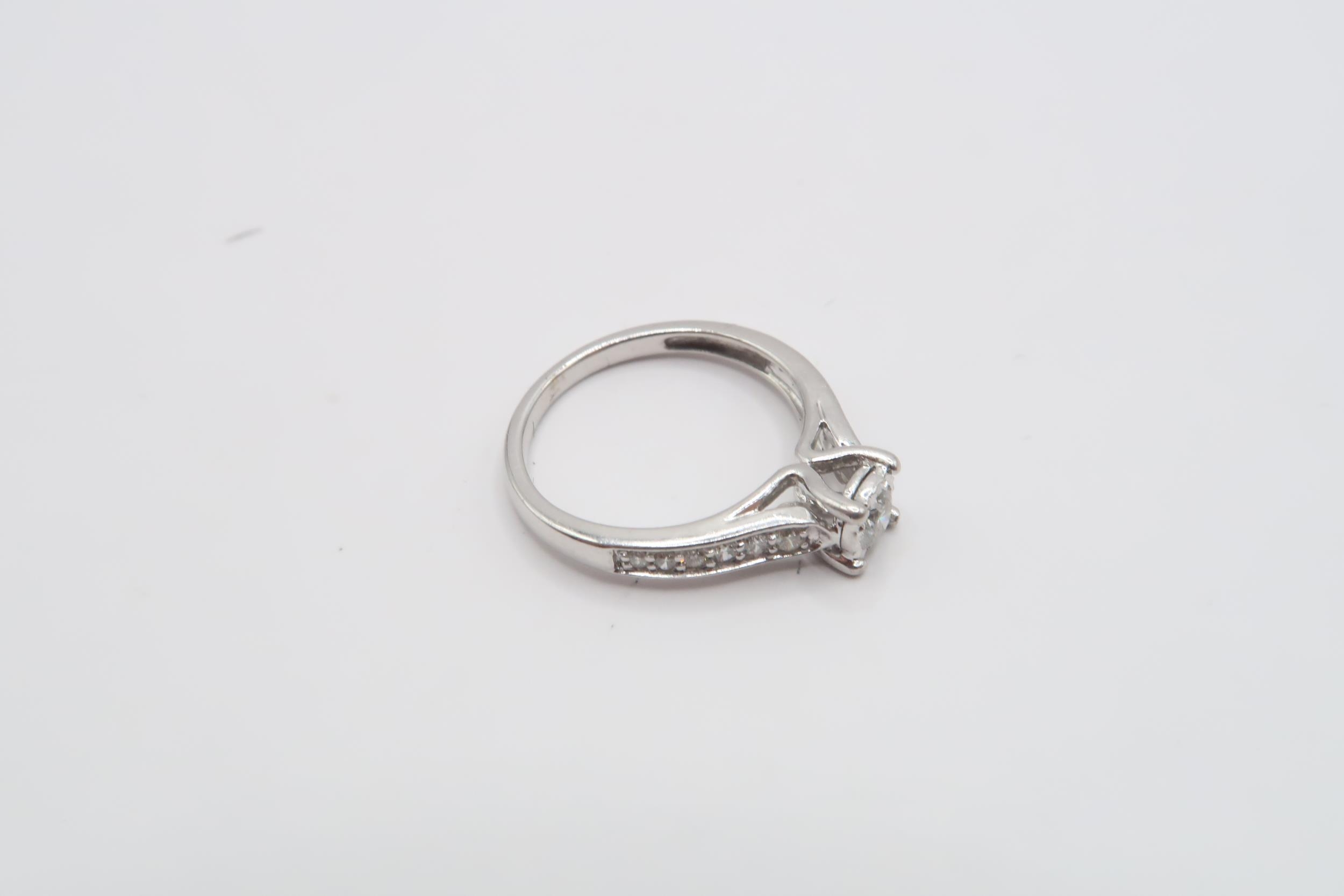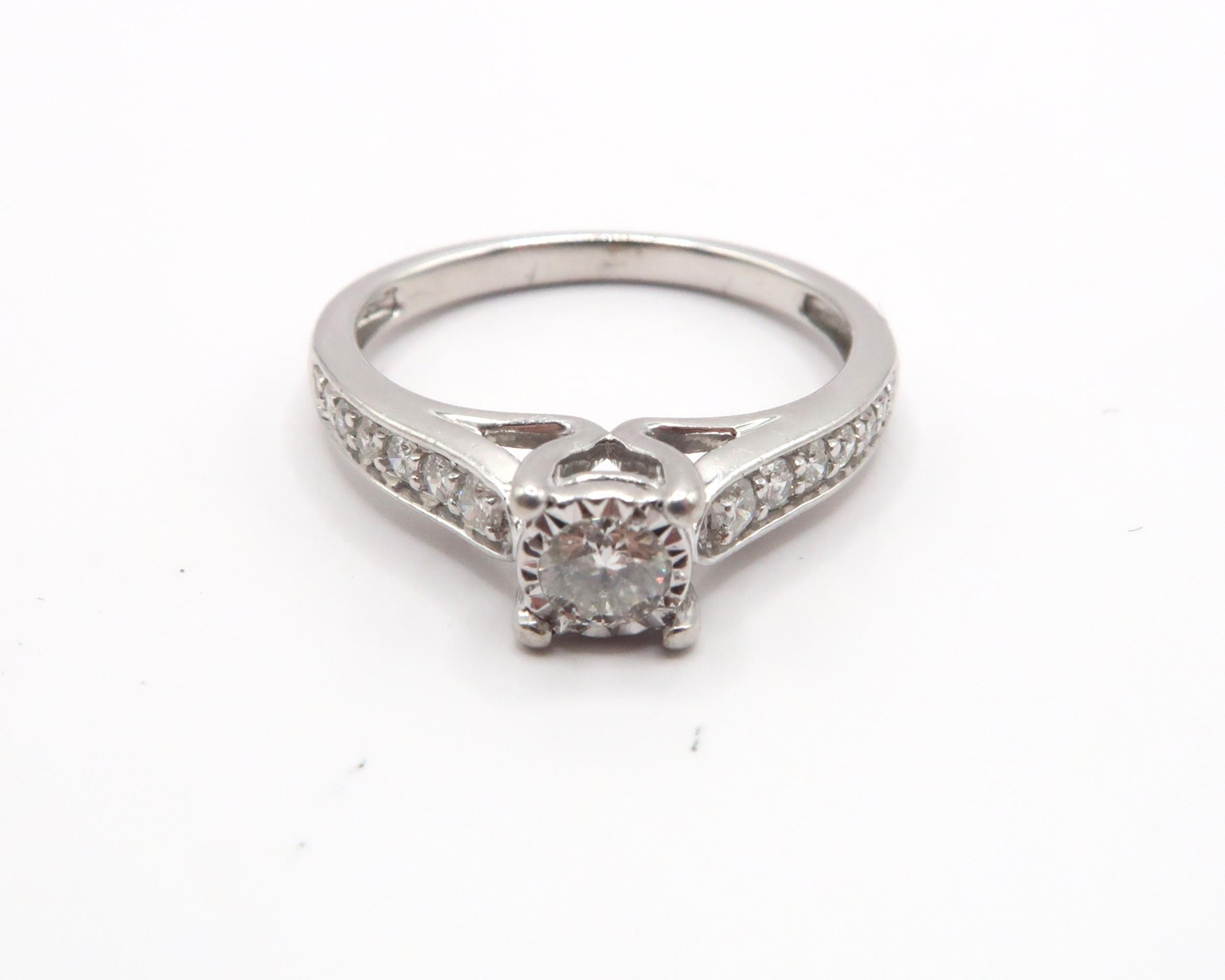 A 14ct White Gold (tested) Diamond Solitaire Ring with 12 Diamonds to the Shoulder, Diamonds are Bright and Lively, Head Size approx. 18mm x 5mm Ring Size approx. H/I