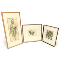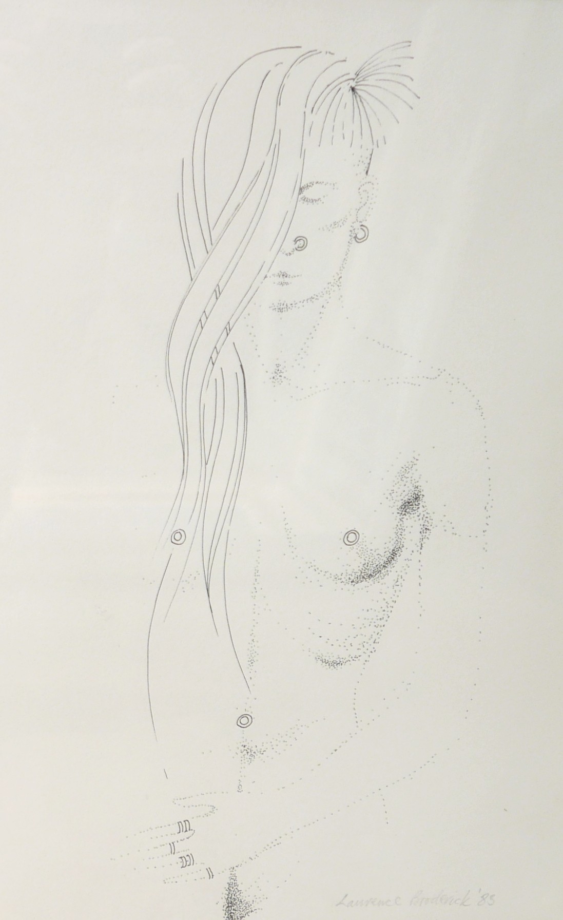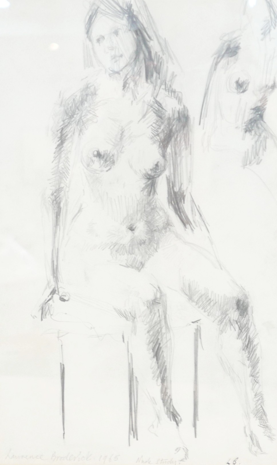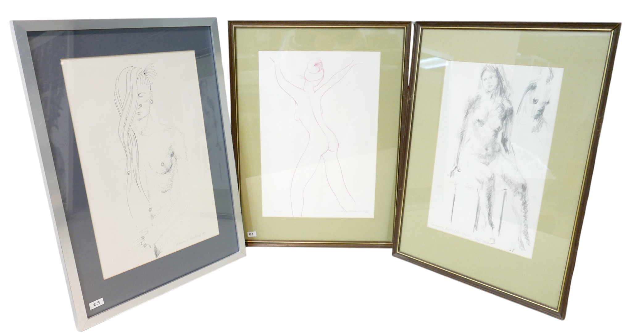 Laurence Broderick MRBS FRSA (18 June 1935 – 18 April 2024): three nude studies in pencil, crayon and pen, all signed, two dated 1982/3, largest frame 52 by 38 by 1.5cm.(3)