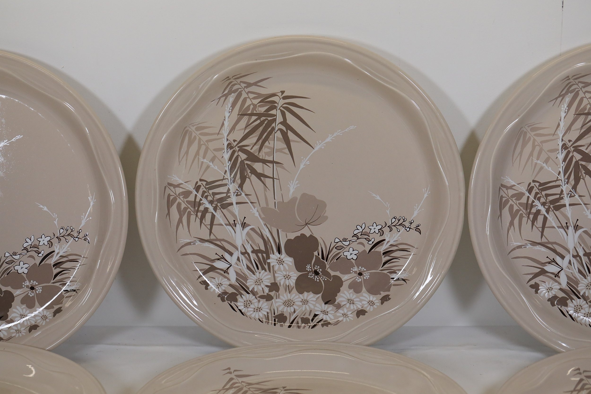 2. **Medium Plates**: A stack of multiple medium-sized plates with the same design.