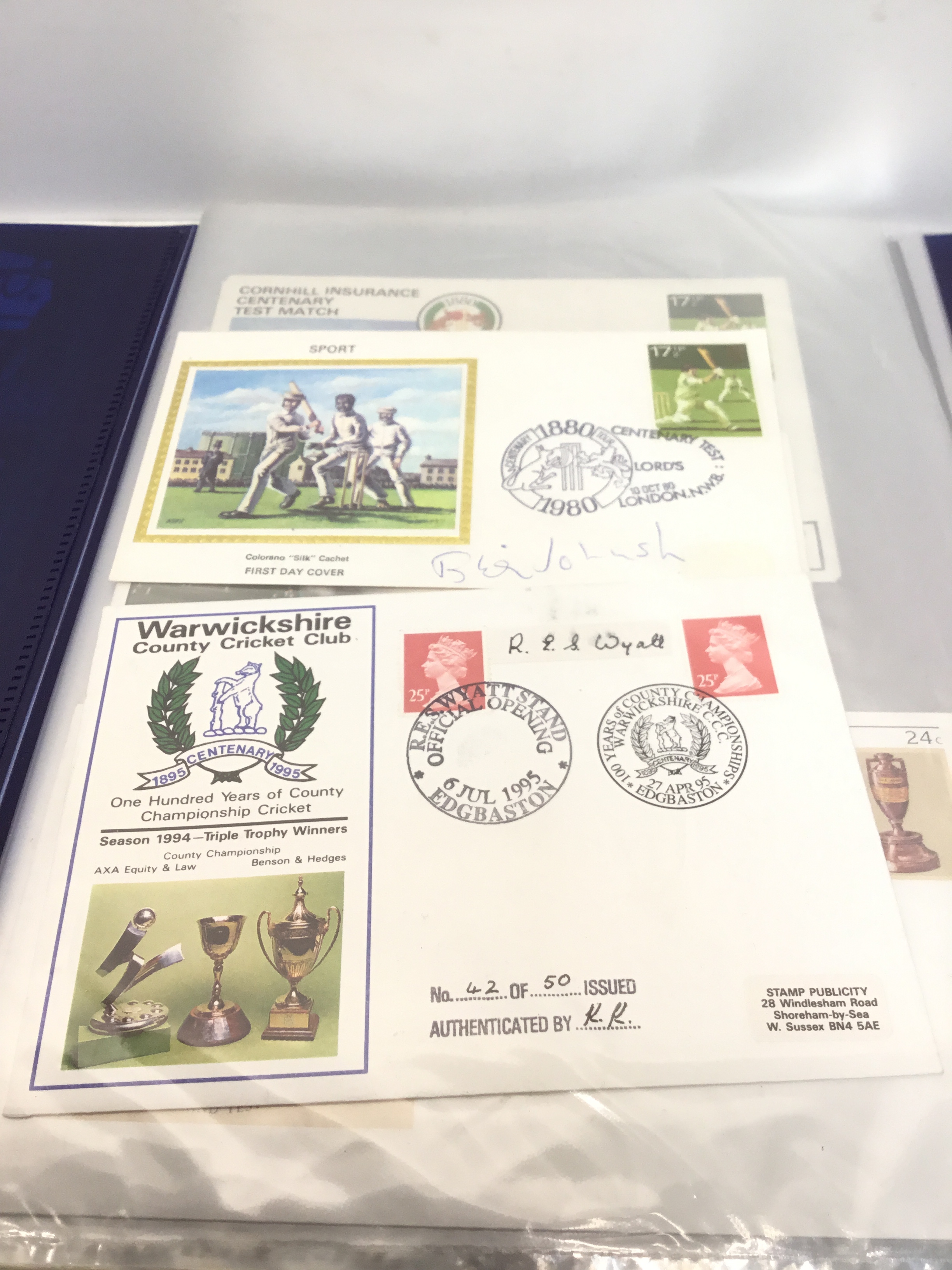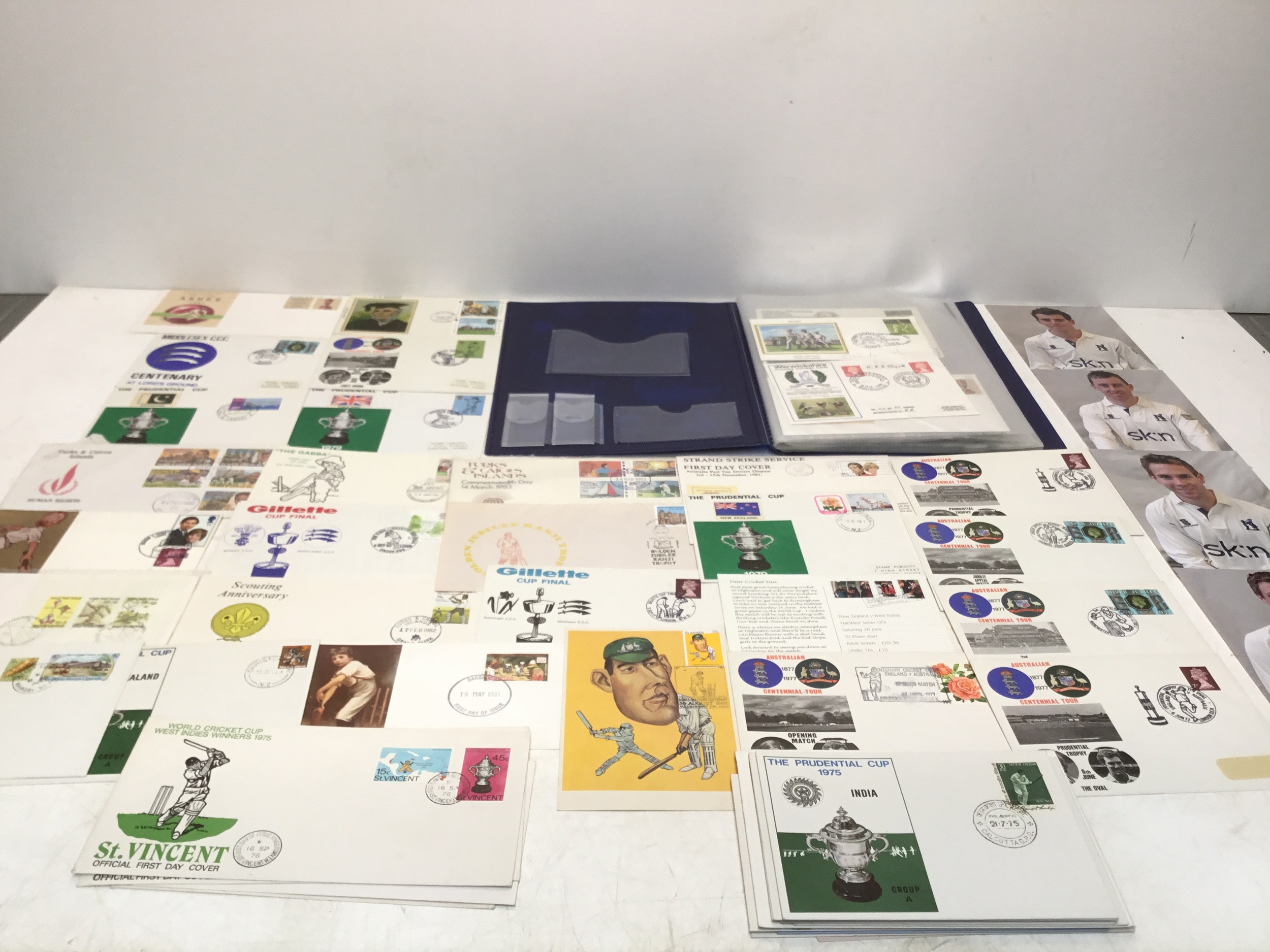 Cricket memorabilia including stamps, first day covers and some autographs