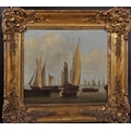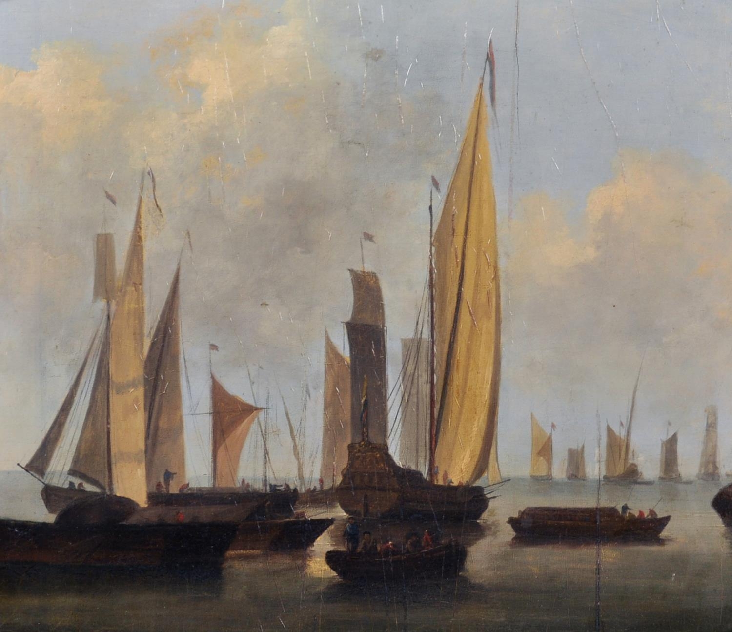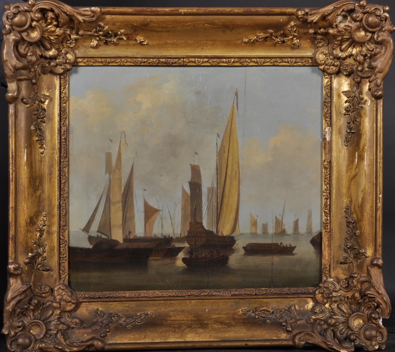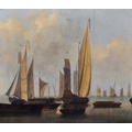 Manner of Abraham Storck (c.1635-1710) Dutch. Boats in Calm Waters, Oil on Panel, 12” x 13.5” (30.5 x 34cm)