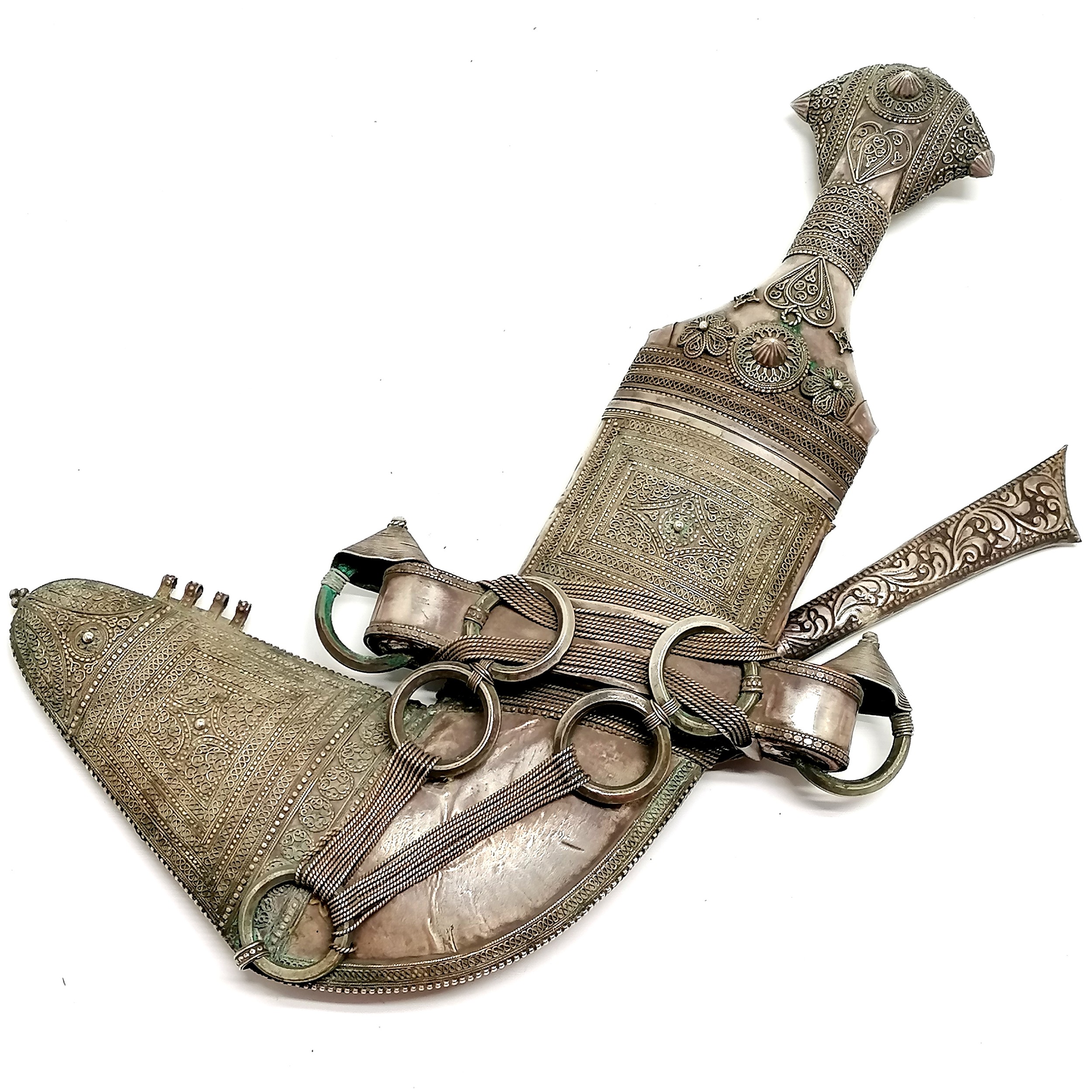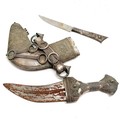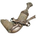 Middle Eastern jambiya with unmarked foreign silver detail - 32cm and rusty blade 17cm long