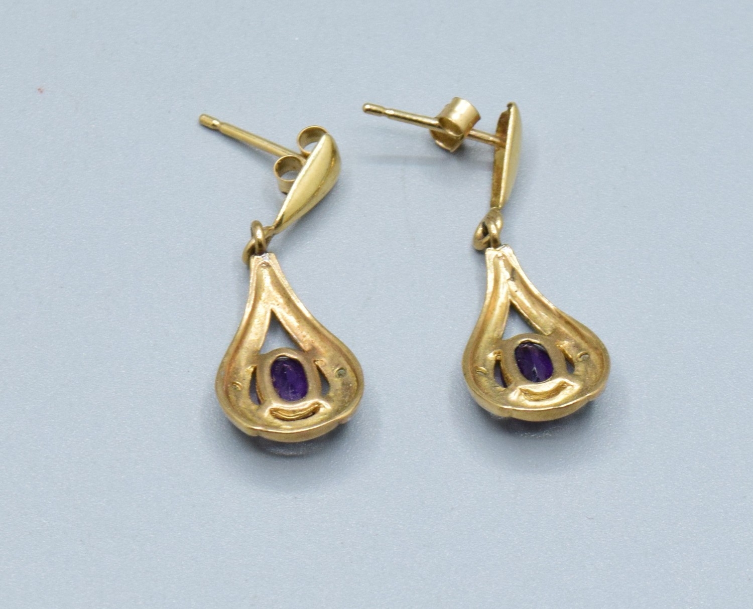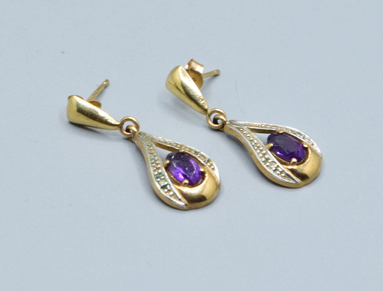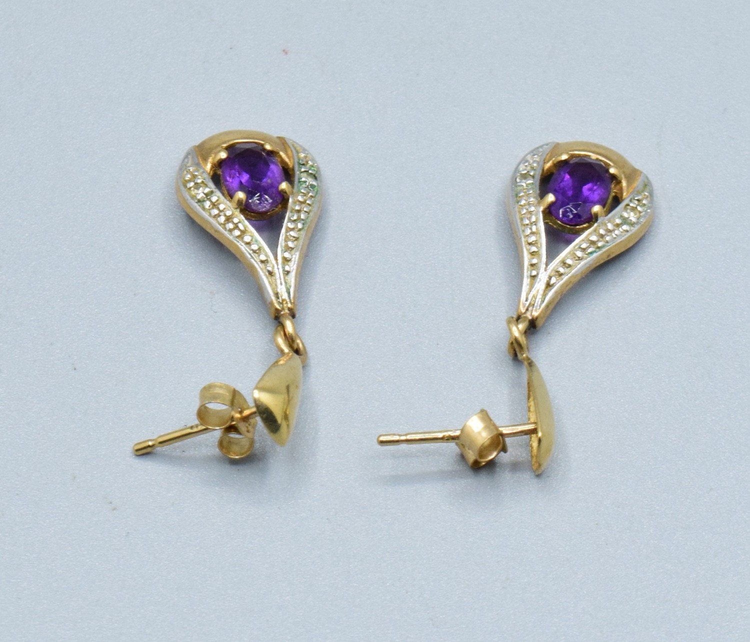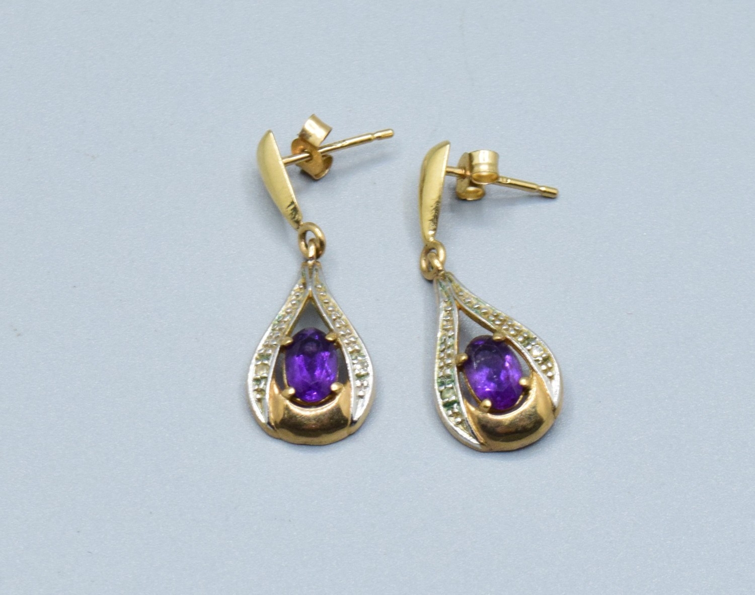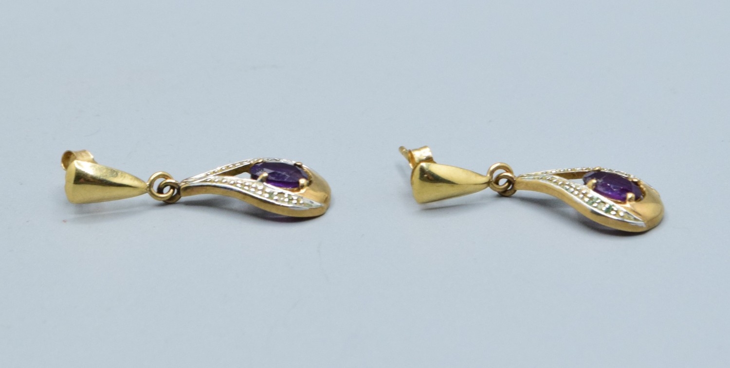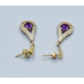 9ct gold Amethyst and Diamond drop stud earrings