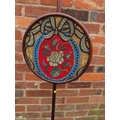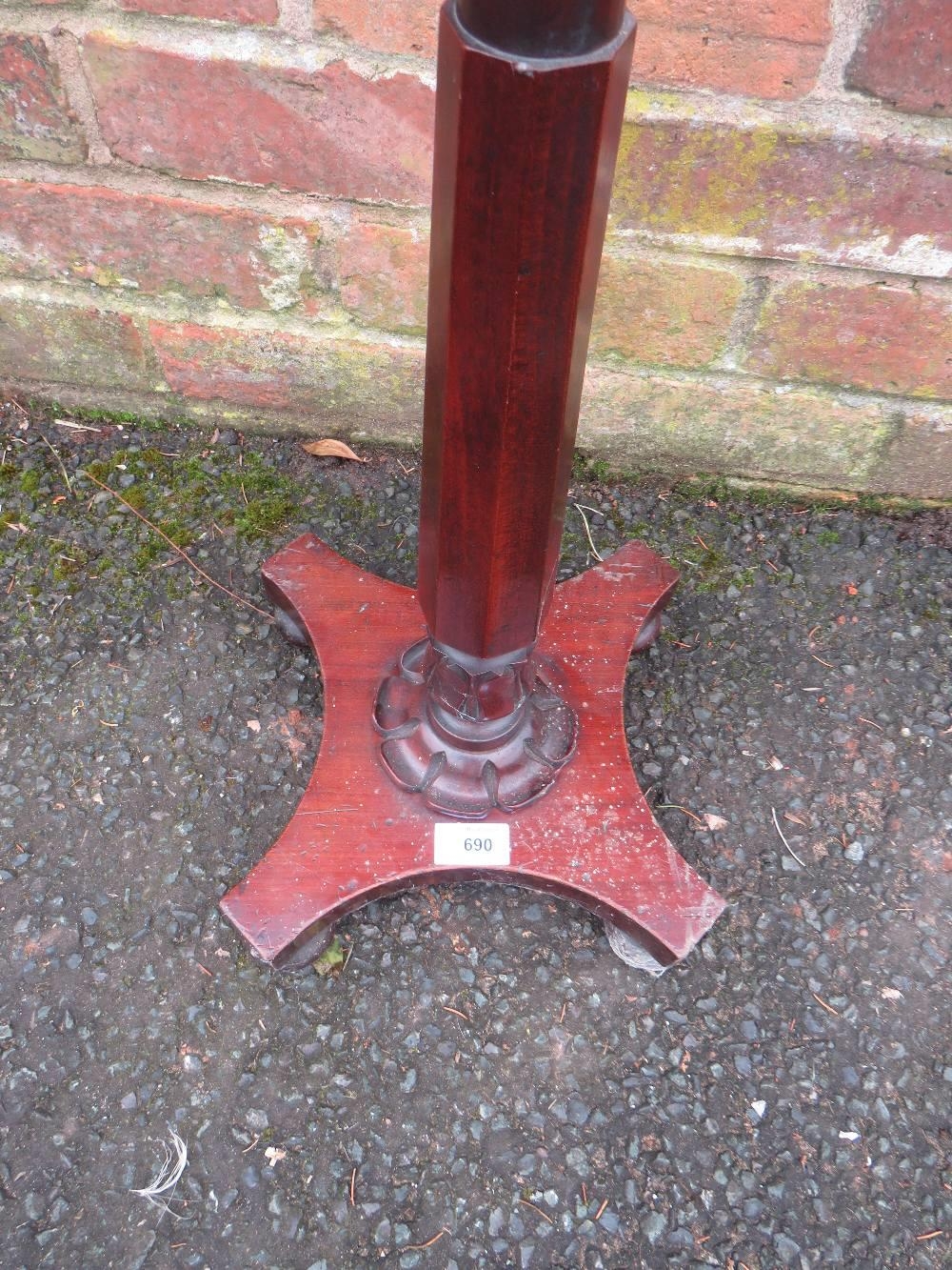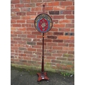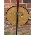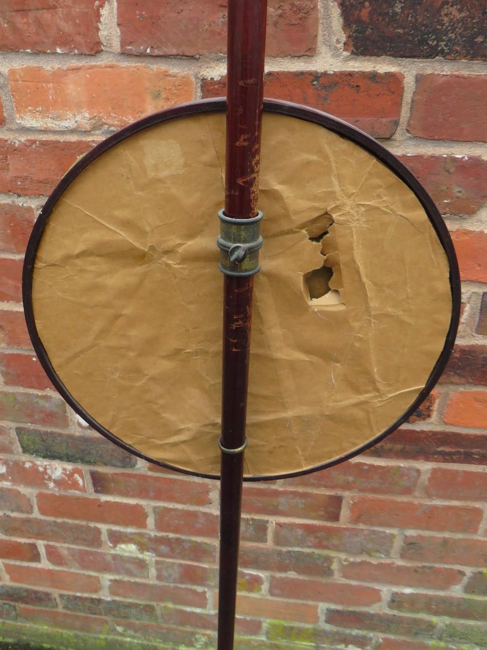 AN ANTIQUE MAHOGANY POLE SCREEN WITH CIRCULAR BEADWORK PANEL