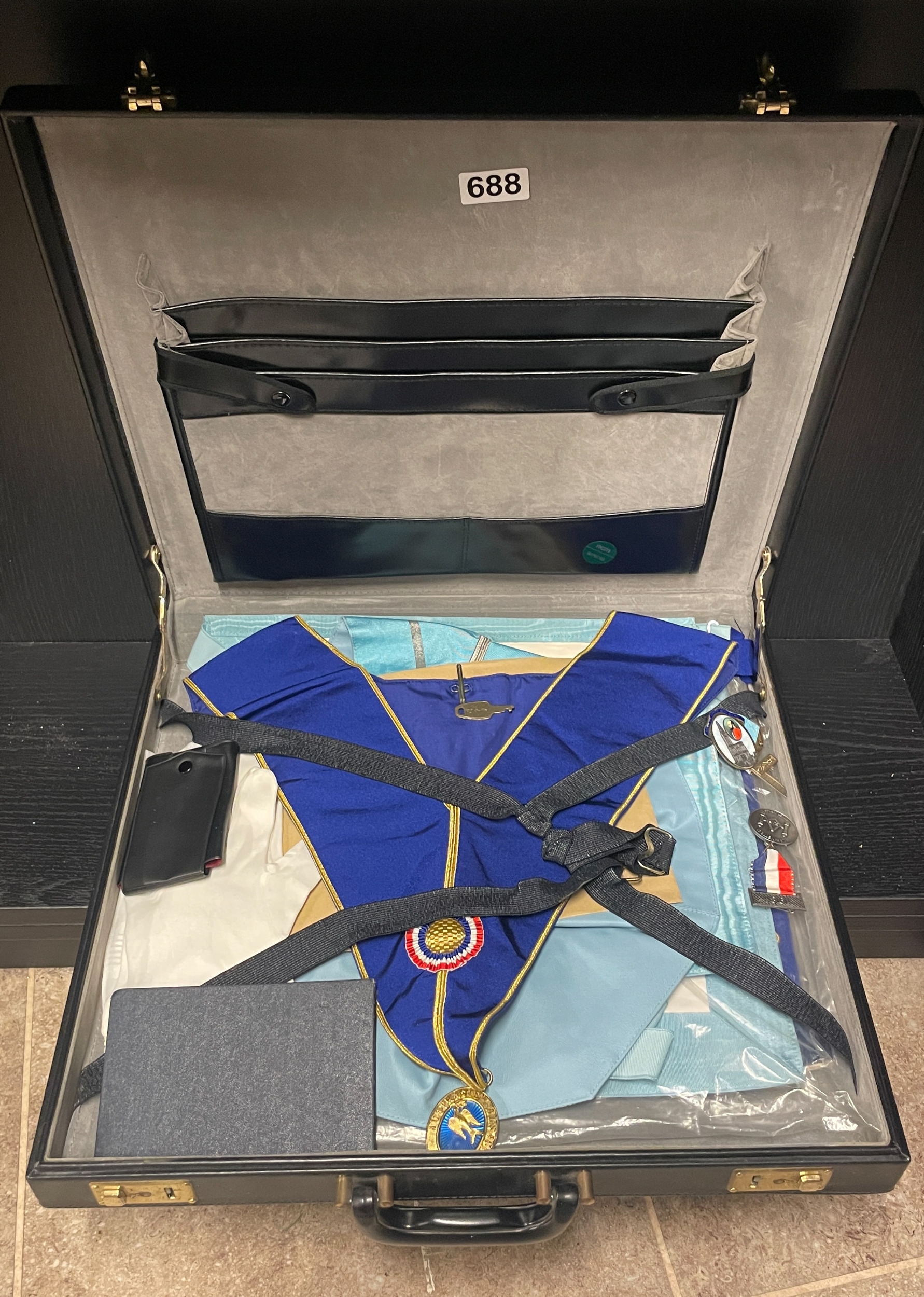 Briefcase complete with Freemason attire, badges and more