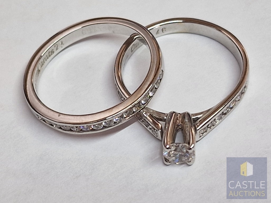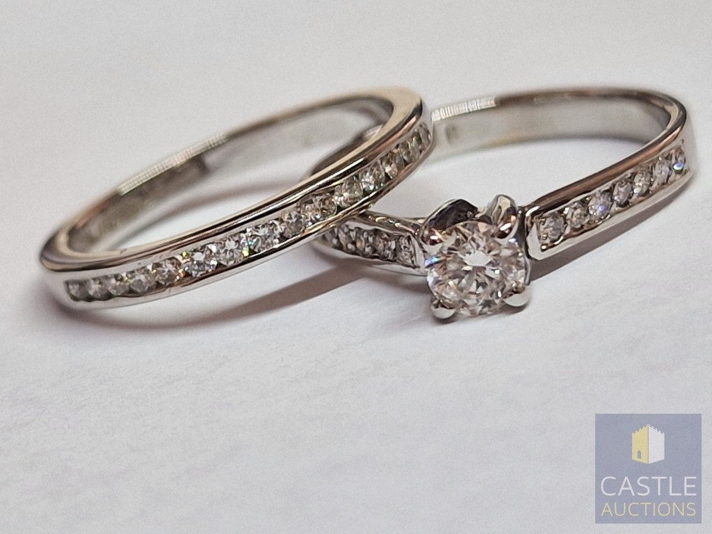 Stunning, Perfectly Matched White Gold & Diamond Engagement Ring AND Wedding Band, by 'Carats', Cyprus. A Sparking Pair which Beautifully Complement Each Other When Worn Together.