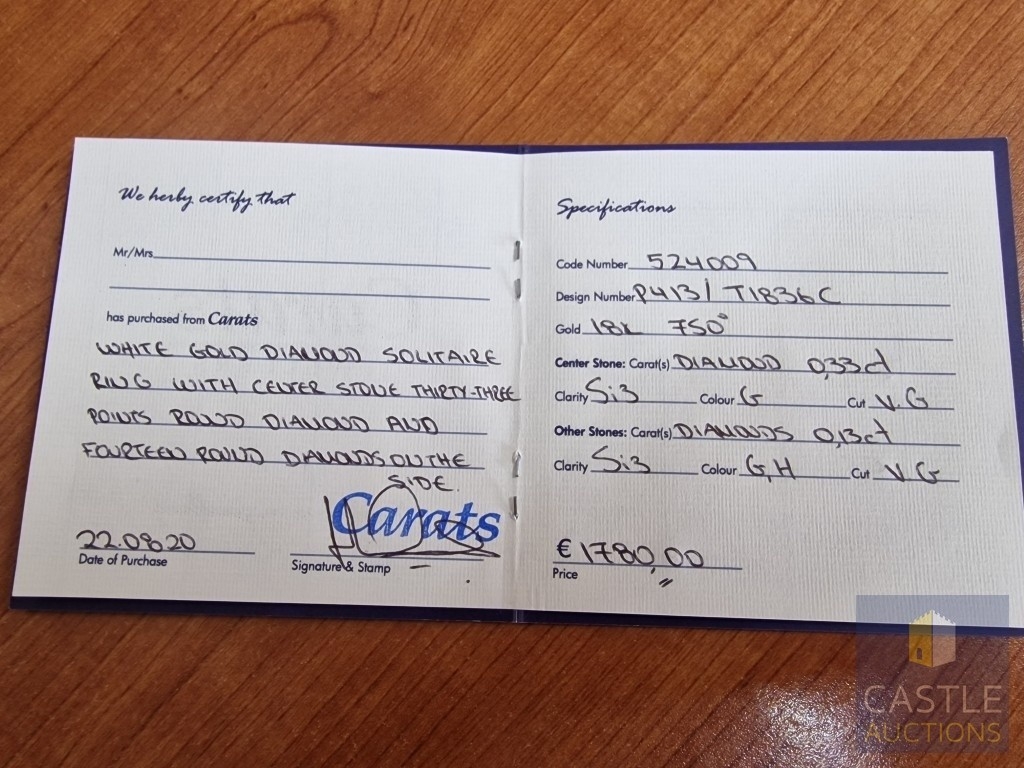 Together with Certificate of Authenticity for Each from Carats, (2)