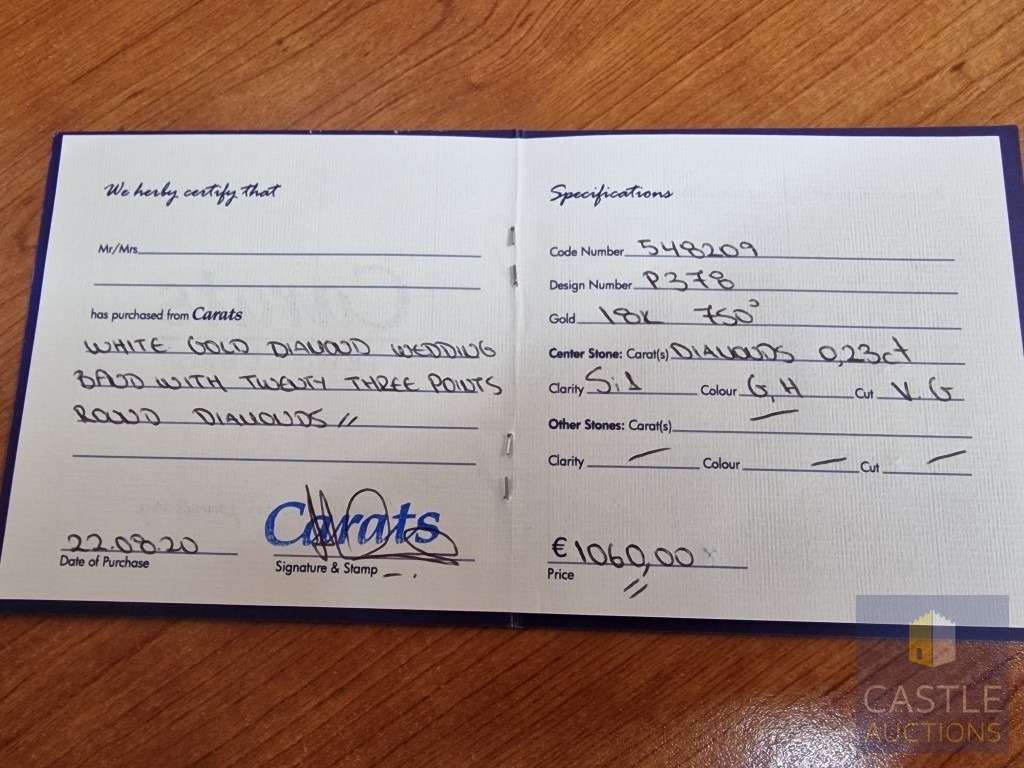 Half Eternity Wedding Band with 23 x Round Cut Diamonds, Approx. 0.23tcw, (3.3g, Size: O)