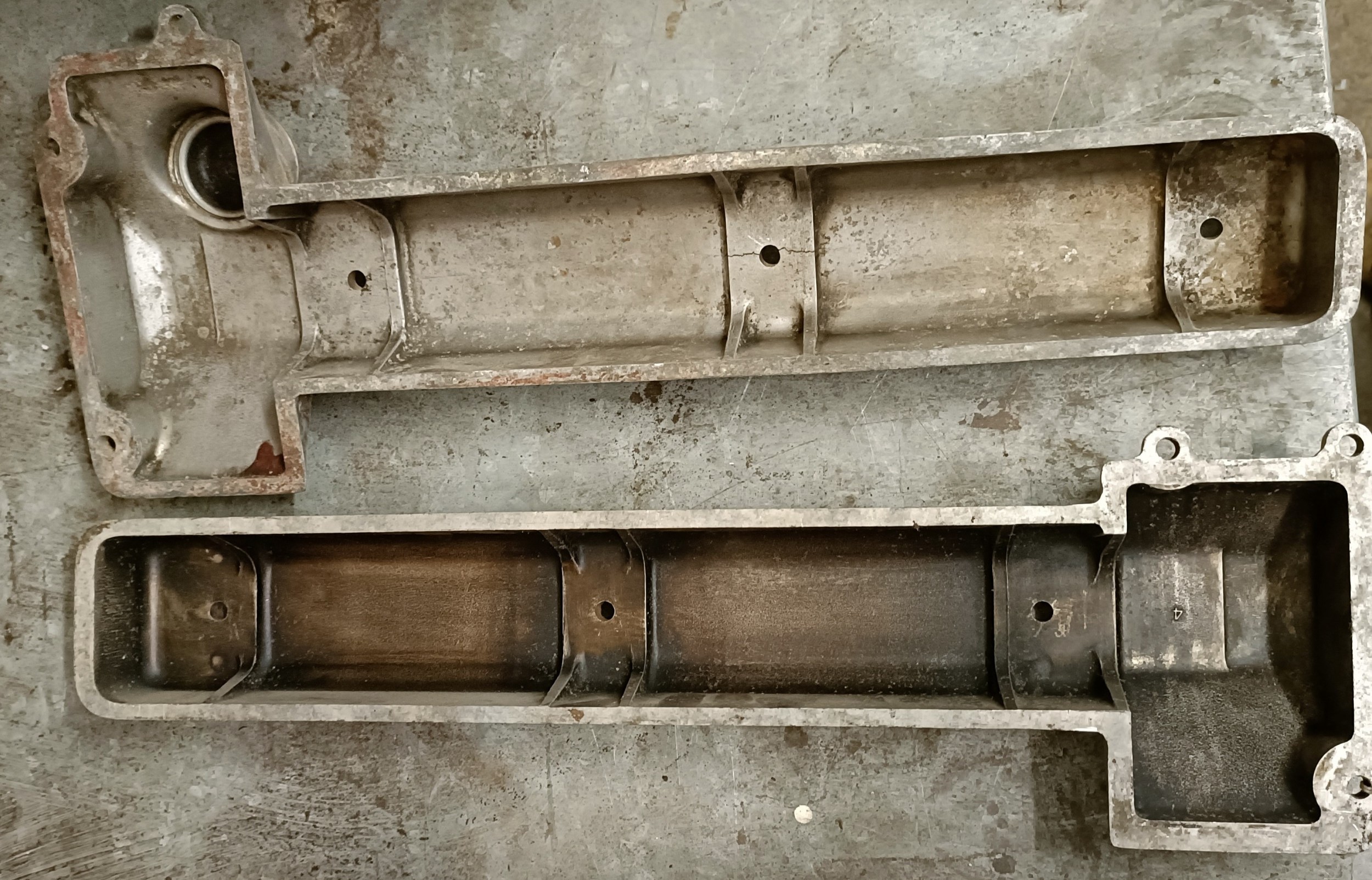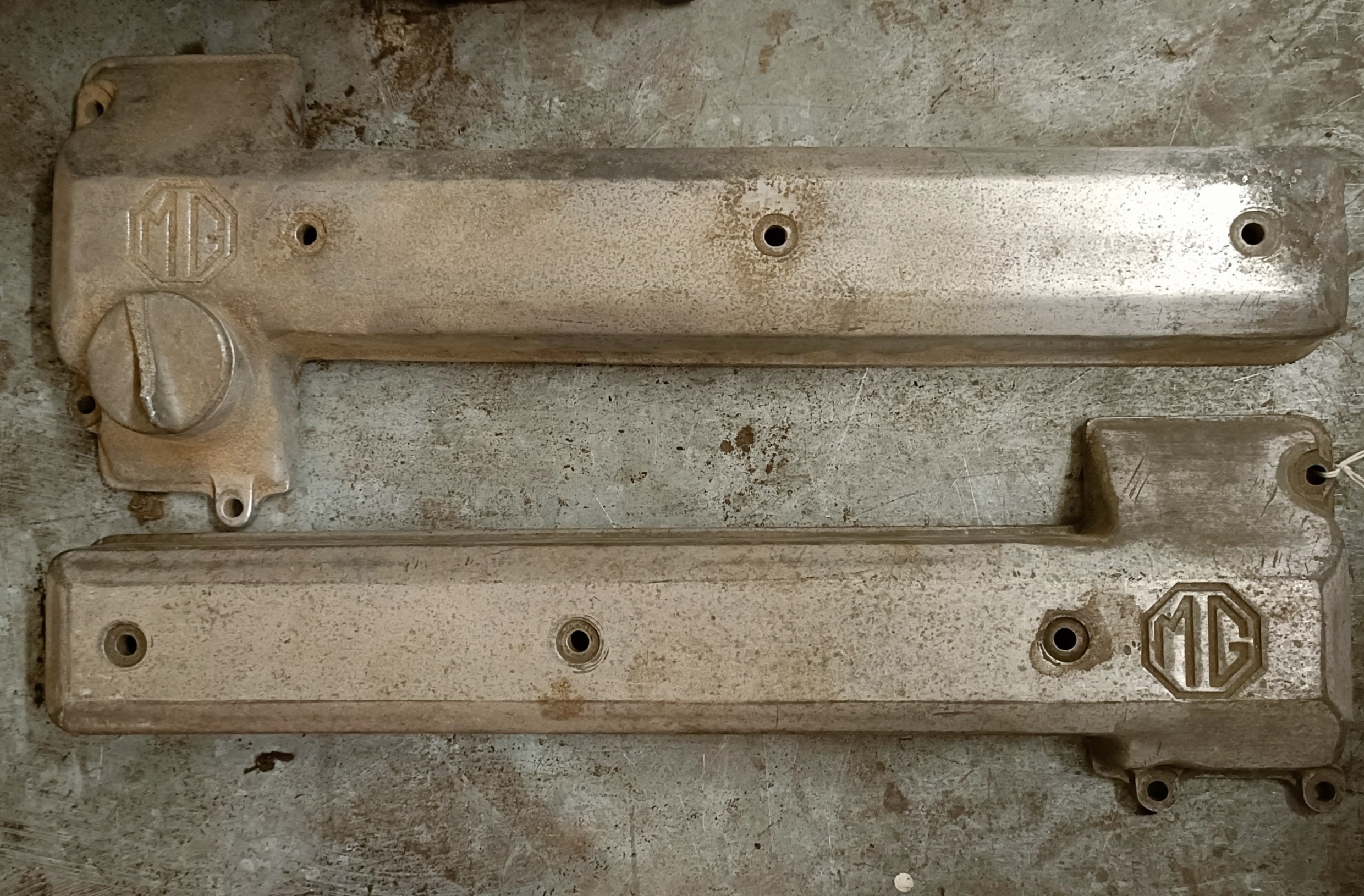A rare pair of MGA Twin Cam covers, with an oil cap