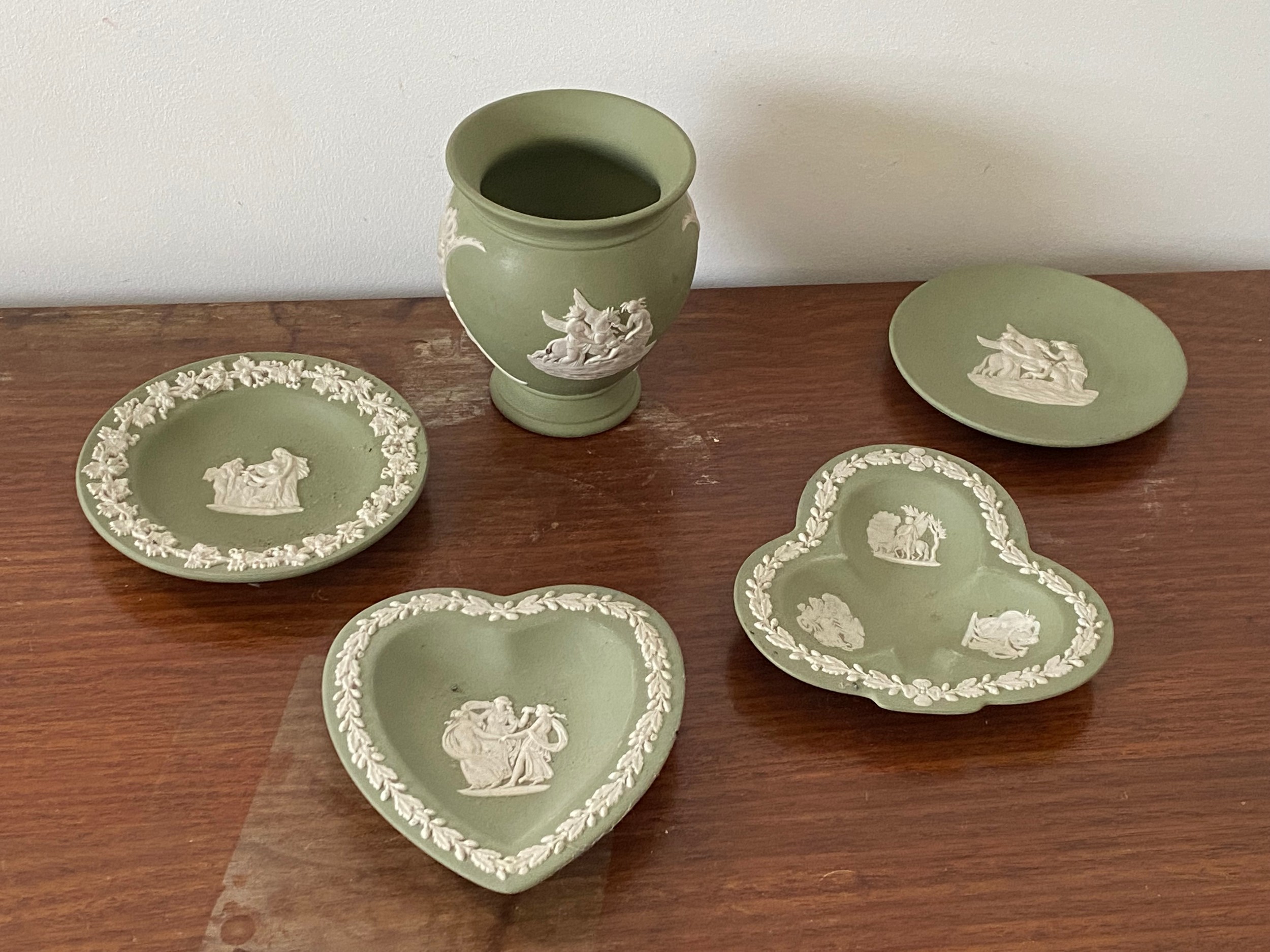 Collection of 5 pieces of Sage Green Wedgwood Jasperware