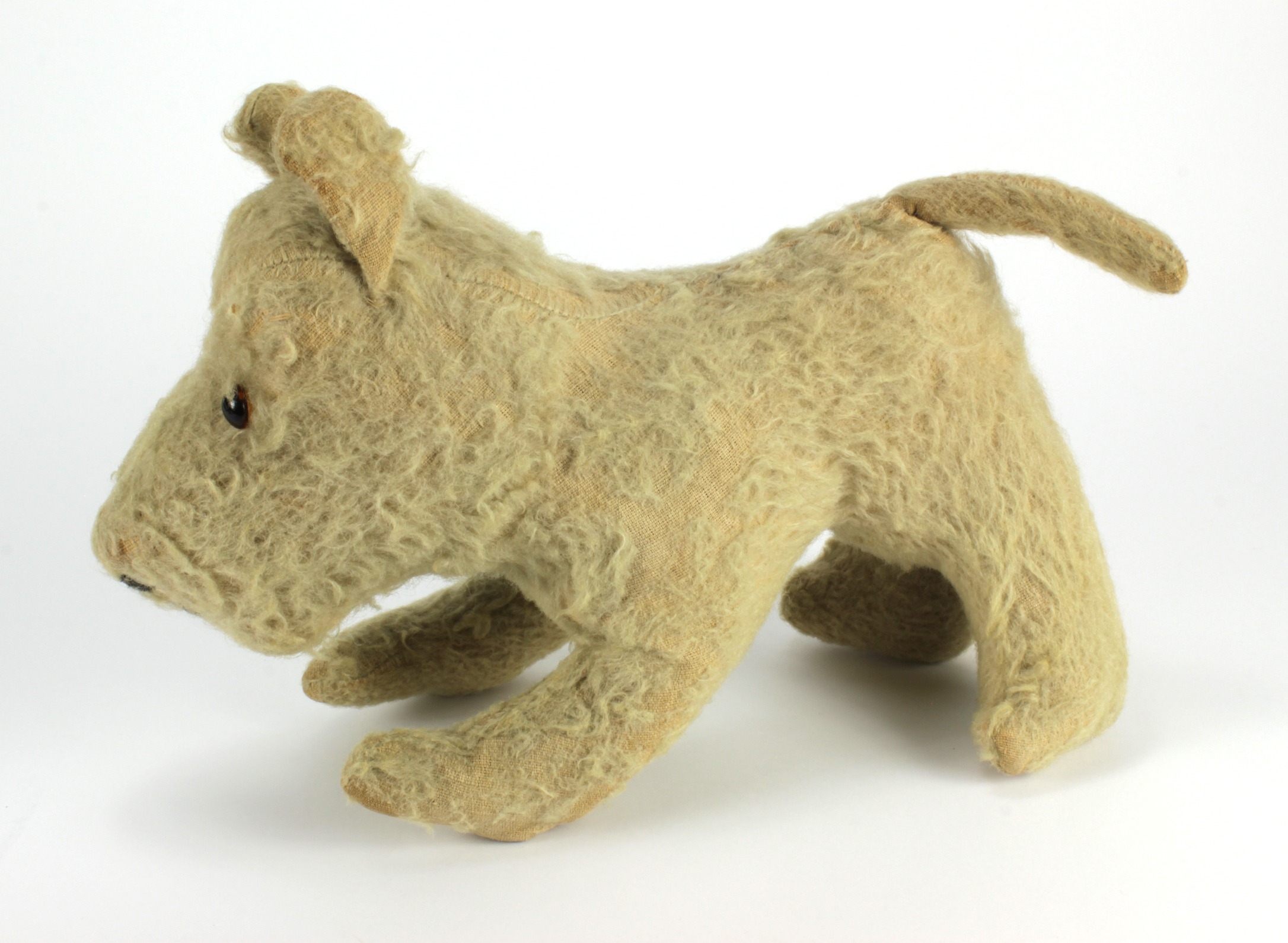 Terrier interest. A terrier dog toy, circa mid 20th Century, maker unknown, height 23cm, length 35cm approx.