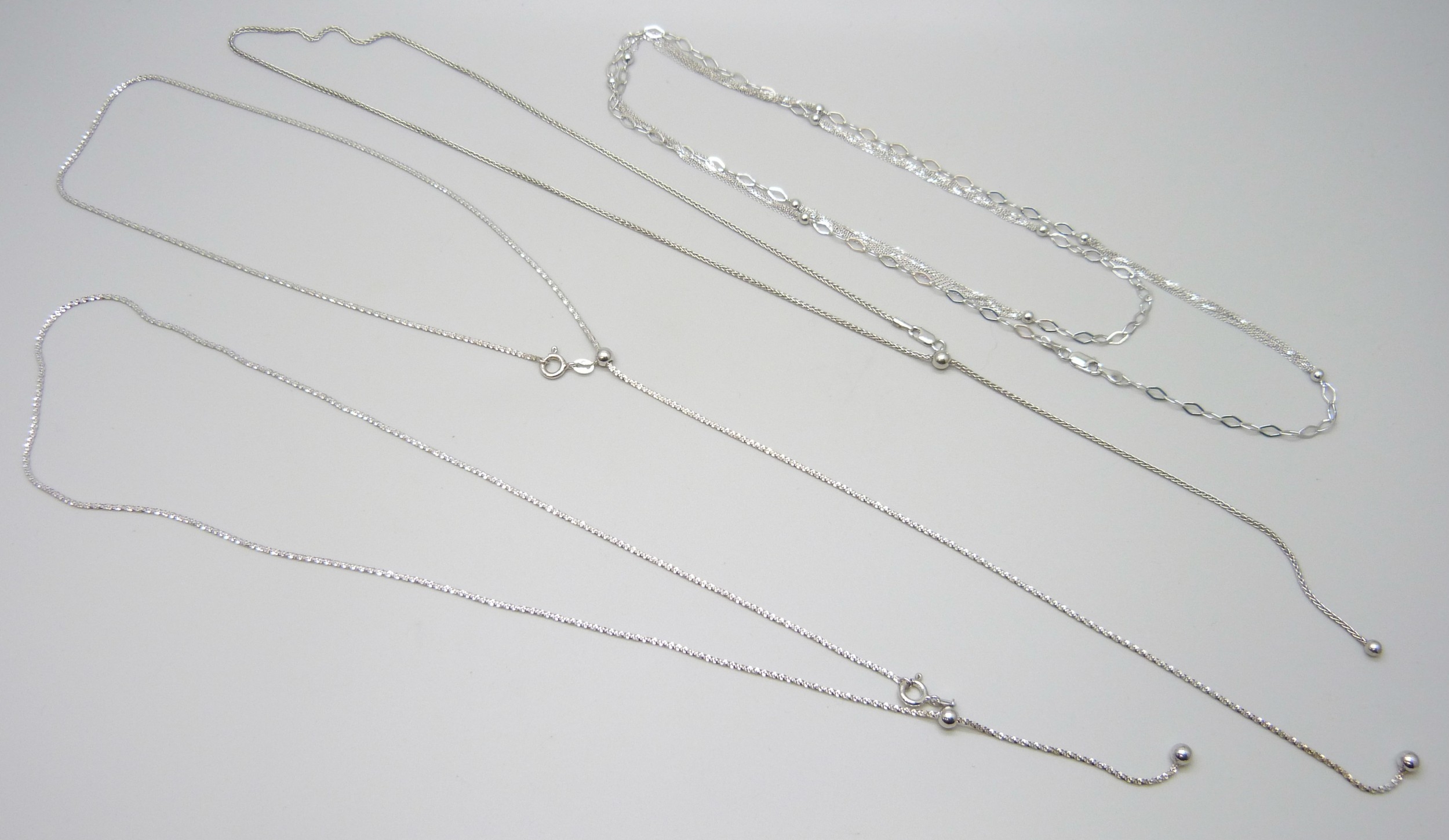 A collection of four silver chains, 22g