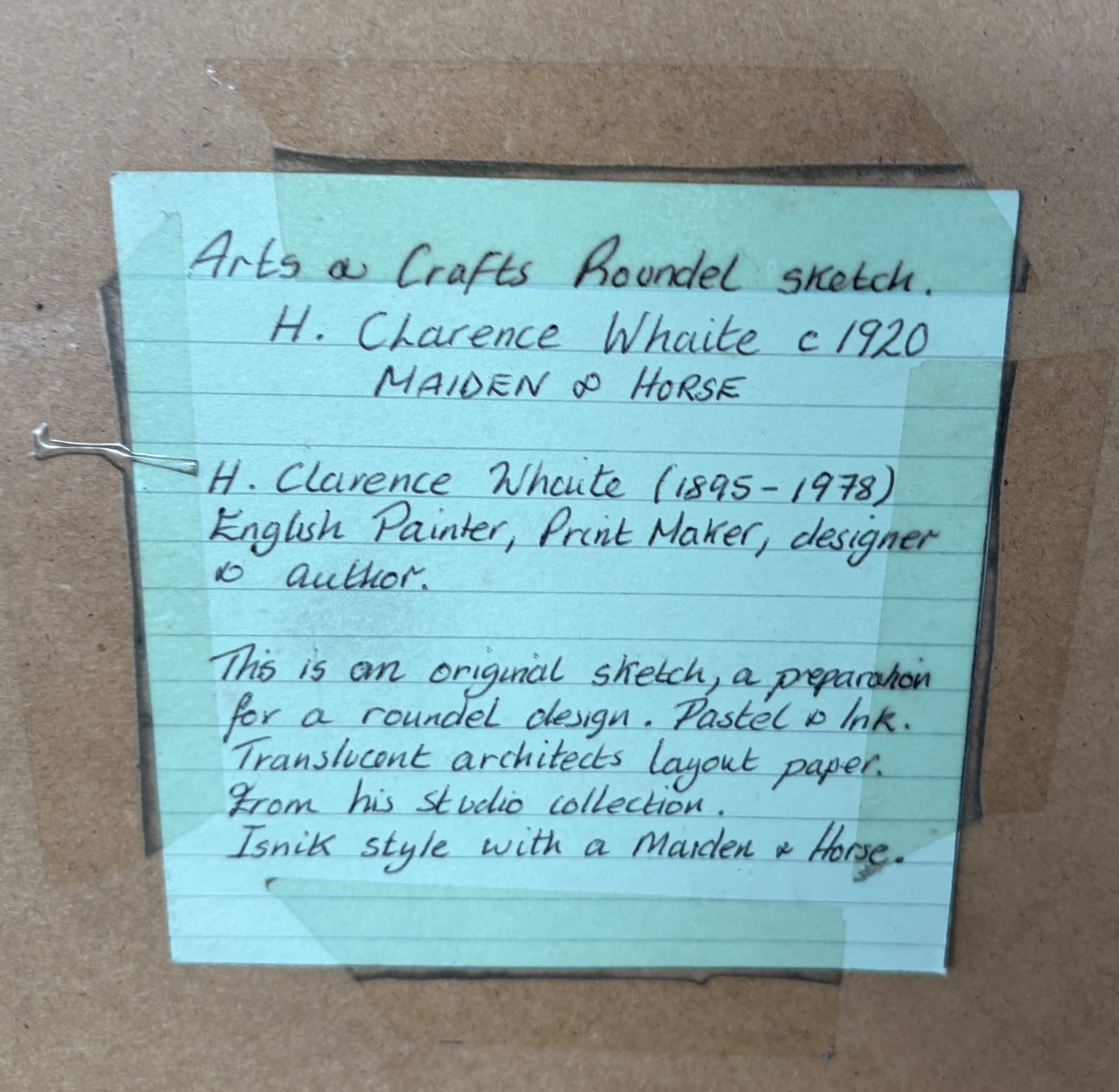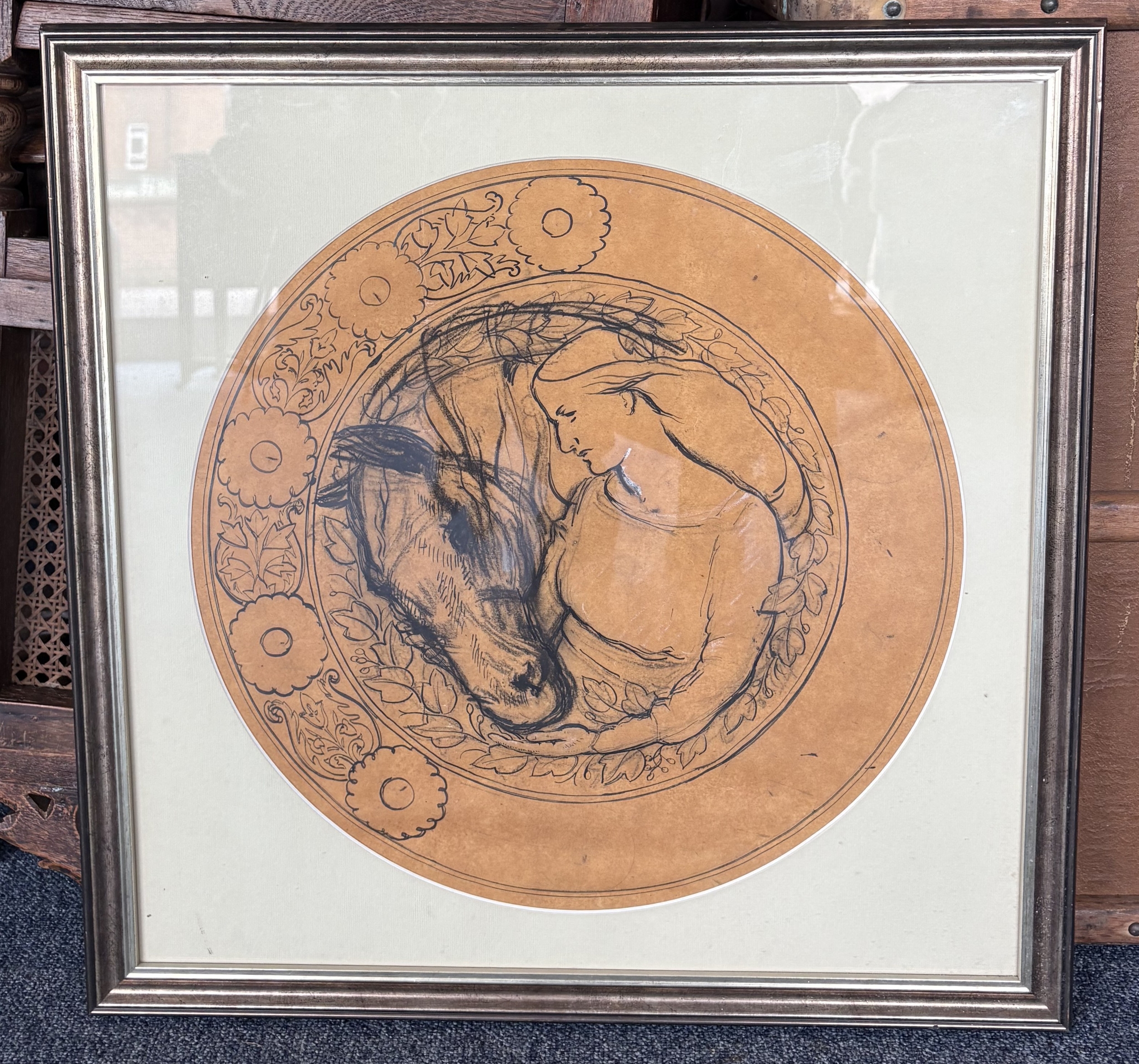 HENRY CLARENCE WHAITE: (British: 1828 - 1912): A framed and glazed roundel ink, charcoal and chalk sketch. Inscribed verso. Approx. 40 cm diameter (ss). Est. £20 - £30.