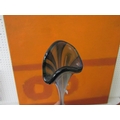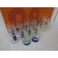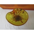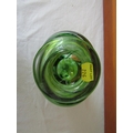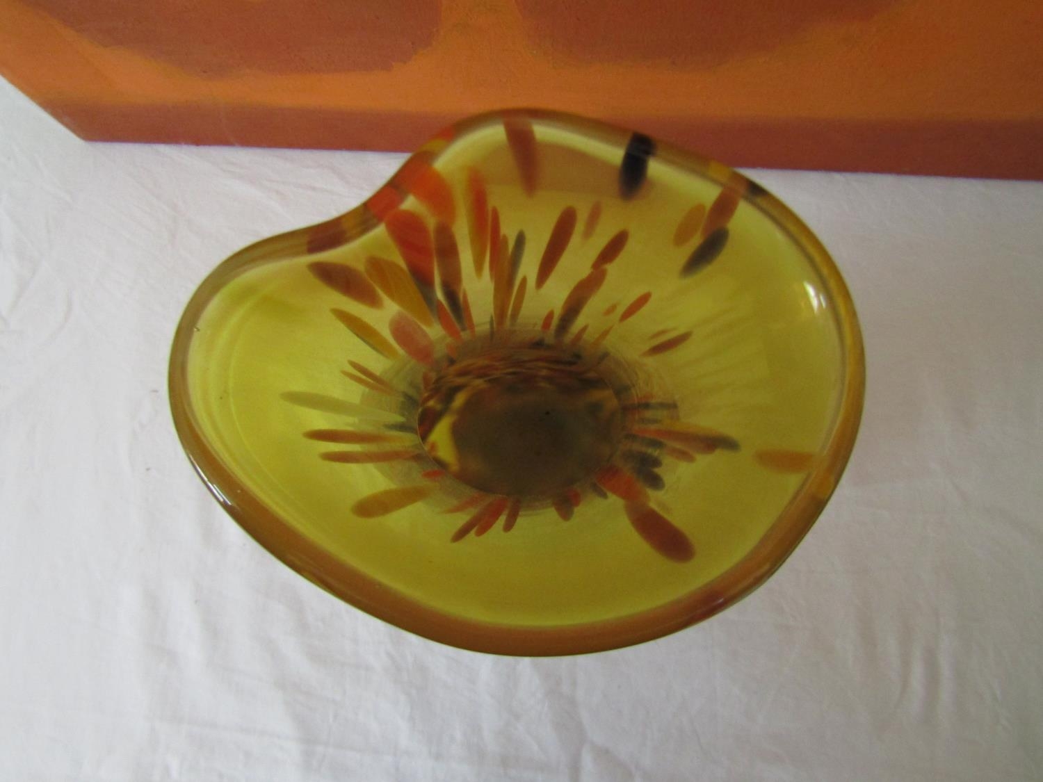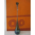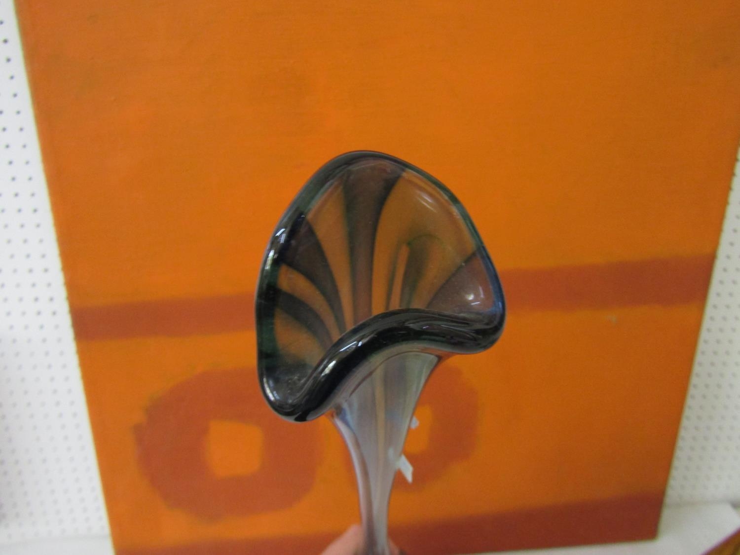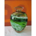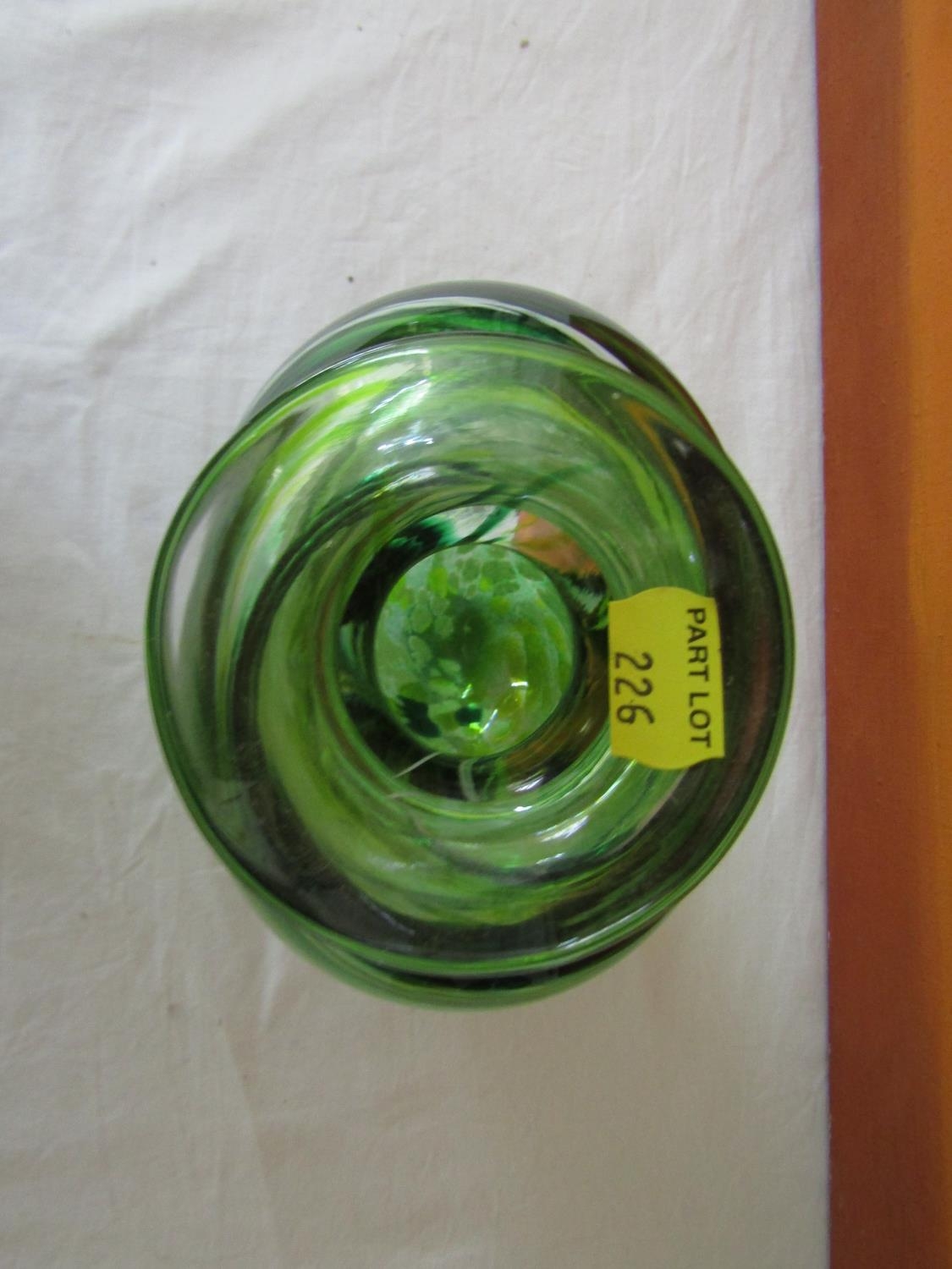 Good quality heavy glass baluster vase with mottled stripe green and white decoration, 23 cm high, together with a further Sunderland glass baluster vase with mottled orange decoration upon a yellow ground, 40 cm high, and a further tall Venetian type glass vase, 73 cm (3)