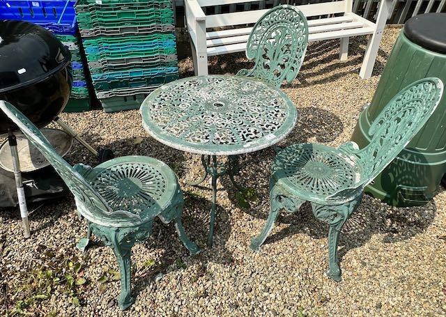 Ornate Aluminium Garden Table & 3 Chairs