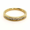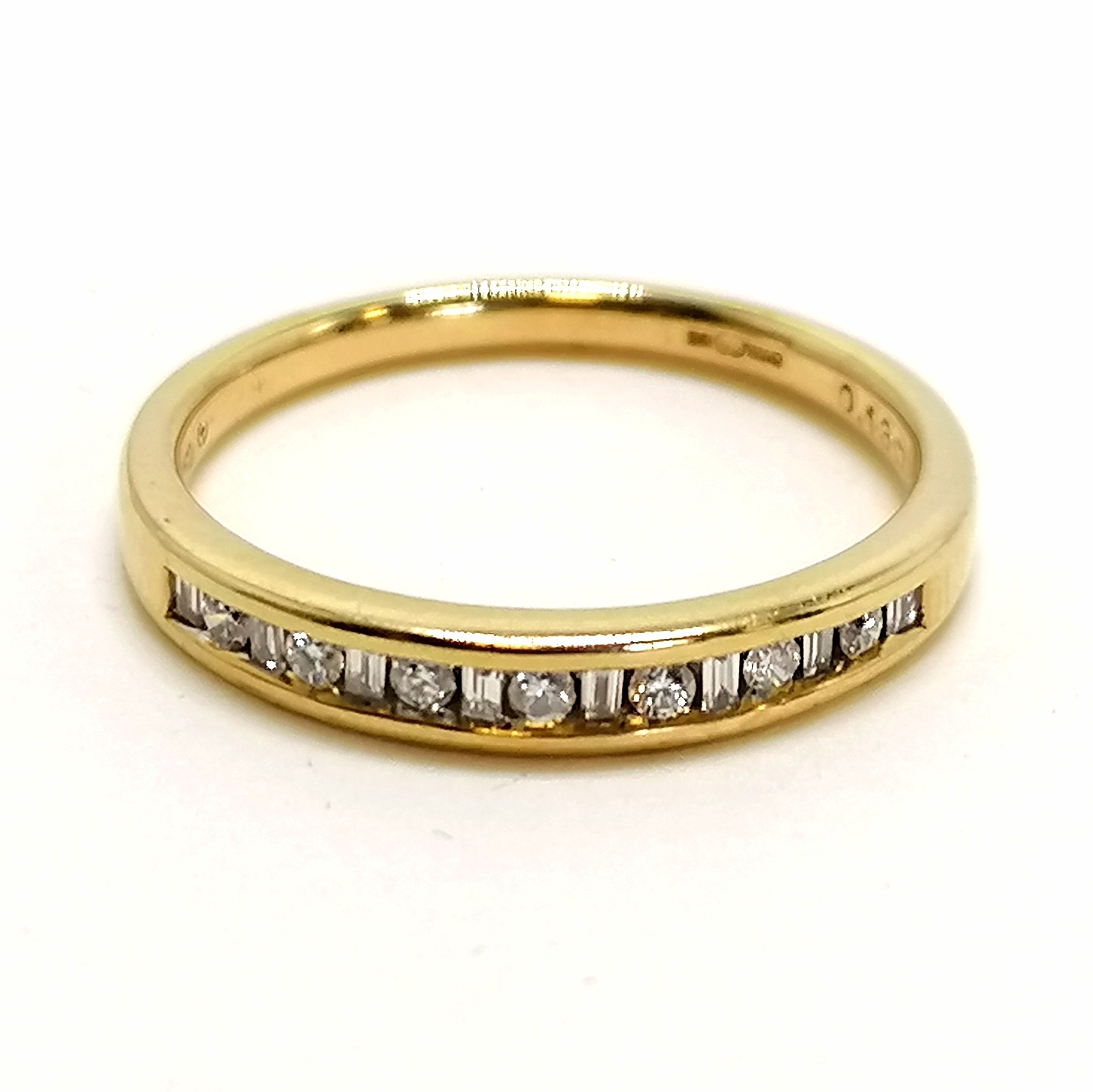 18ct hallmarked gold diamond set (baguettes & brilliant cut totalling 0.13ct) half eternity ring - size K & 2.3g total weight