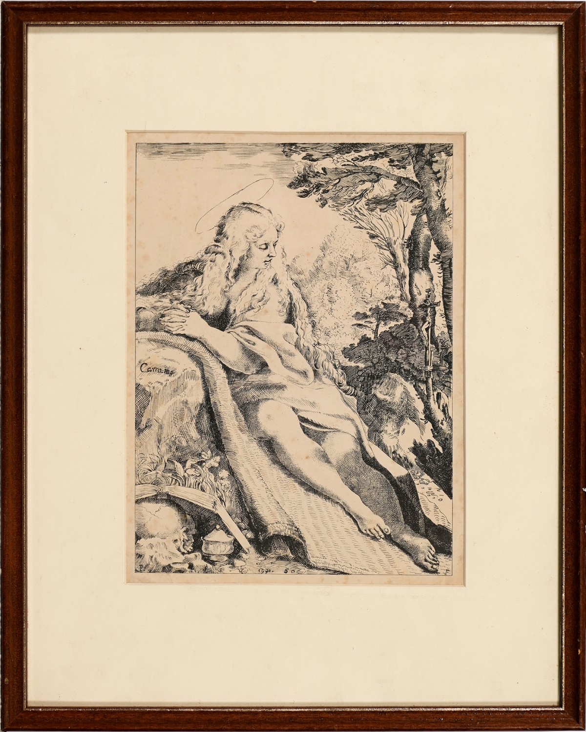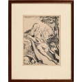 Federico Barocci (c. 1535-1612) - The Virgin Seated on a Cloud, s.l., s.n., n.d. [Urbino, 1580-84], etching with some engraving, trimmed with loss of monogram, 14 x 10.5cm; Edward Smith (c. 1780-c. 1849) - Three Soldiers by an Encampment, after an earlier Old Master, signed within the plate, n.d. [c. 1794], etching, the margin further inscribed in manuscript: Etchings by Edward Smith when about the age of fourteen years in the possession of Miss Rogers, 6 x 8.5cm; further Old Master and later prints, including a North European 17th century etching of a figure in a landscape, the background with farm buildings; a mezzotint portrait by William Henderson, signed in pencil, Hogarth frame, Dunthorne label; three reproductions from Robert Dunthorne at The Rembrandt Gallery, with their original labelled frames (8)