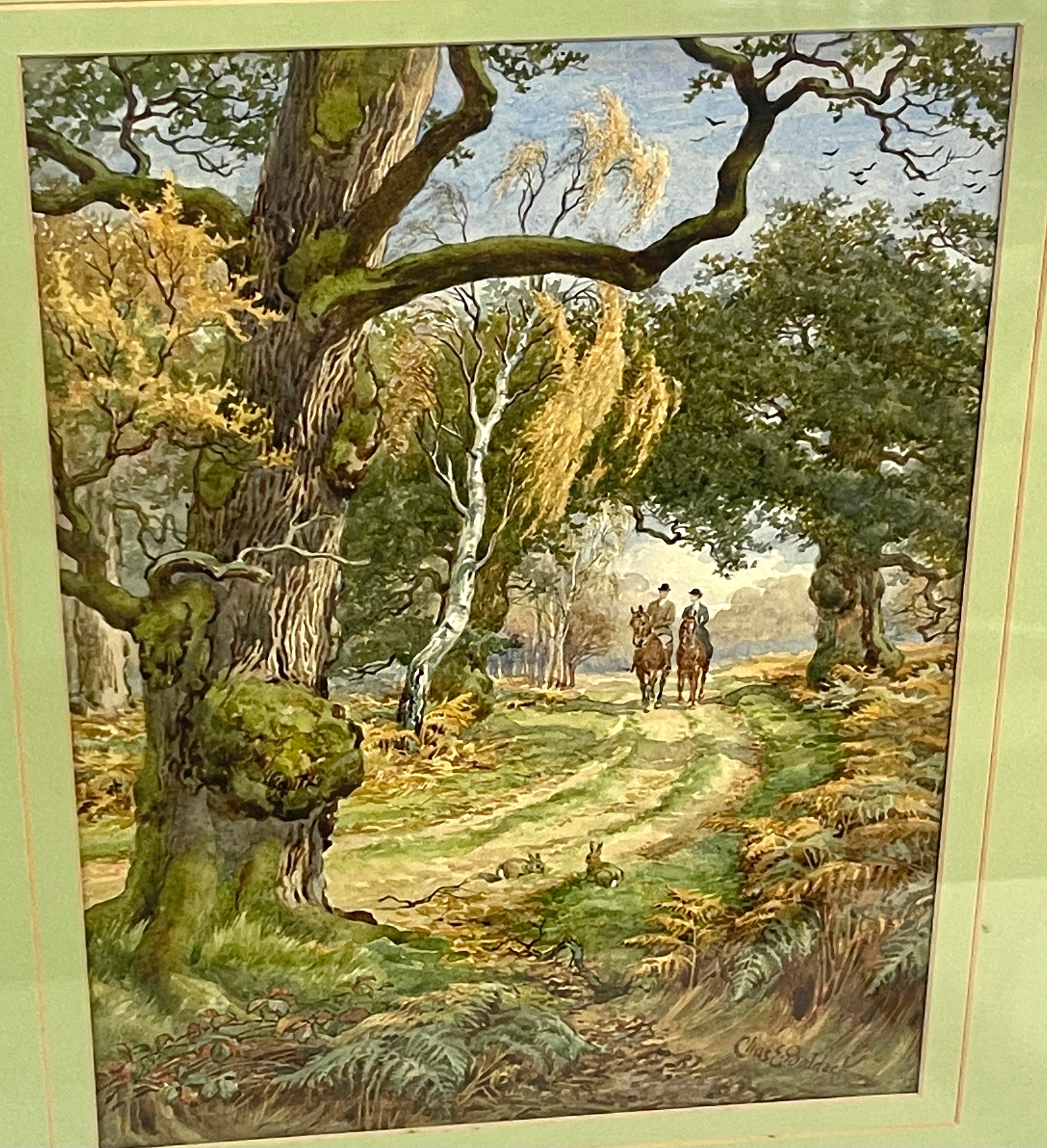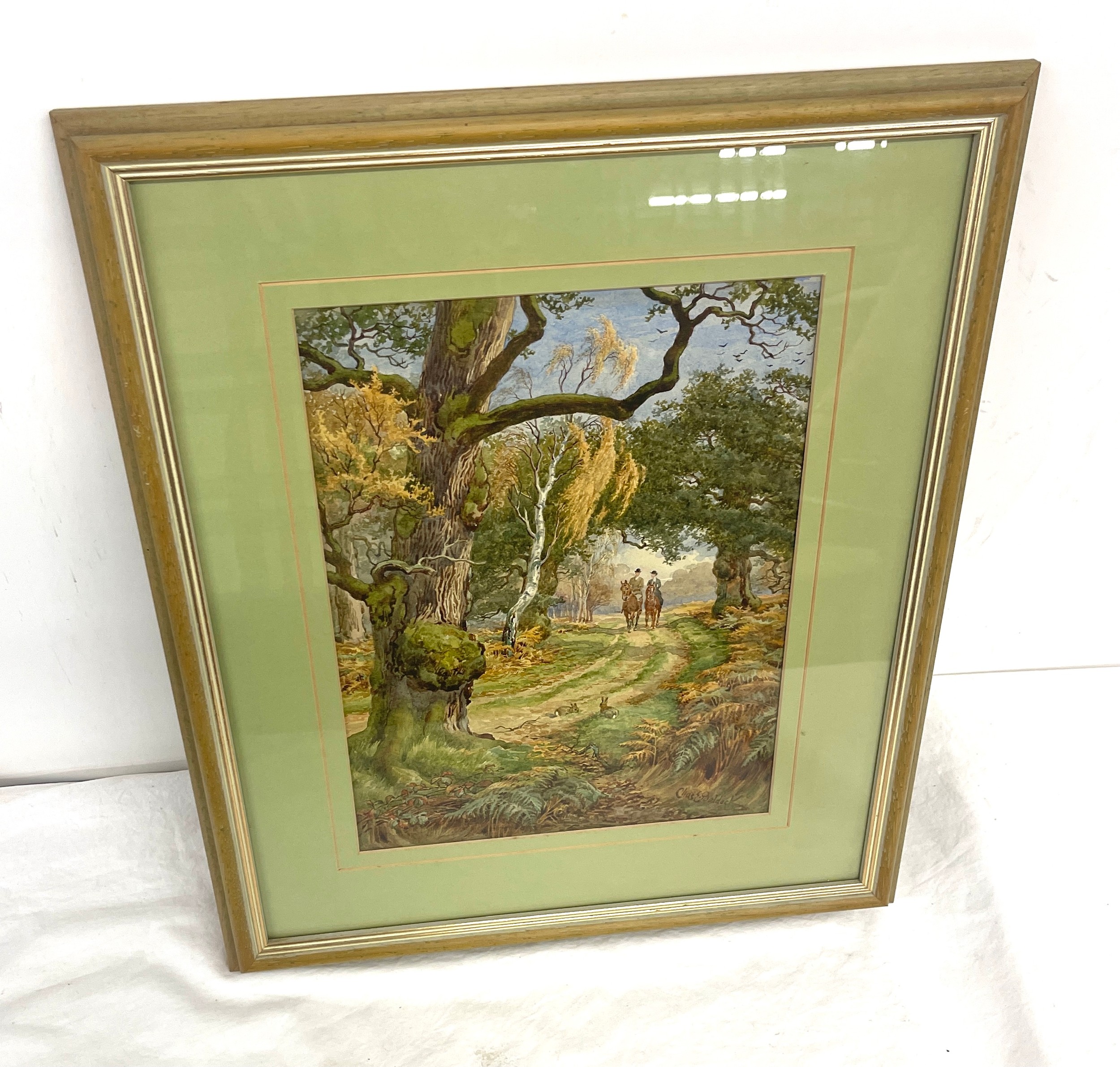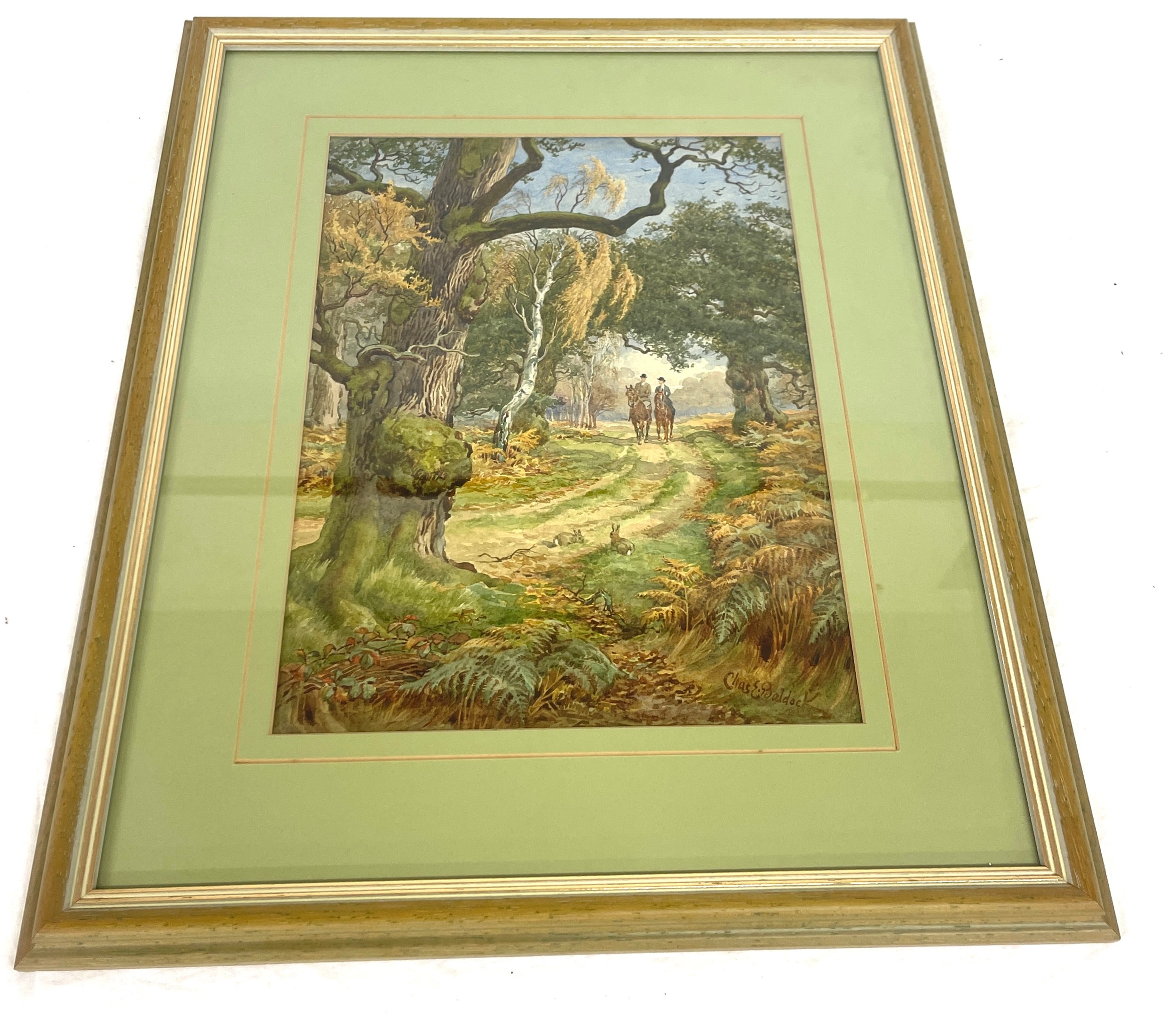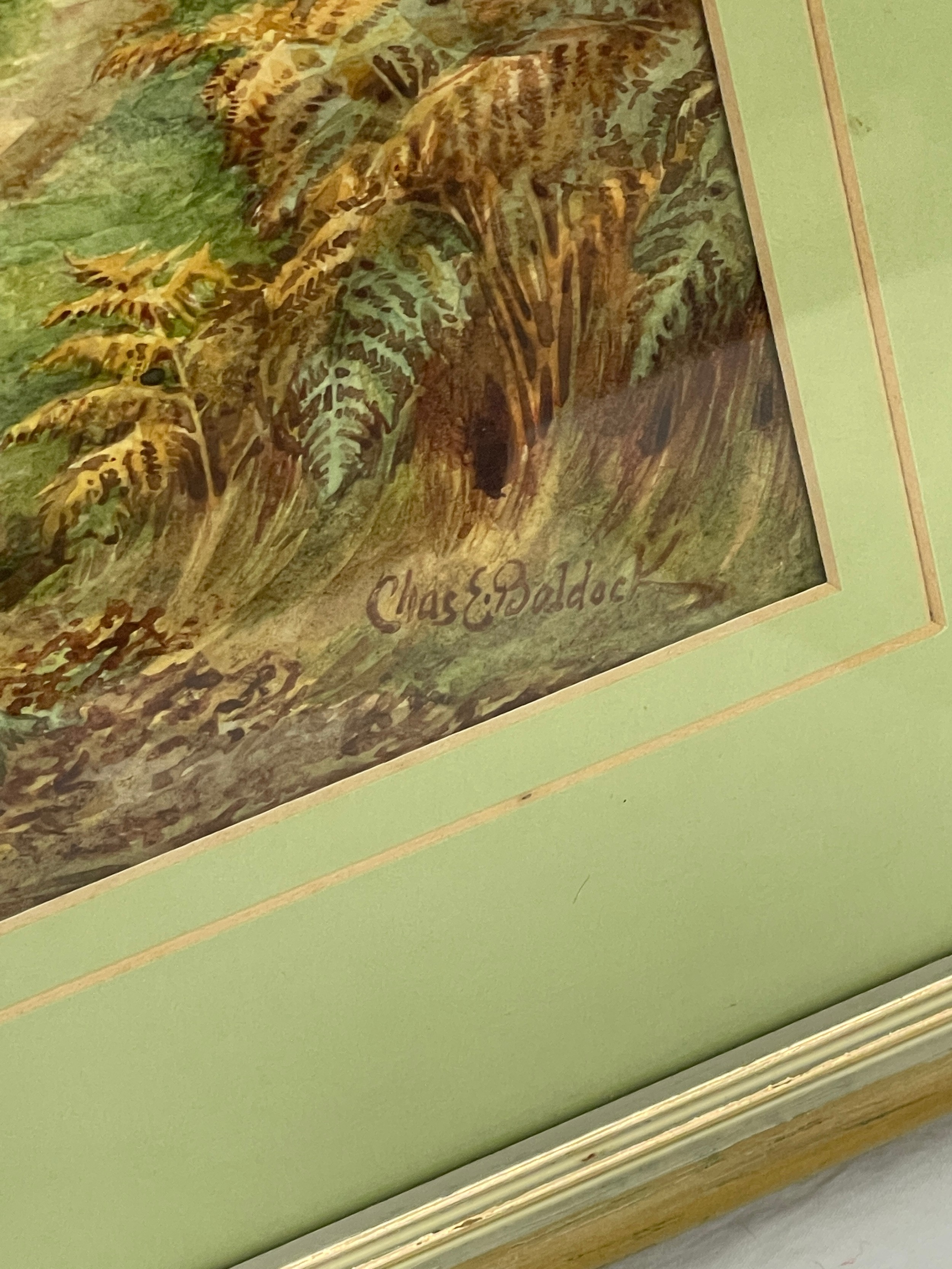 Framed watercolour signed Chas E Baldock, bridleway scene, approximate frame measurements: 40cm wide 48cm tall