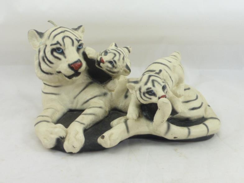 Resin Snow Tiger Candle Depicting Tiger and Cubs