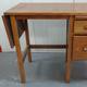 Oak Student's Desk bank to 1 side: 1 deep, 1 shallow drawer & pull out slide on square section supports, knee hole & drop flap to left hand side