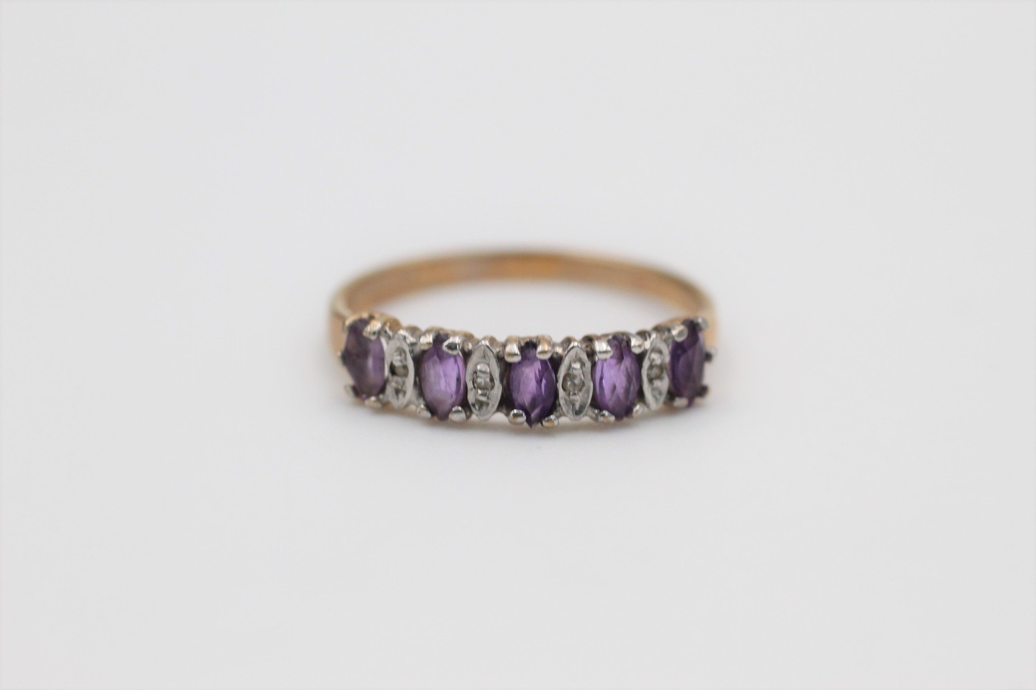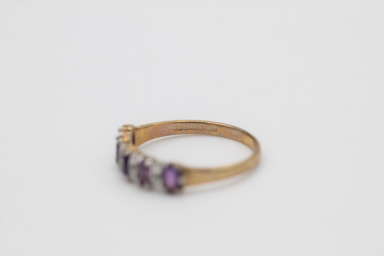 9ct gold amethyst and diamond half eternity ring (1.3g)