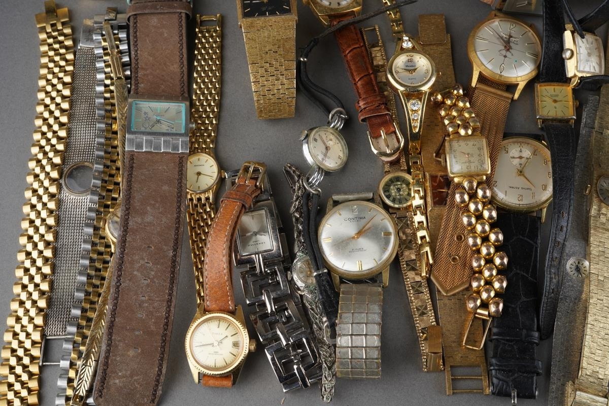 A quantity of ladies and gent's manual and quartz wrist watches, including Swiss Watch Corporation, Smiths Astral, Maurice Lacroix Intuition quartz wrist watch, stainless steel and 18ct gold plated case on integral bracelet numbered 59858, Roamer, Rotary, Accurist, Gillex, Zenith, Contina, Delbana, Limit, Sekonda, gold plated Baume & Mercier ladies watch on broken strap, etc (1 bag)