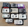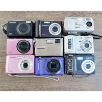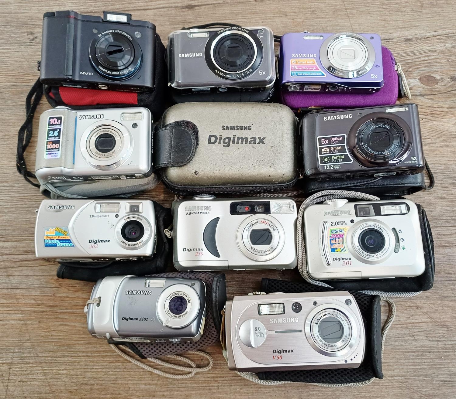 Ten Samsung compact digital cameras to include ES70 12.2mp, NV10 10.1mp, D103 10.1mp, V50 5mp etc.