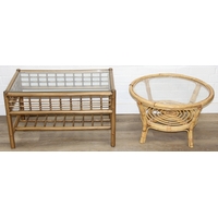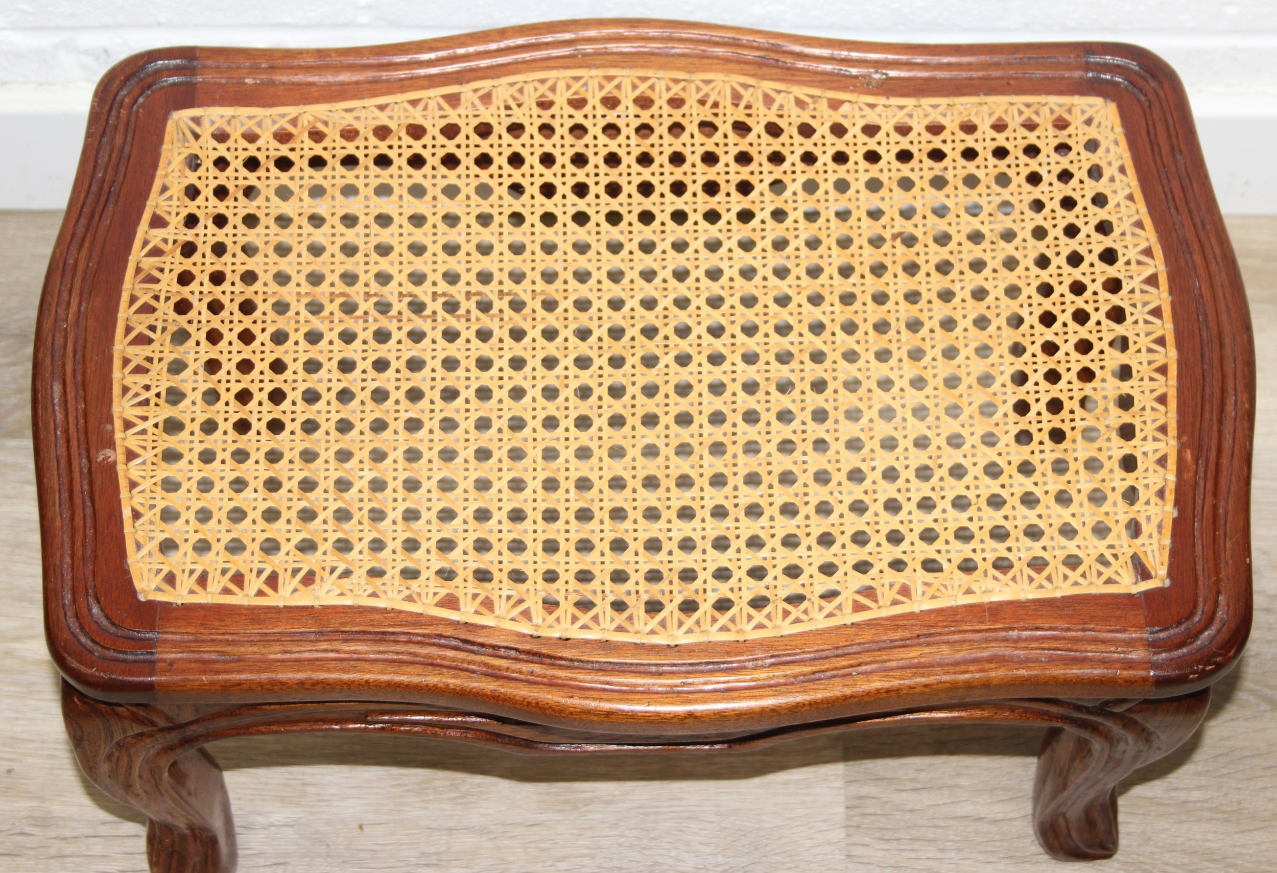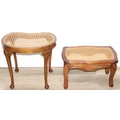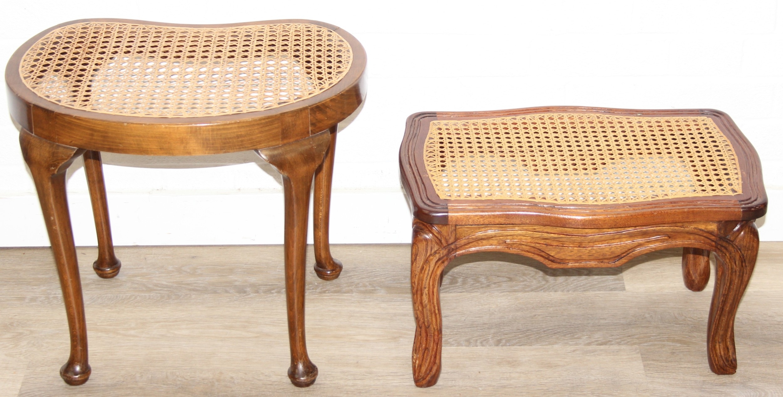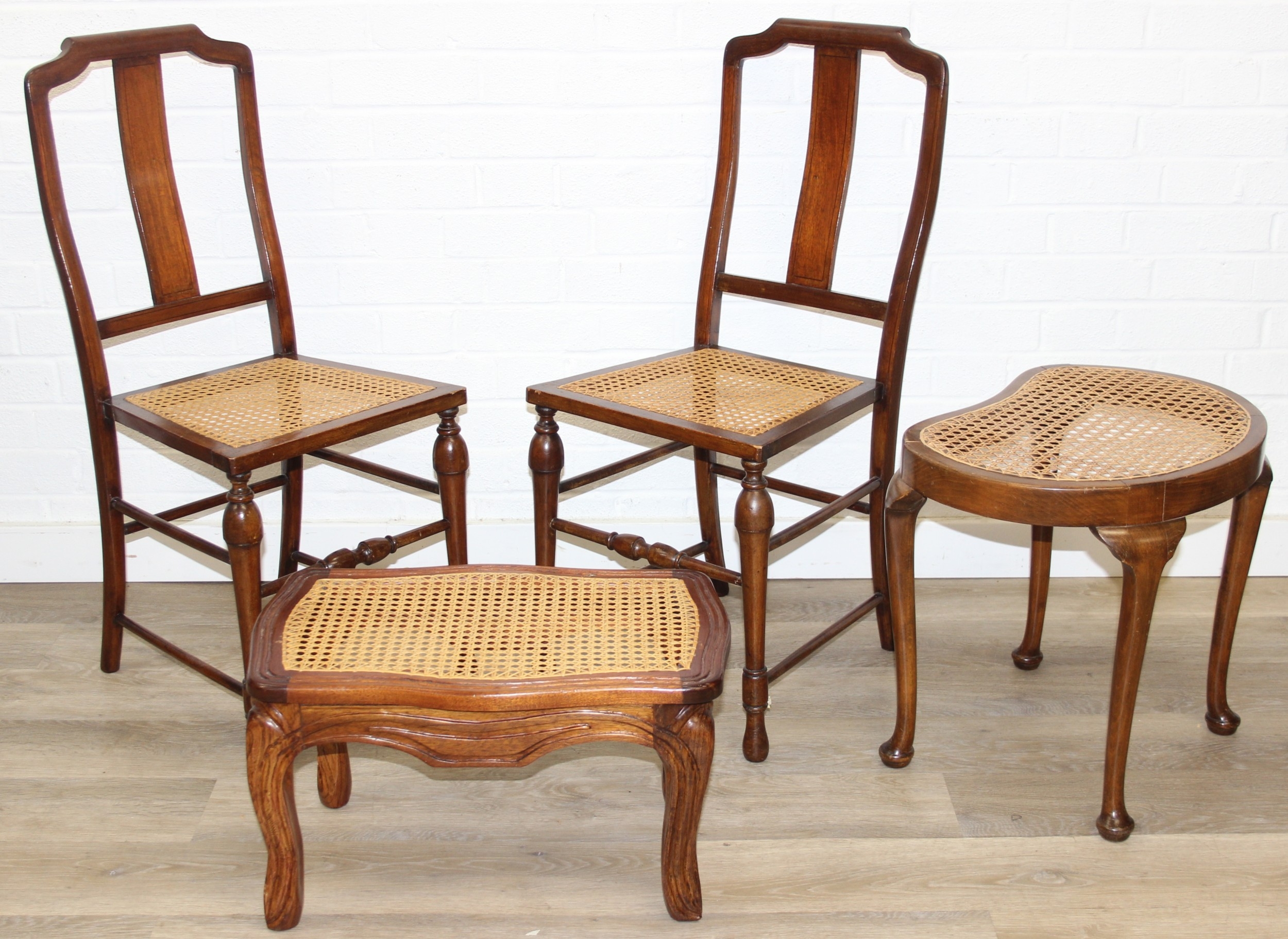 Four pieces of Bergere seated furniture to inc a pair of bedroom chairs and two stools of different designs, each chair 87cm tall [4]