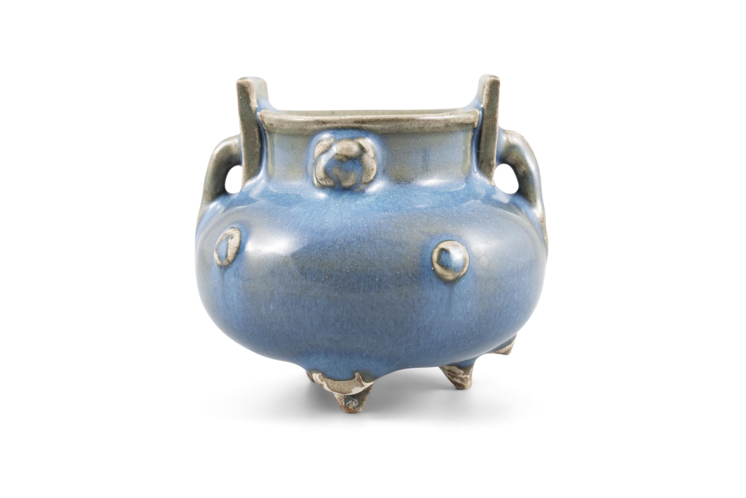 A JUN STYLE TRIPOD INCENSE BURNER DECORATED WITH SMALL FLOWERS ????? ???????? China, Ming dynasty or later H: 8.5cm Provenance: Private German collection, acquired from Nagel auction, 9 December 2020, lot no. 1140