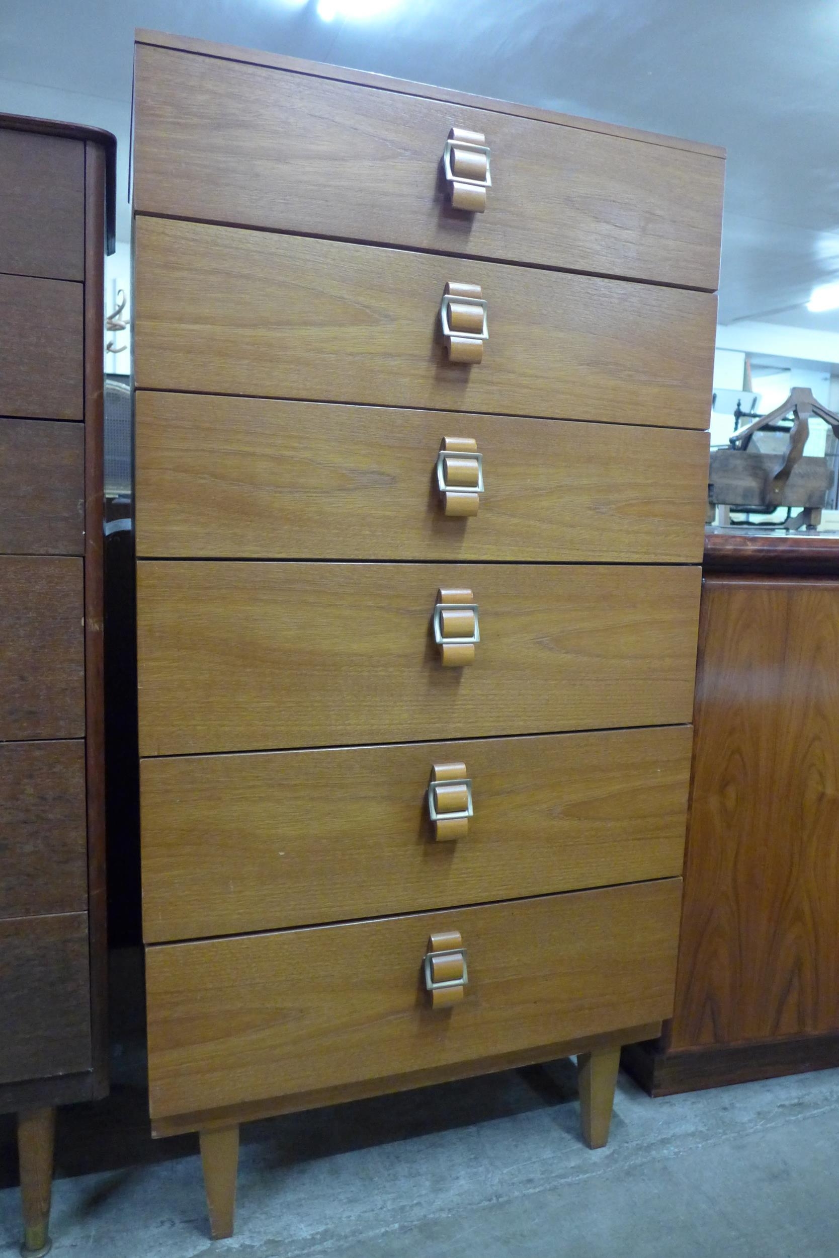 A teak chest of drawers