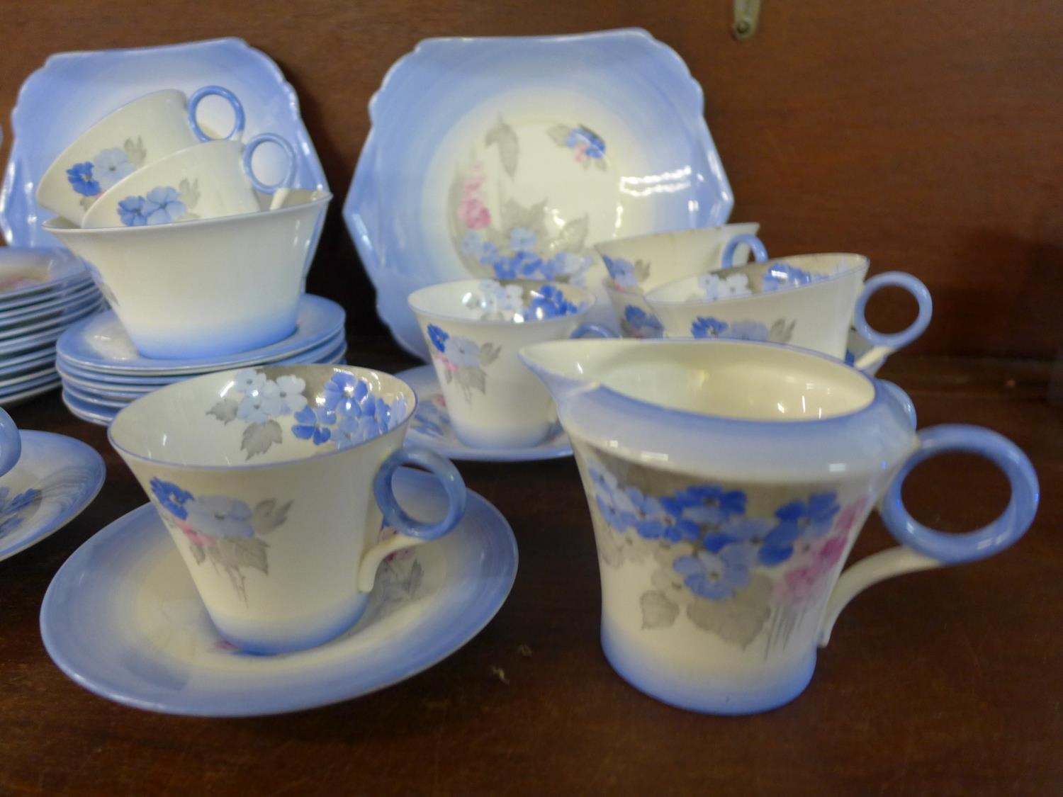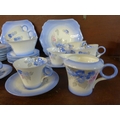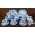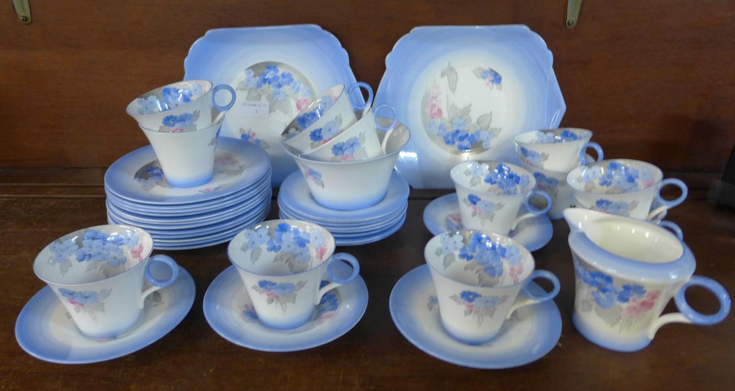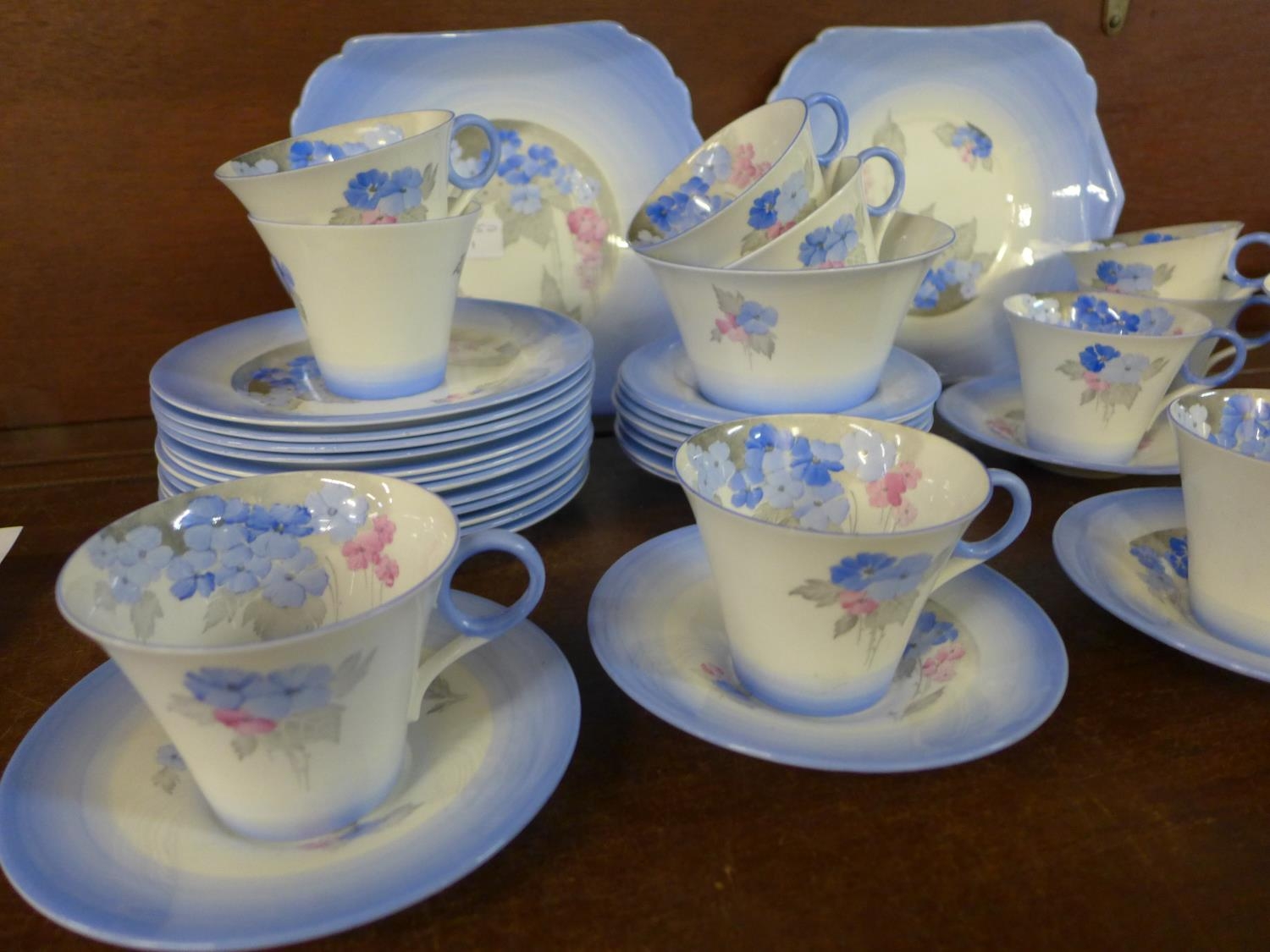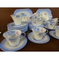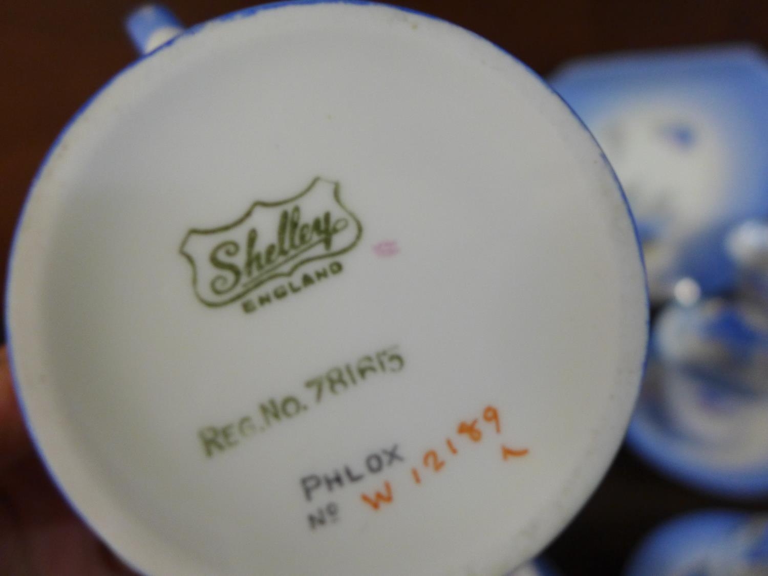 A Shelley Phlox tea service, twelve cups, saucers and side plates, cream jug, sugar and two larger plates, some a/f, two cups with hairline cracks