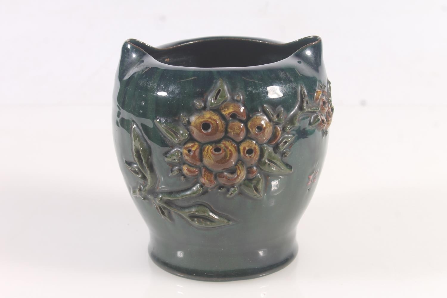 Elton Ware of Clevedon art pottery double spout vase, base signed E.H. Elton, H12.5cm