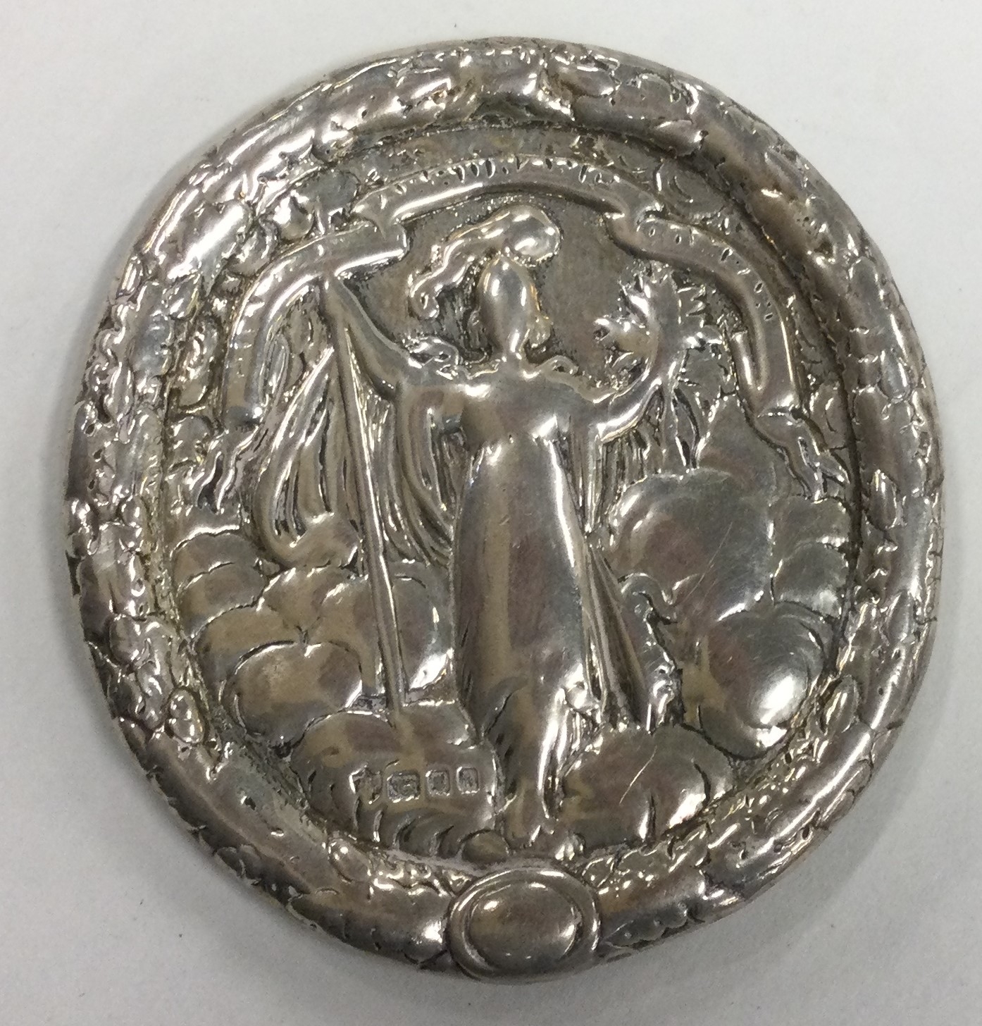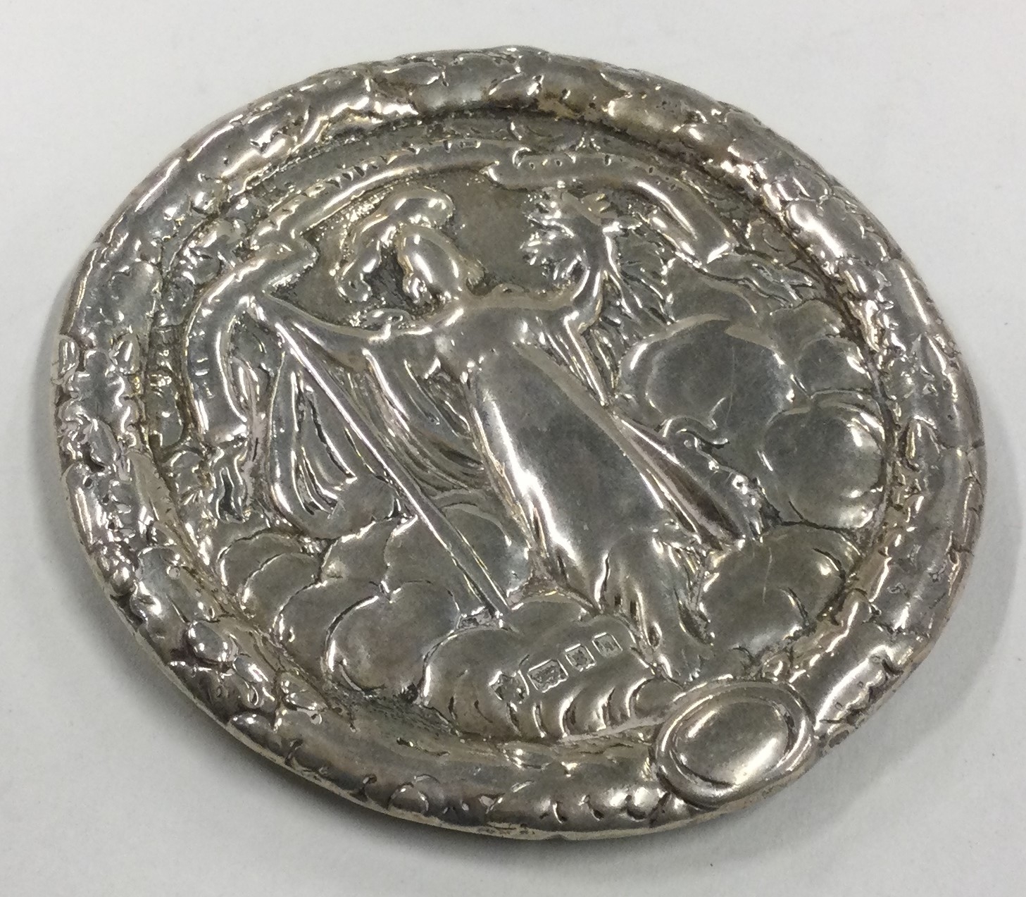 A heavy Antique silver chased medallion. Approx. 123 grams. Est. £120 - £150.