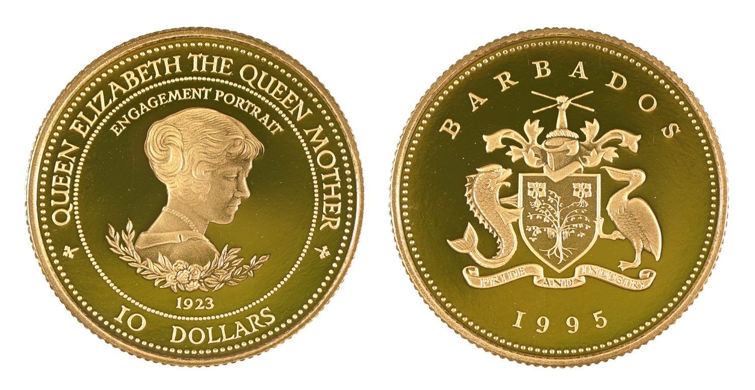 Gold coin. Barbados, commemorative Ten Dollars 1995, 0.583, 7.8g