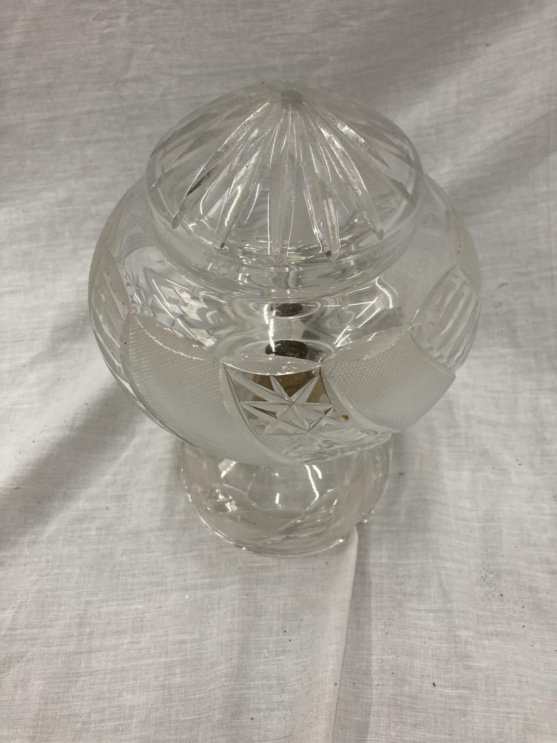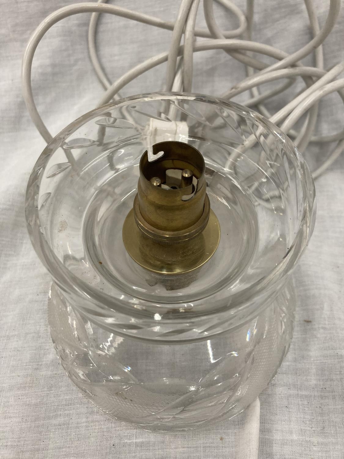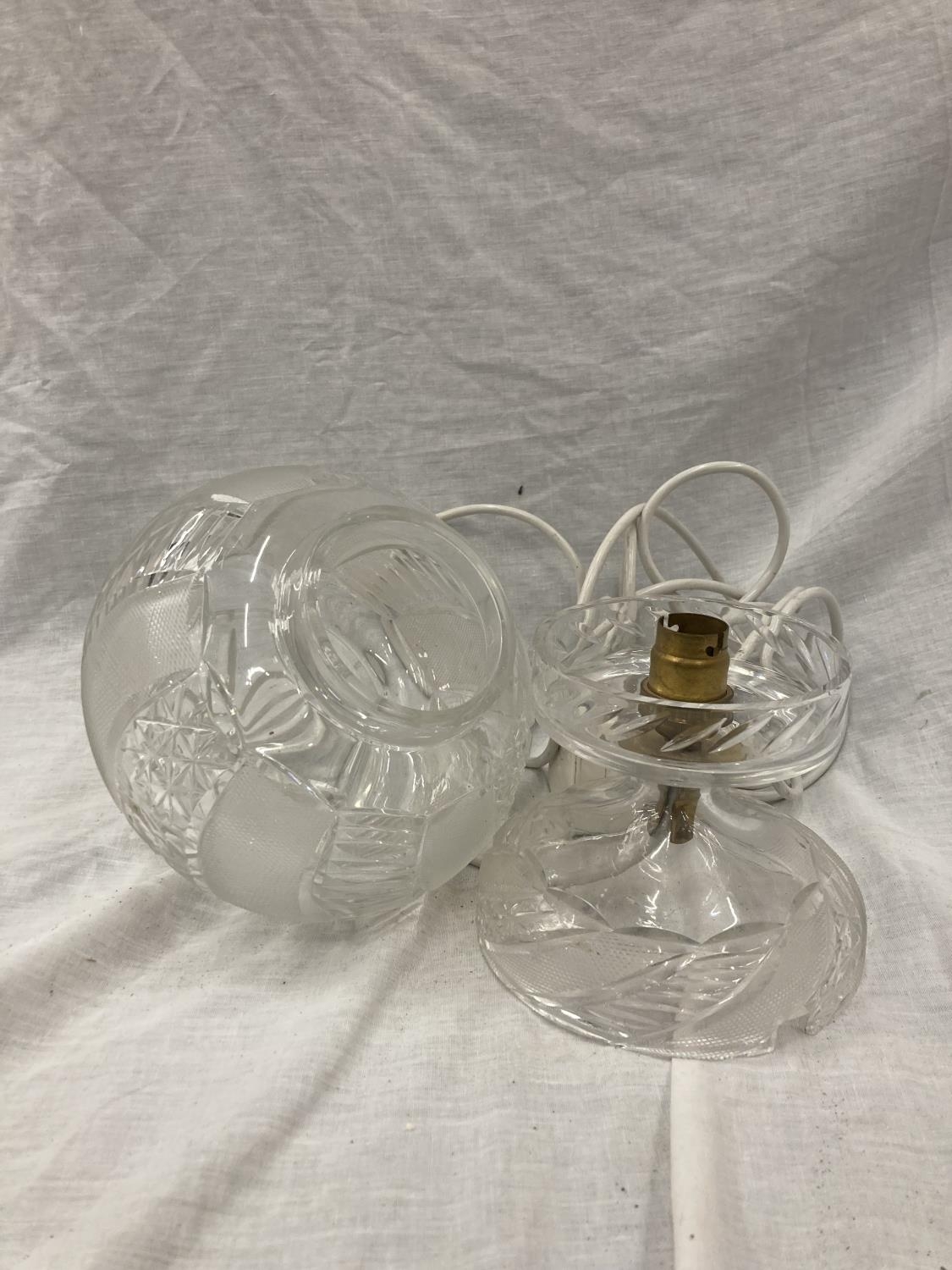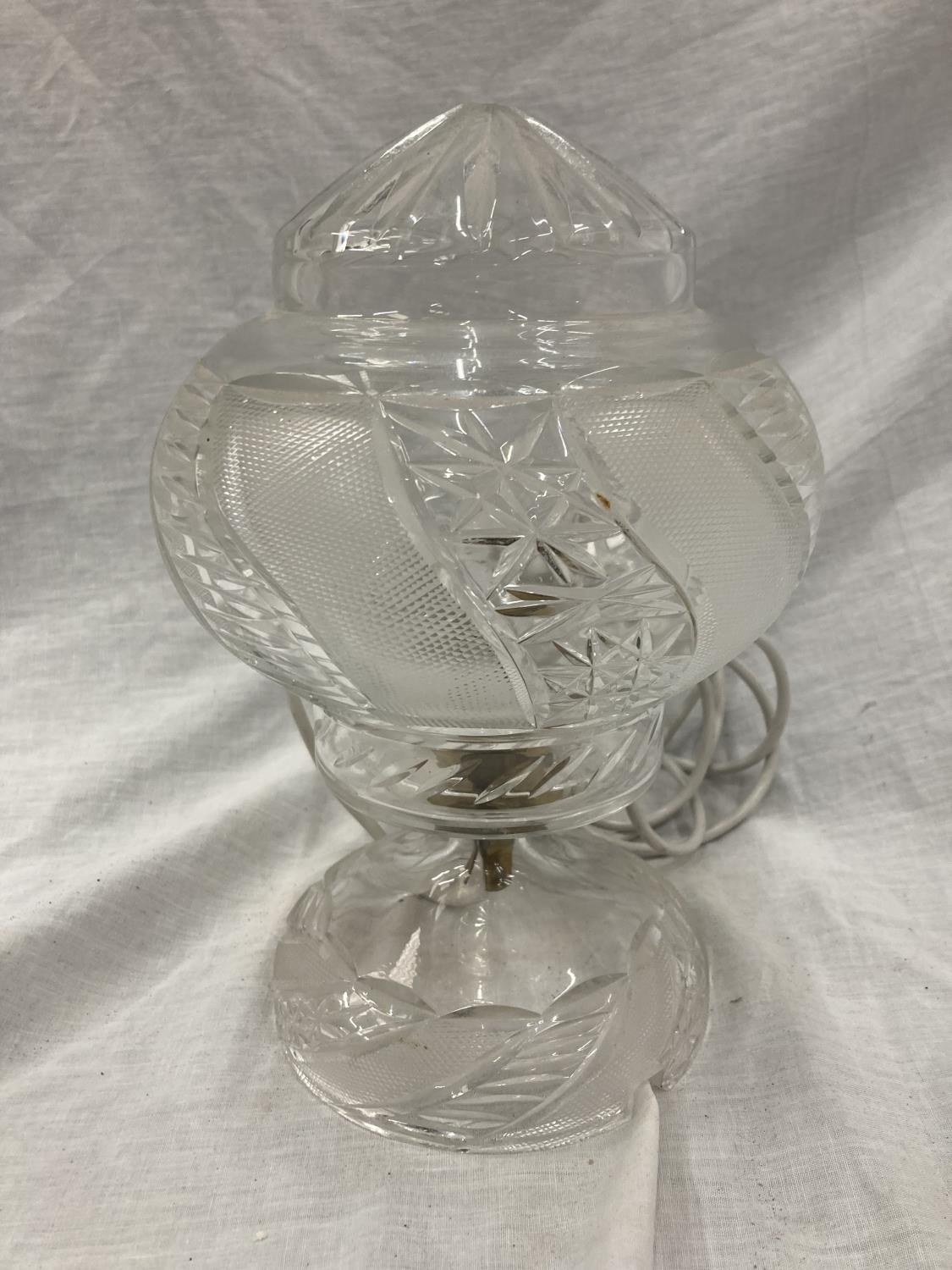 A VINTAGE ENGRAVED GLASS MUSHROOM LAMP