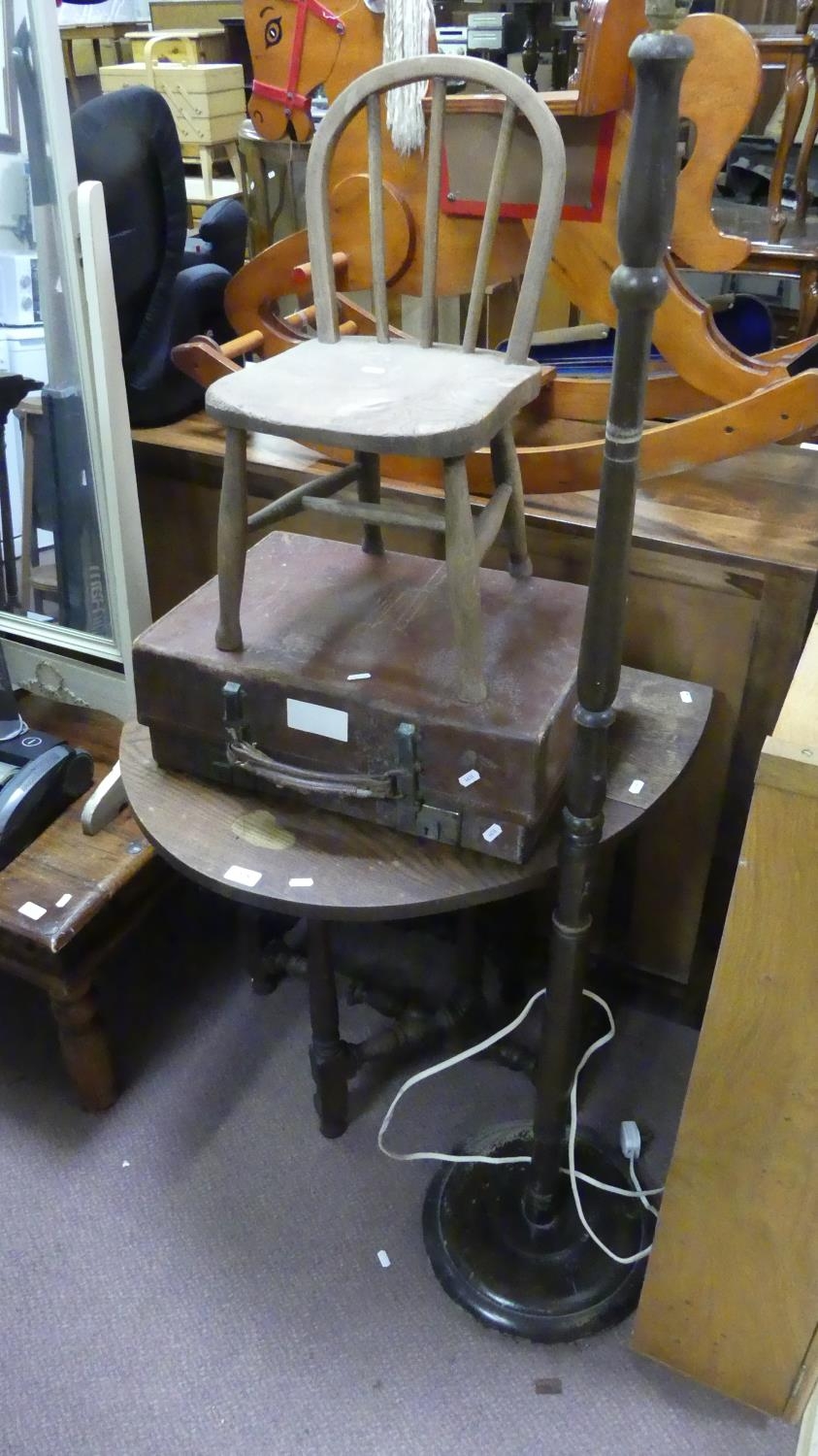 Leather Suitcase, Childs Chair, Gateleg Table & Lamp
