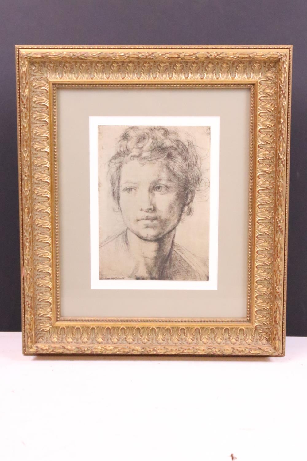 After Andrea Del Sarto, Head of Saint John the Baptist, print, 24 x 17cm, gilt framed