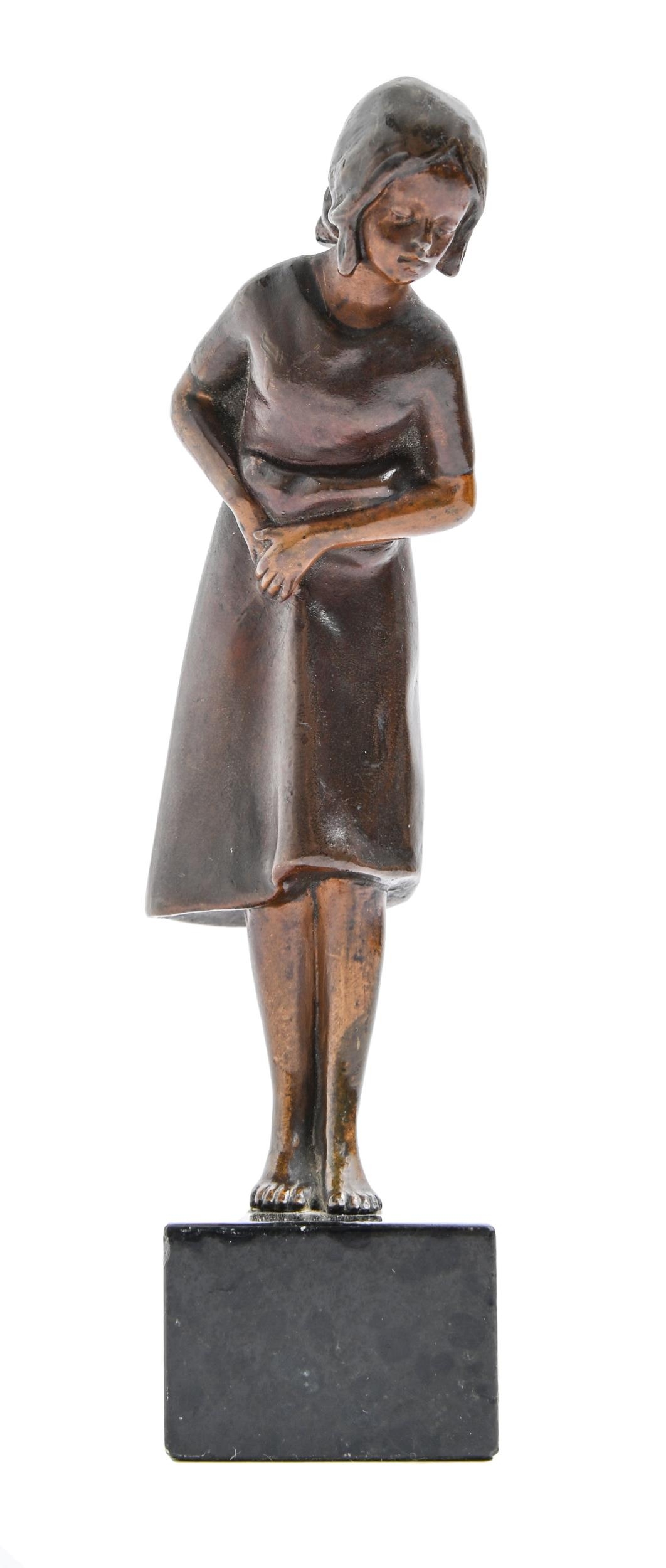 Kirchner. An Art Deco bronze statuette of a barefoot young woman, c1930, rich brown patina slightly rubbed, on serpentine base, 18cm h, stamped KIRCHNER and K