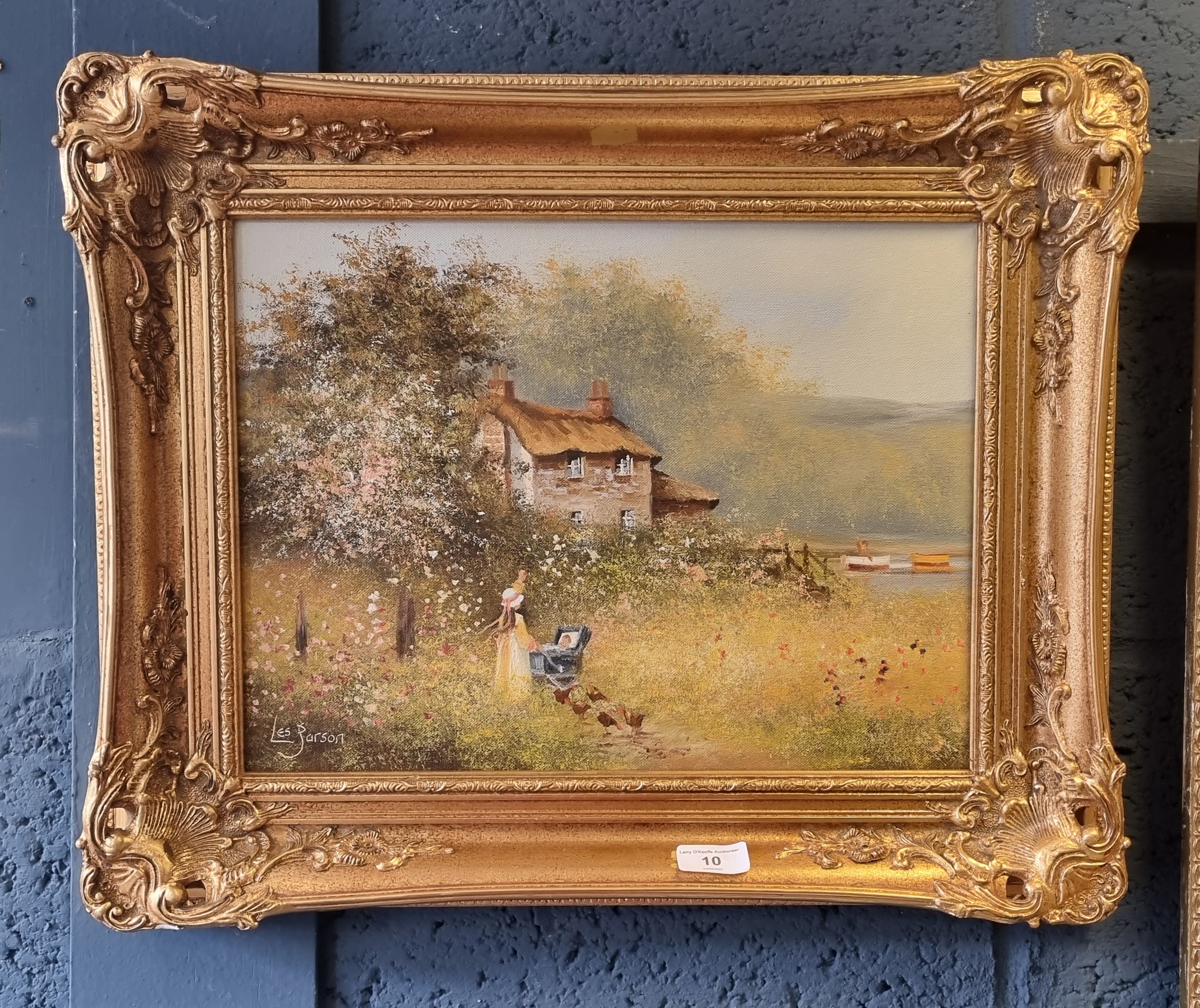 Heavy Gilt Framed Painting by Les Pearson, signed H:45 x W:55cm