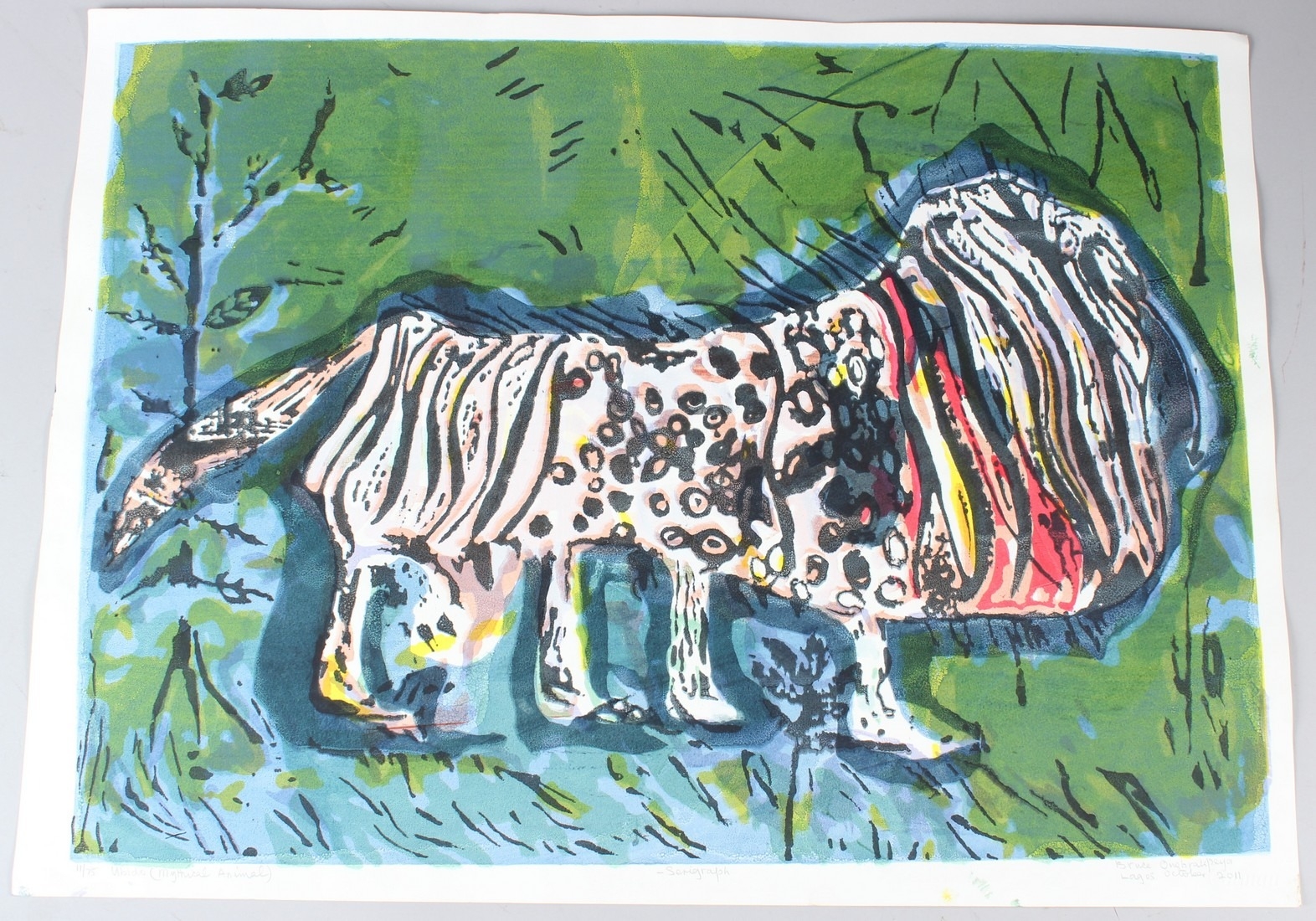BRUCE ONOBRAKPEYA (1932 NIGERIA) 'Ubido (Mythical Animal)' serigraph / screenprint 11/75 signed and inscribed dated Lagos October 2011 unframed 52 x 71cm image