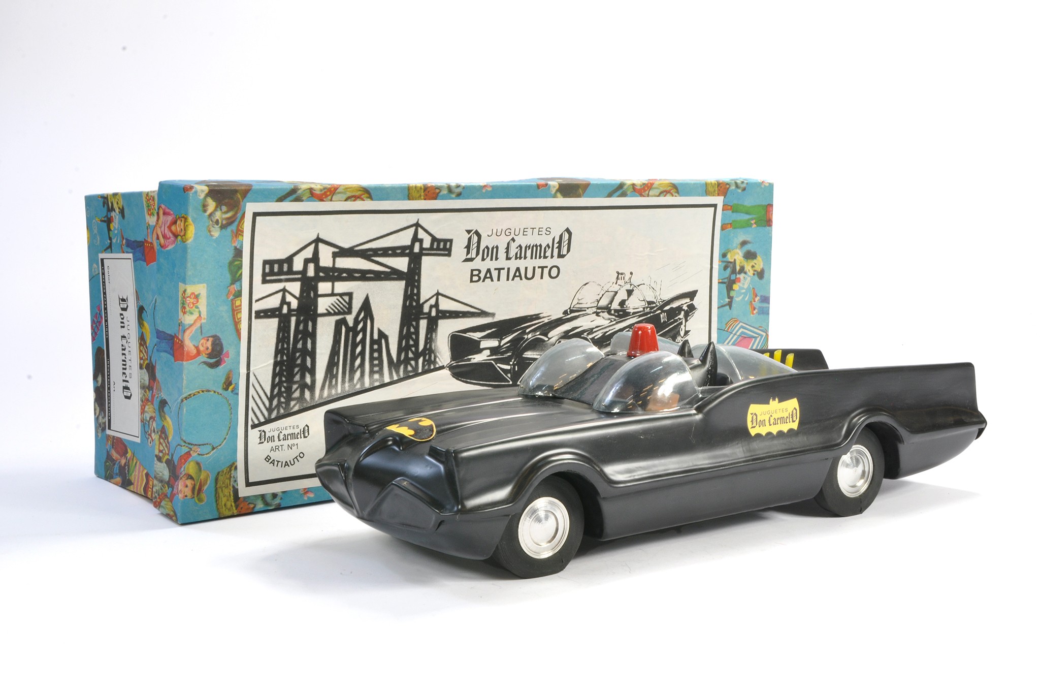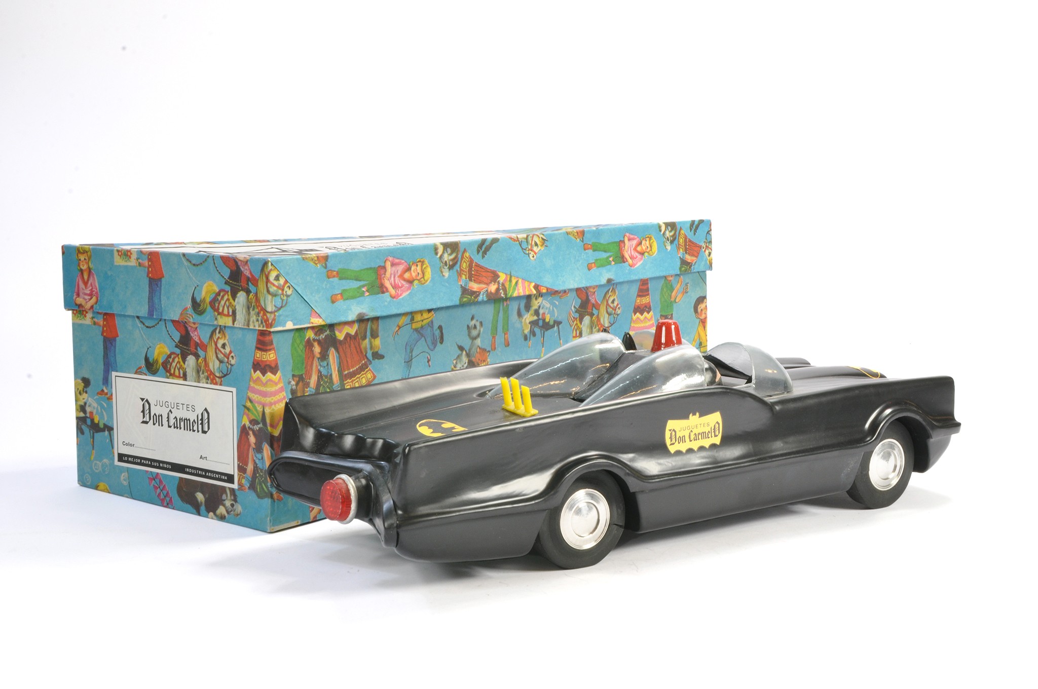 Don Carmelo (Argentina) 1970's very large! scale plastic (1/10 scale) issue of Batman's Batmobile. Toy is finished in black with figures. Looks to be generally excellent with little (if any) sign of playwear. Contained in excellent original box. Very Rare.