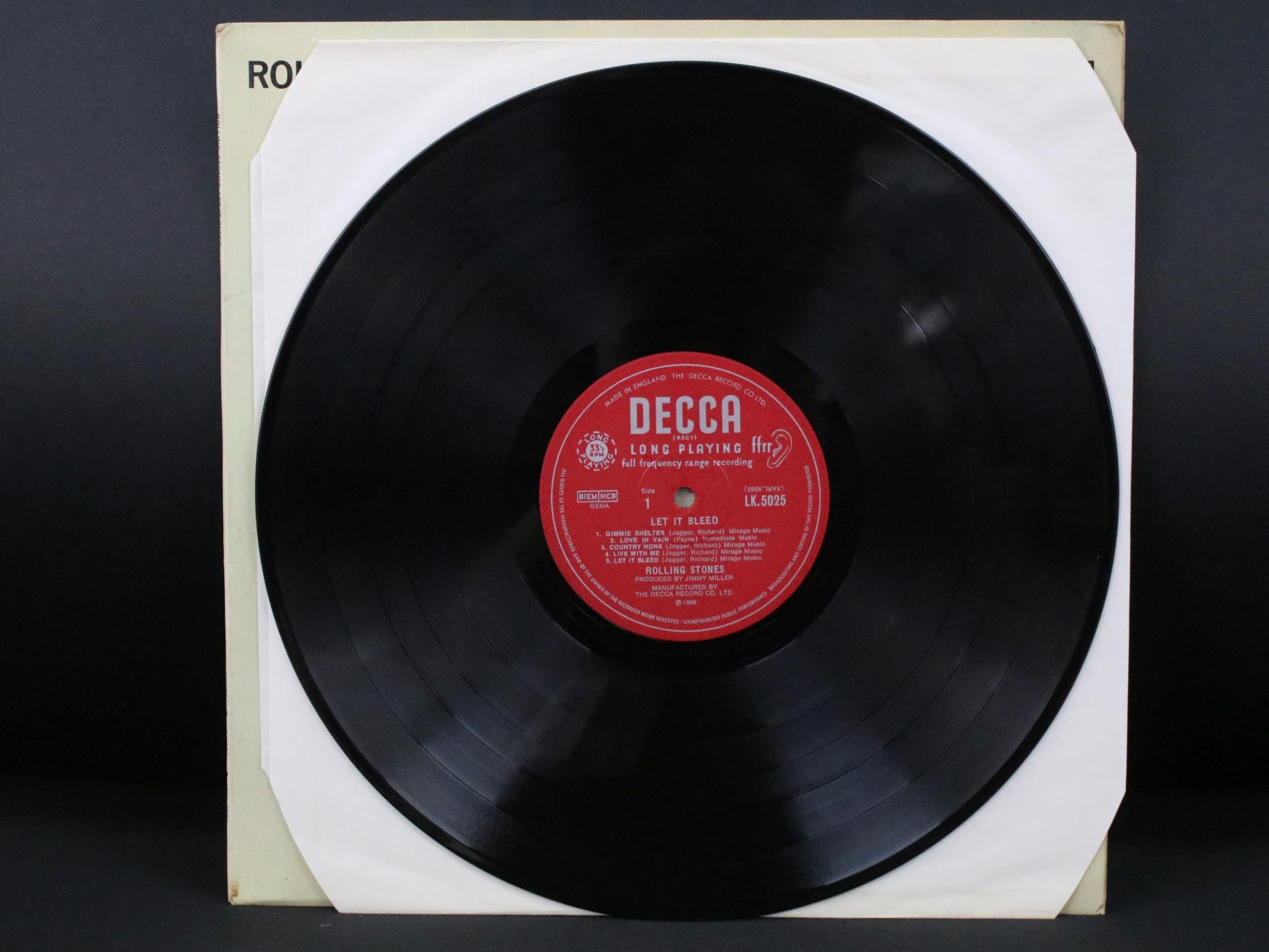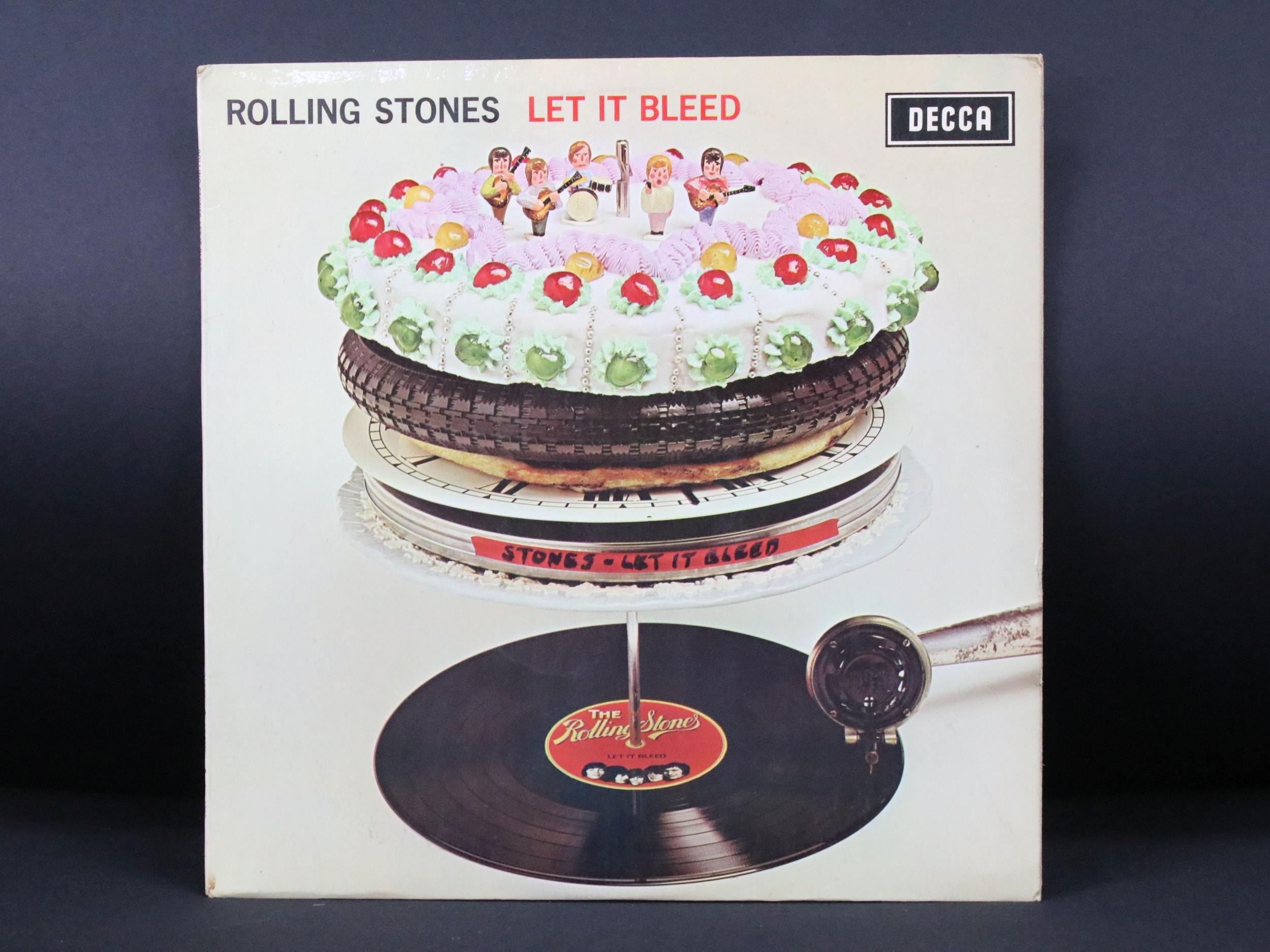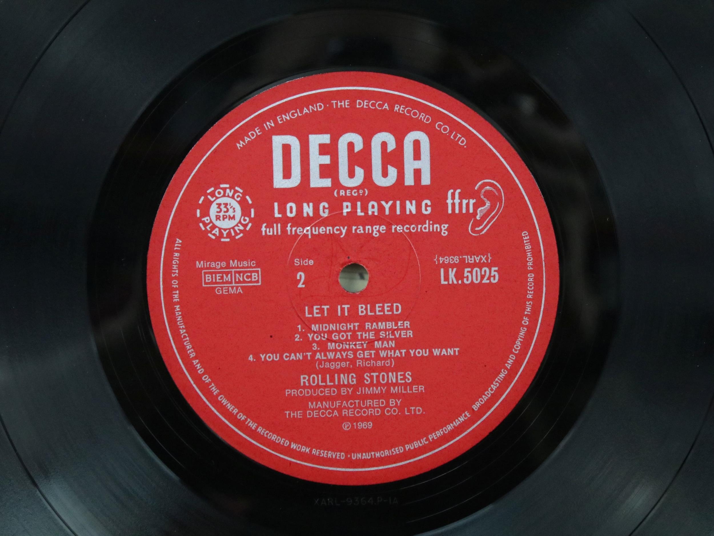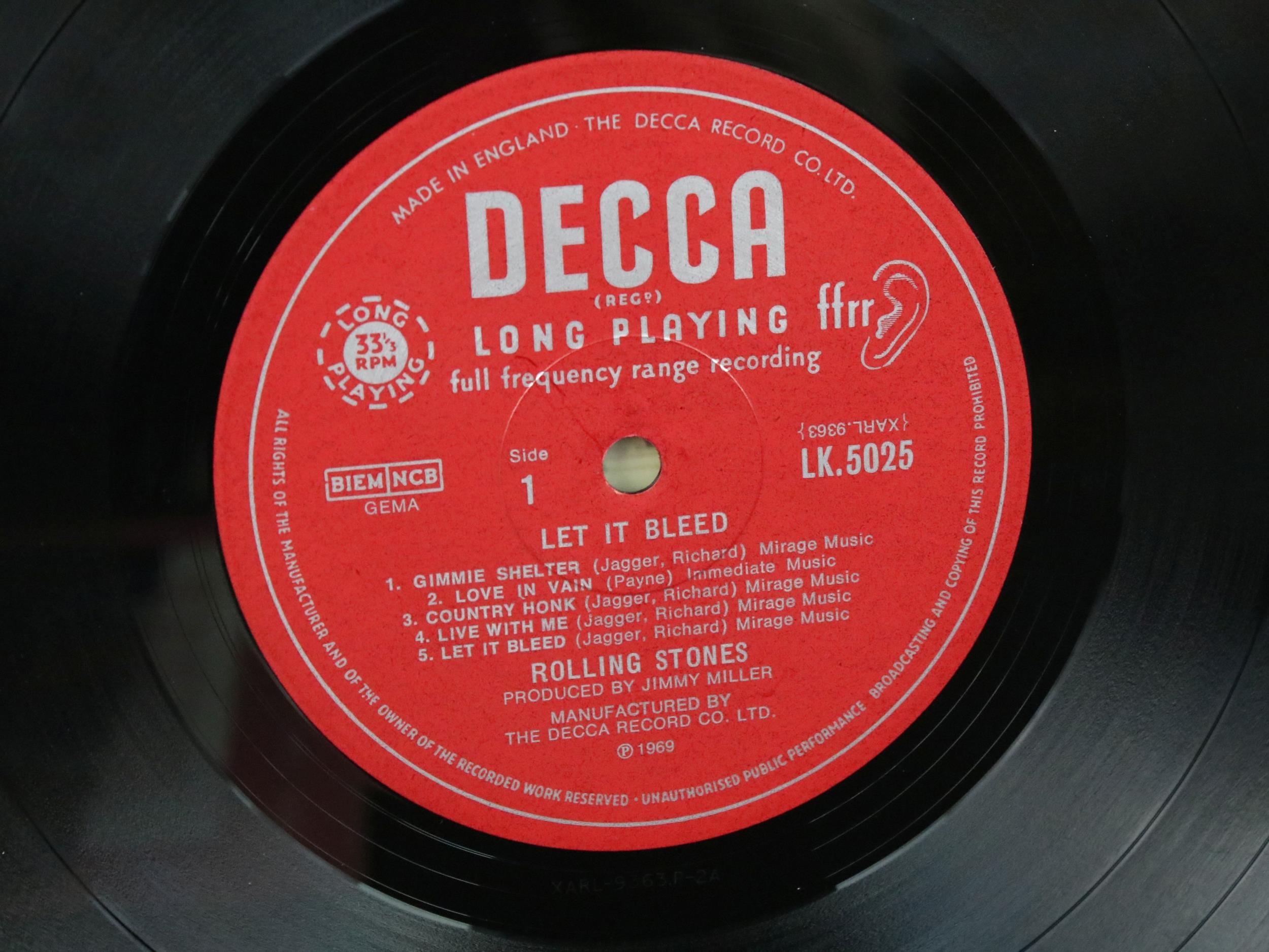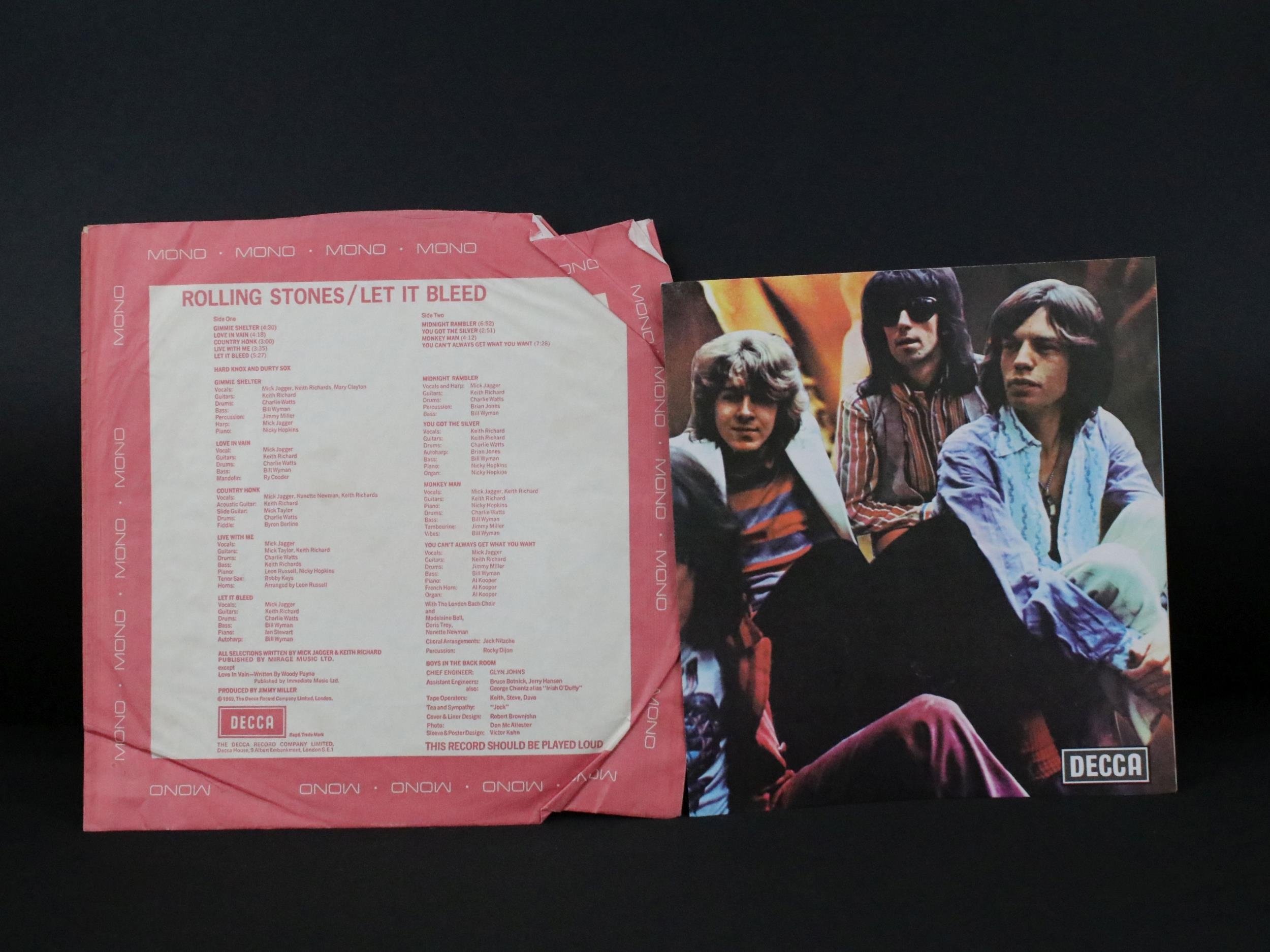 Vinyl - Rolling Stones - Let It Bleed. Original UK 1st mono pressing, unboxed Decca Logo, with original poster, red mono inner sleeve, Decca Records LK 5025. Sleeve & Vinyl Vg+, poster Ex