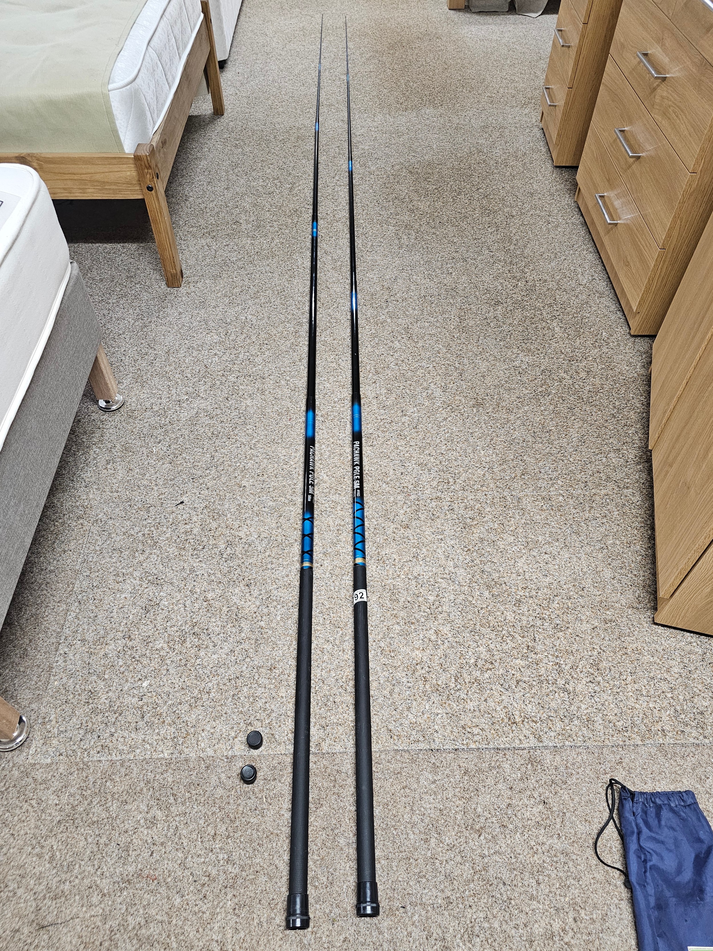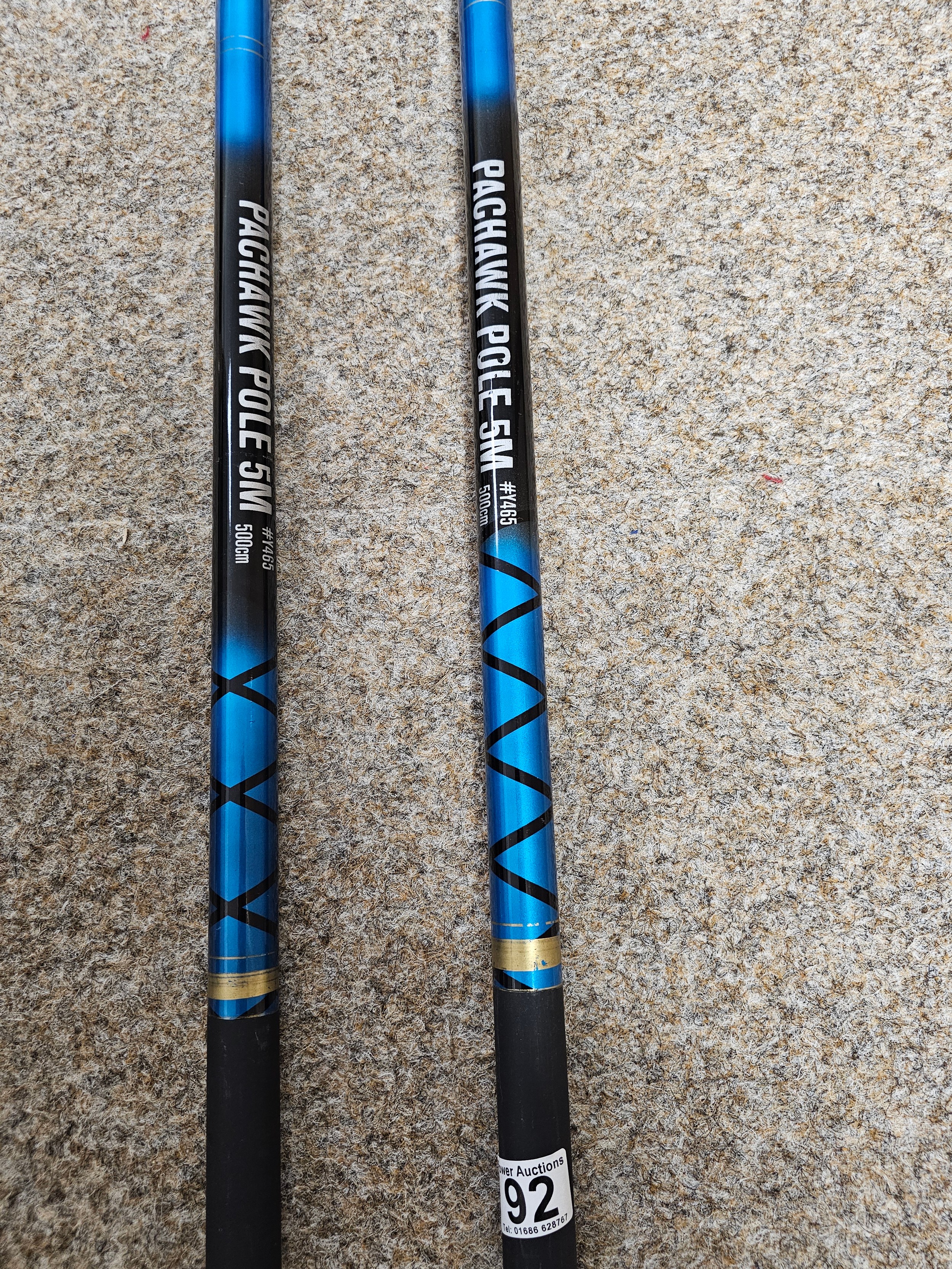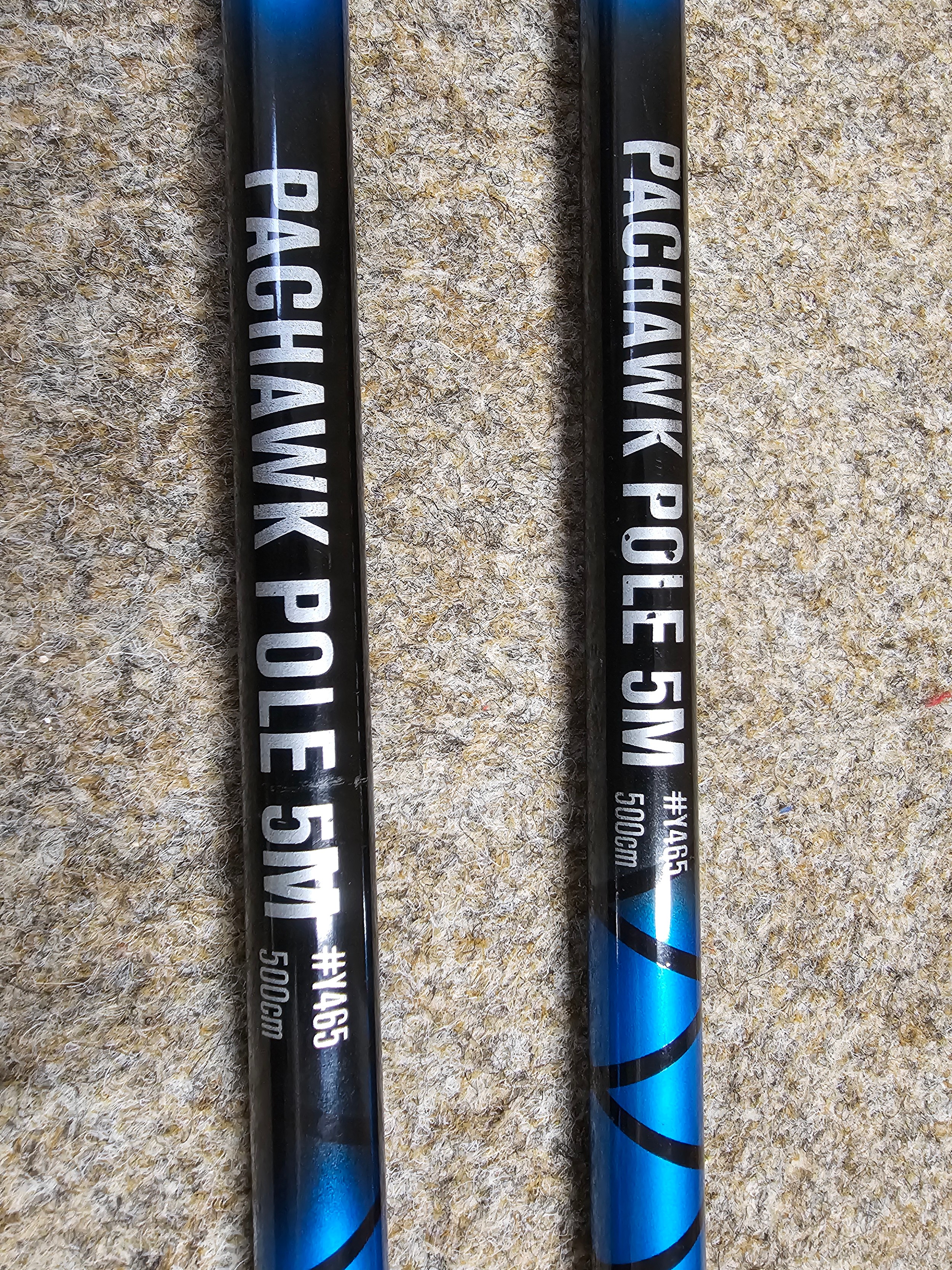 2x Pachawk poles 5 meters Y465 in original tubes with caps at both ends in used condition