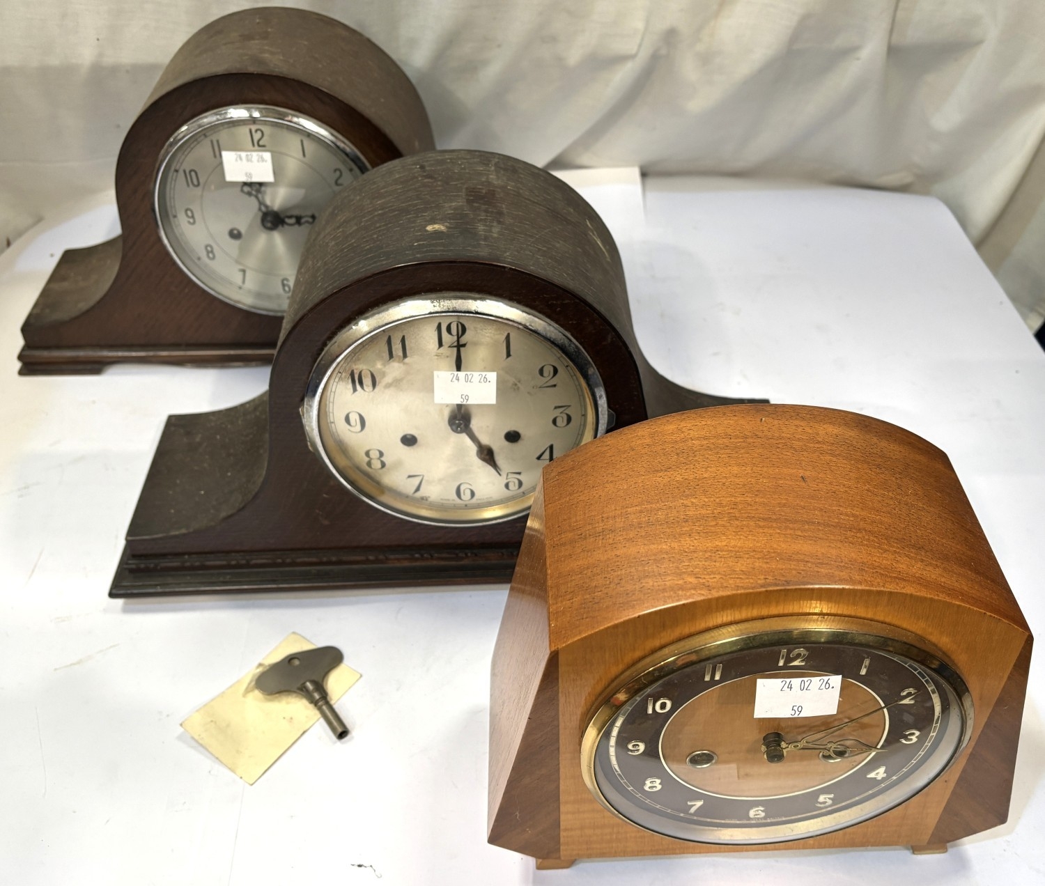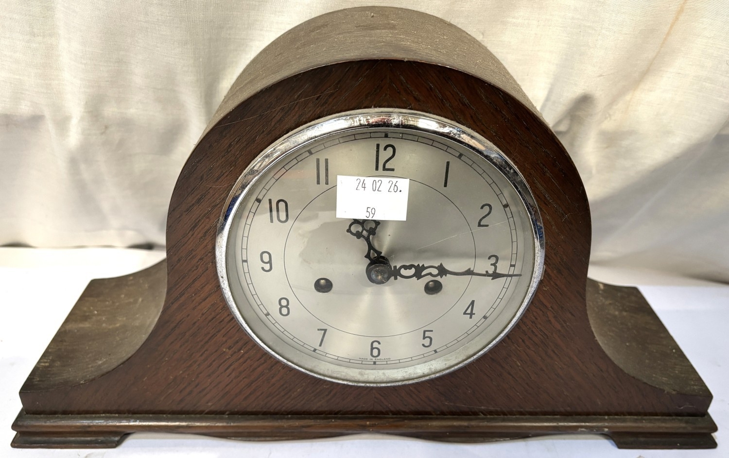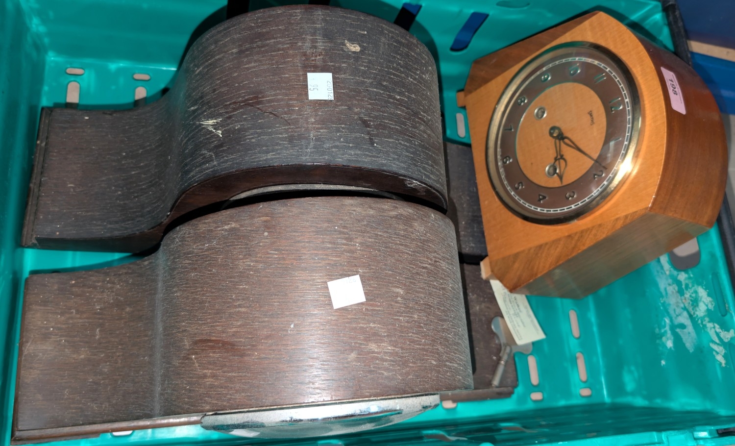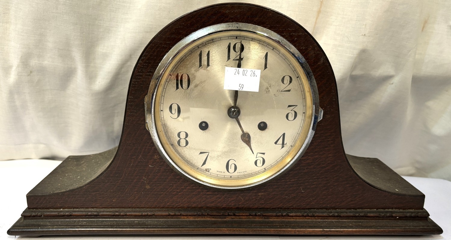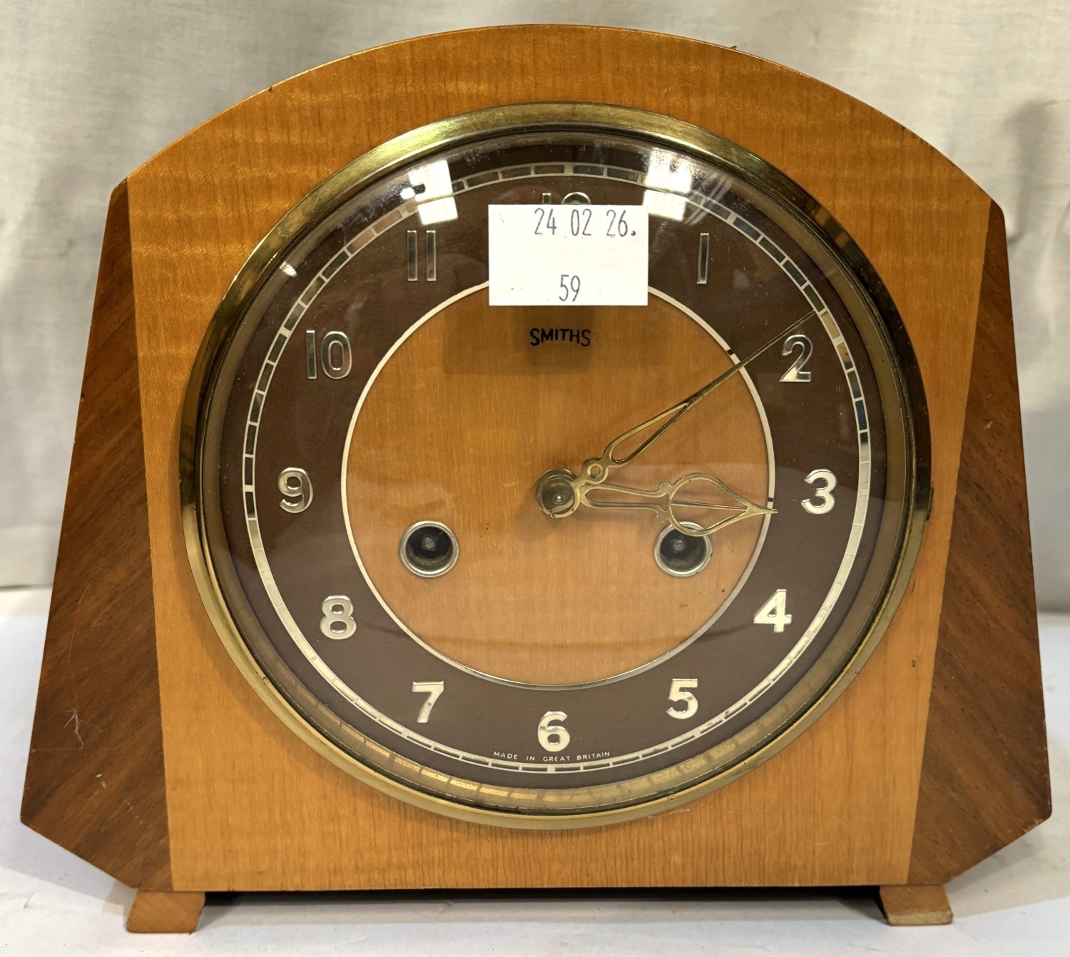 A Smiths, two tone, pale wood, Art Deco Mantel clock.