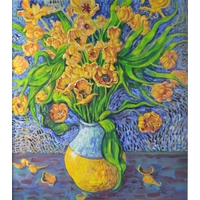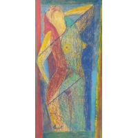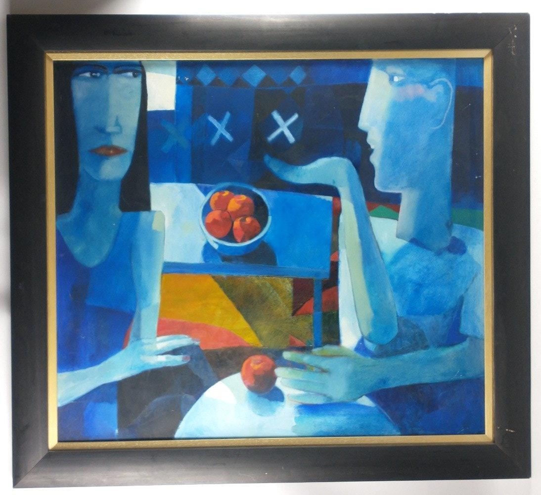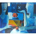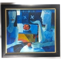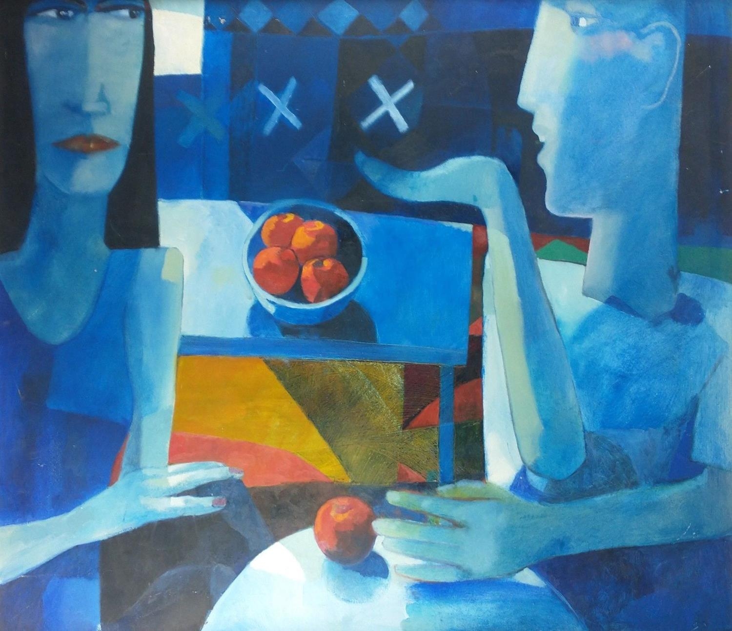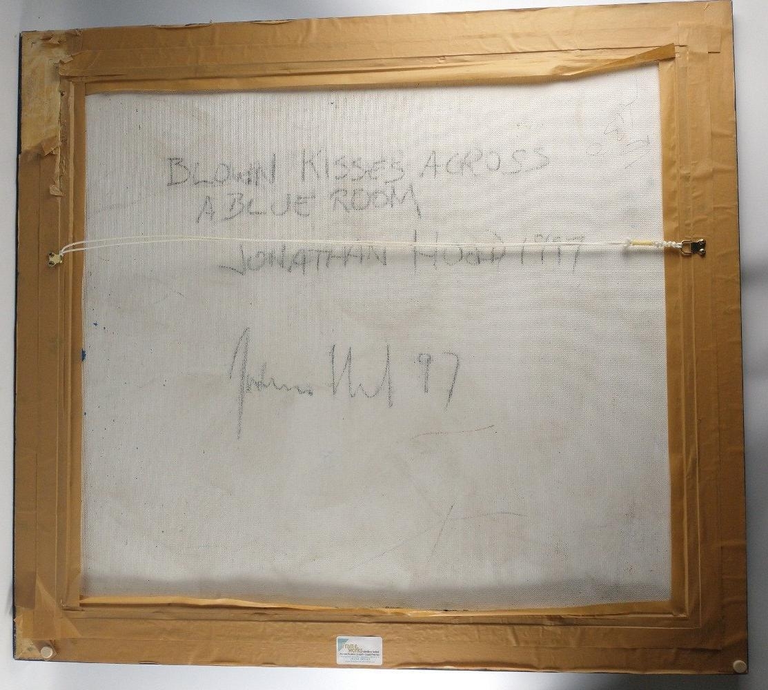 JONATHAN HOOD (Scottish Artist b1957-) 'Blown kisses Across a Blue Room' oil on board signed and dated 1997 verso, also painting signed by artist dimensions 86cm x 76cm