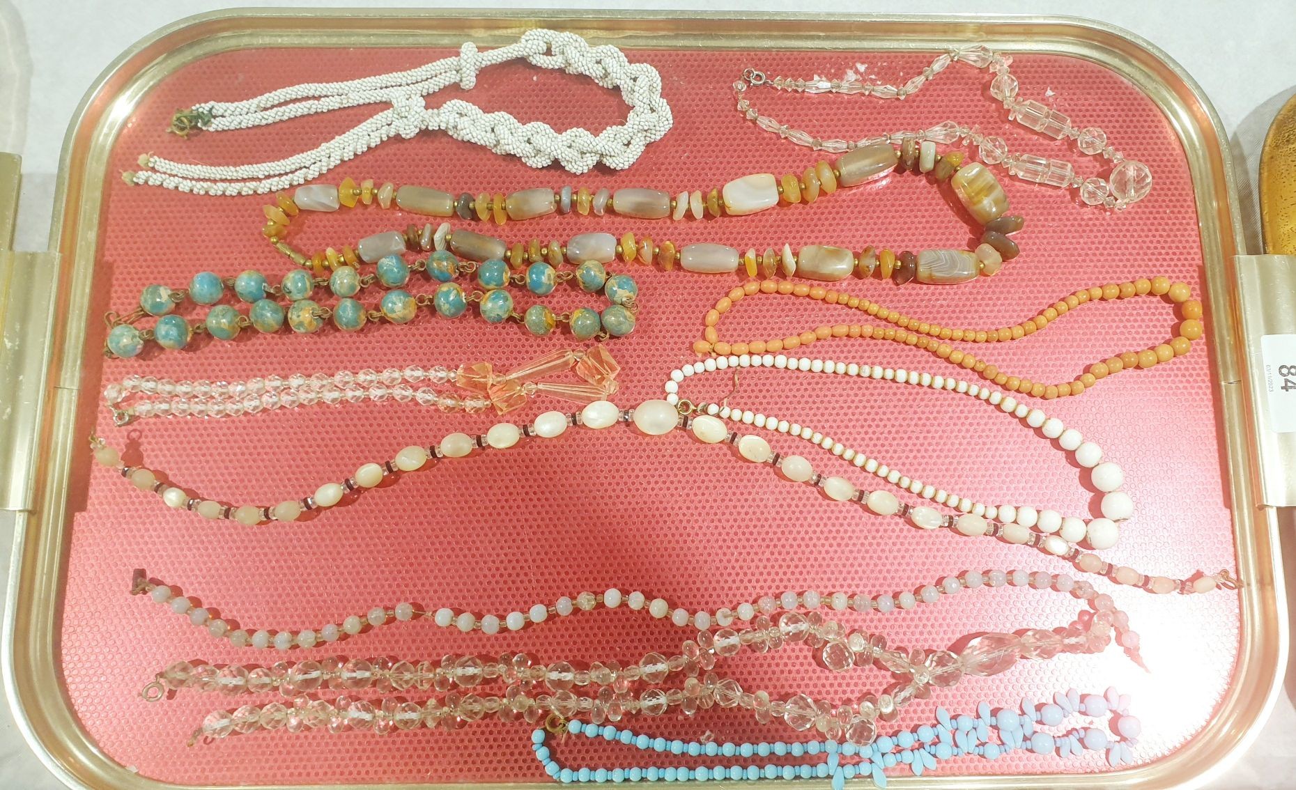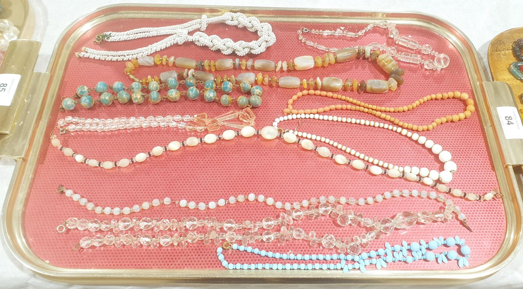 A selection of vintage necklaces including agate and glass. UK shipping £14.