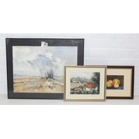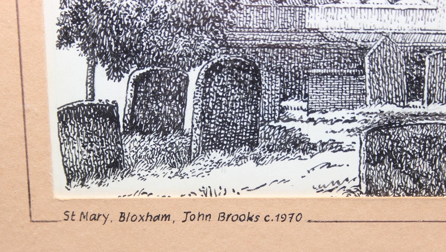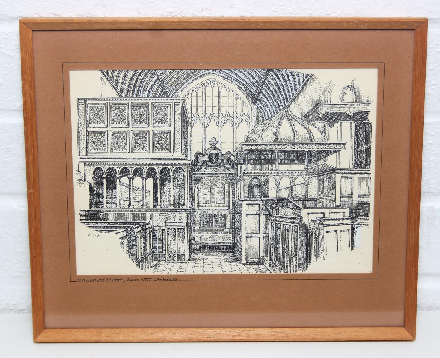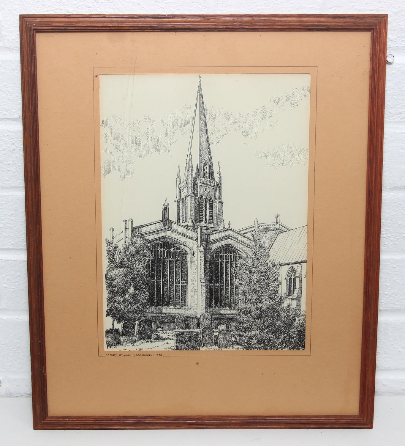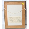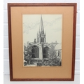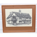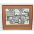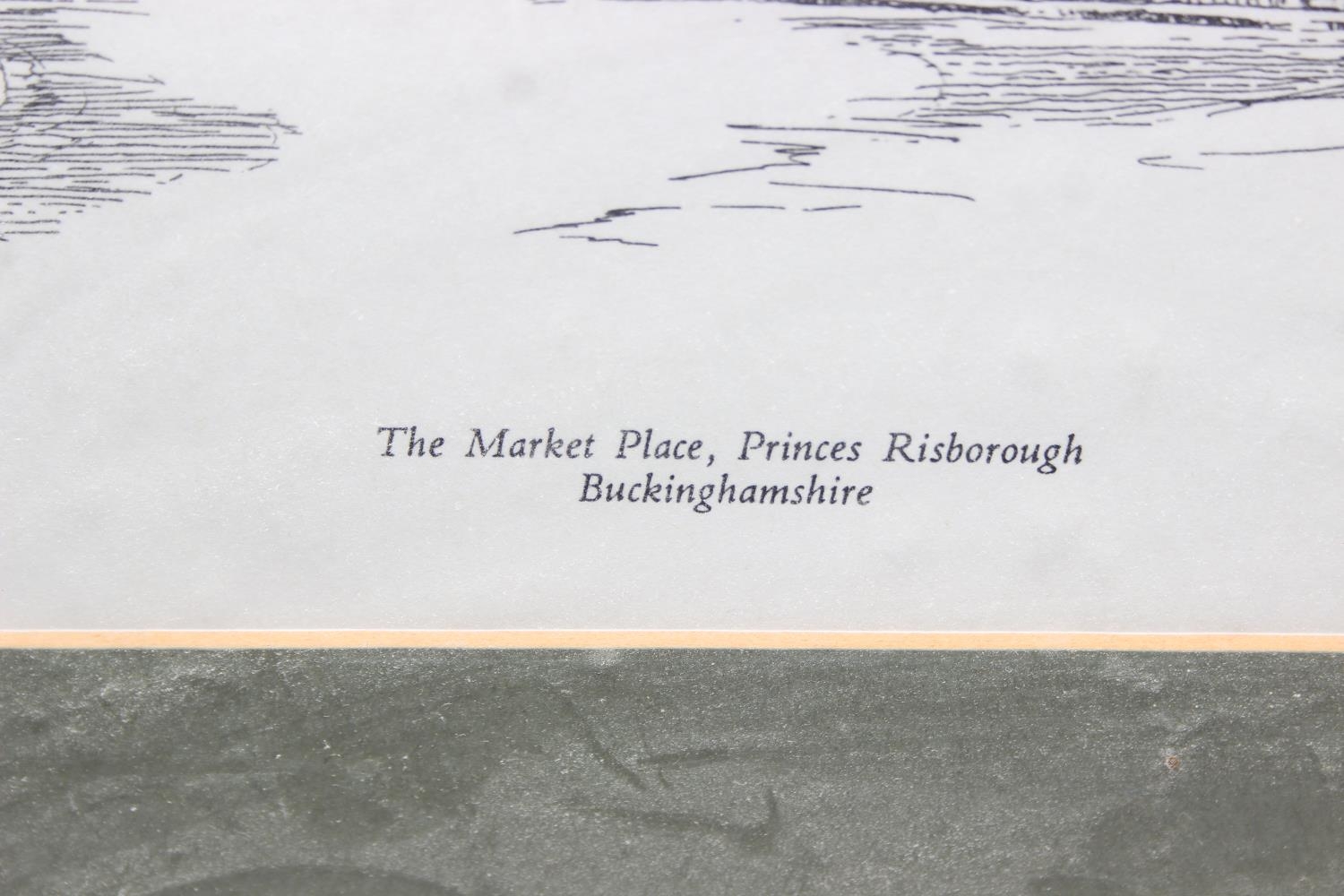 A 17th century strip map of the city of Oxford from Wiltshire by Emmanuel Bowen, and three assorted mid-century ink drawing of old buildings, some of Thame and other local areas, and a Princes Risborough print, the largest 46cm x 38cm [5]