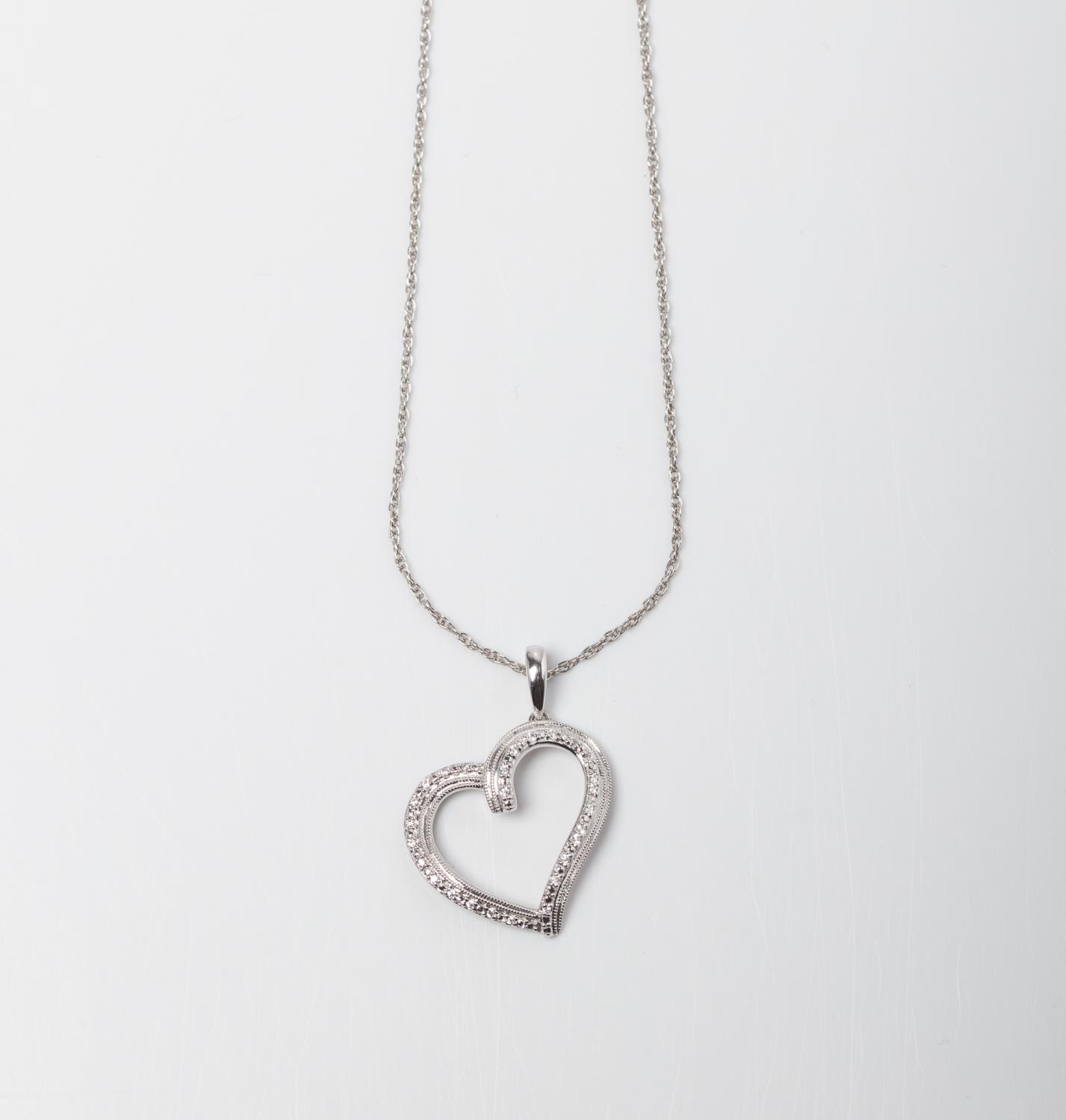 A SILVER DIAMOND SET HEART PENDANT ON 45CM CHAIN Crafted in Sterling Silver pave set with 27 Round Diamonds weighing 0.069ct