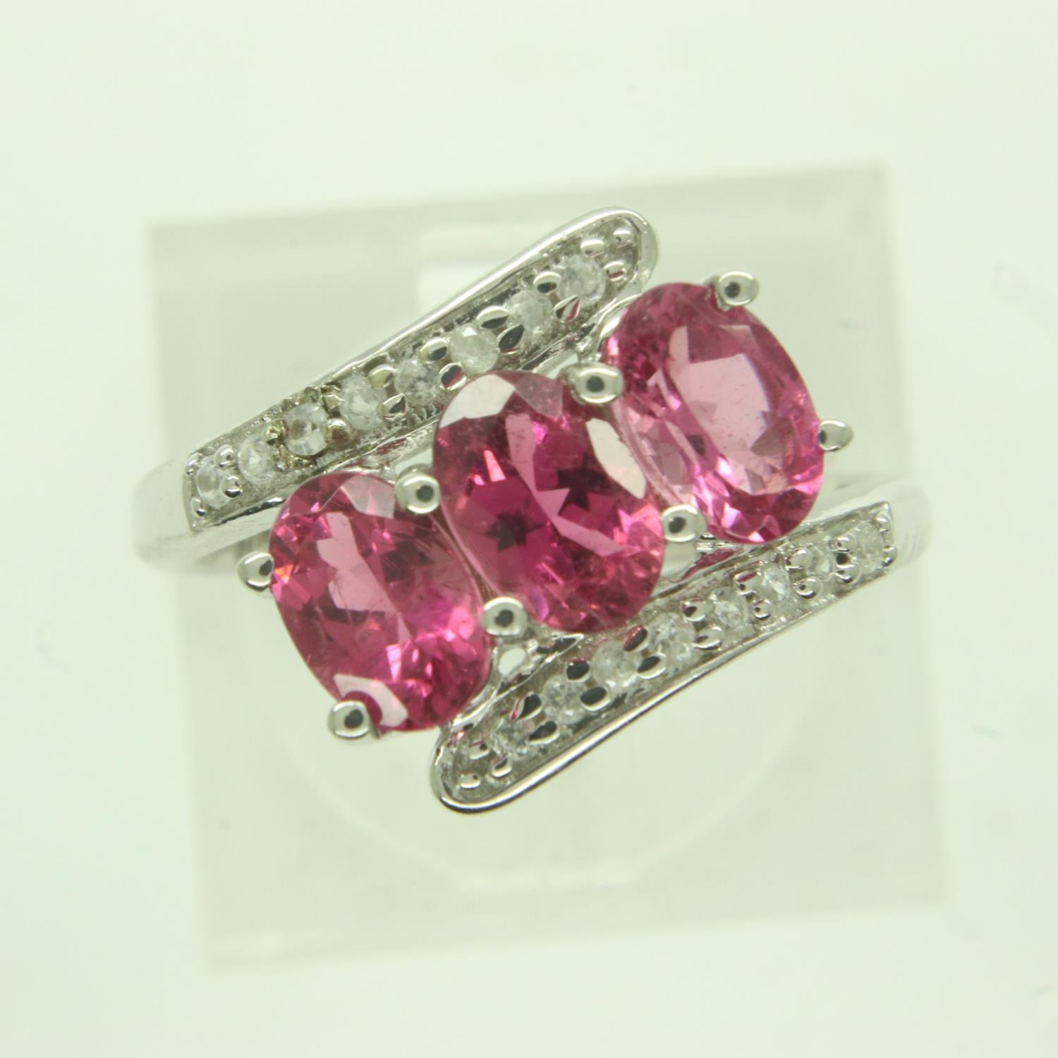 9ct white gold, tourmaline and diamond ring, size J, 2.7g. UK P&P Group 0 (£6+VAT for the first lot and £1+VAT for subsequent lots)