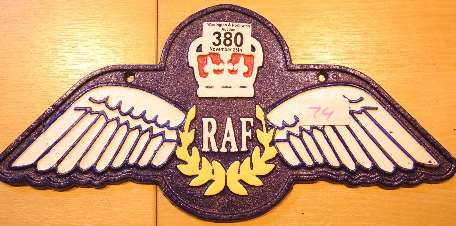 Cast iron RAF wings sign, 35 x 17 cm. P&P Group 1 (£14+VAT for the first lot and £1+VAT for subsequent lots)